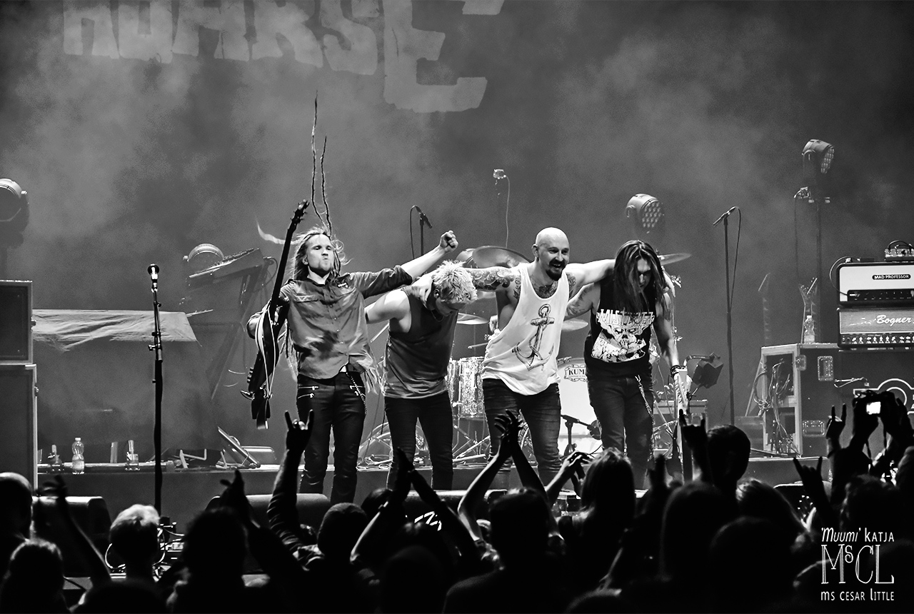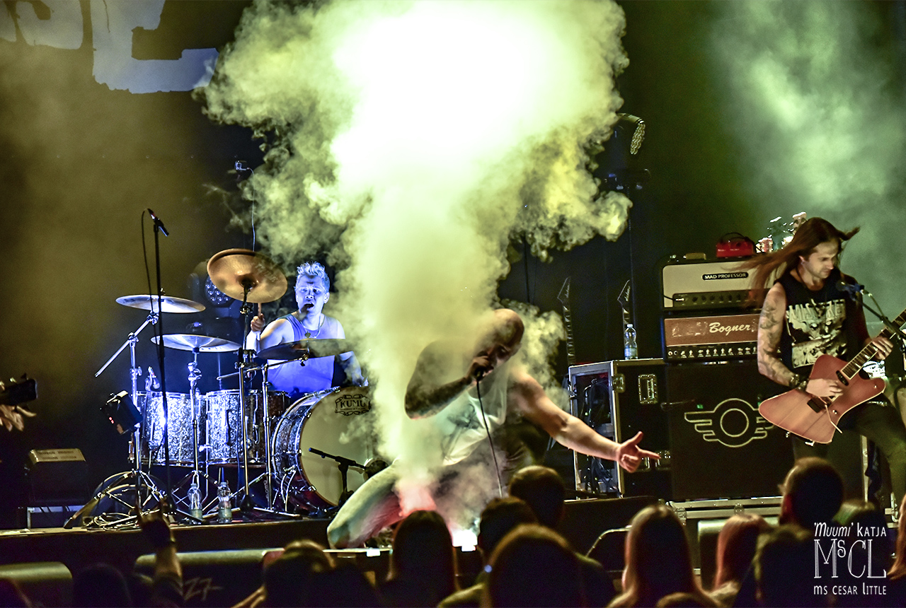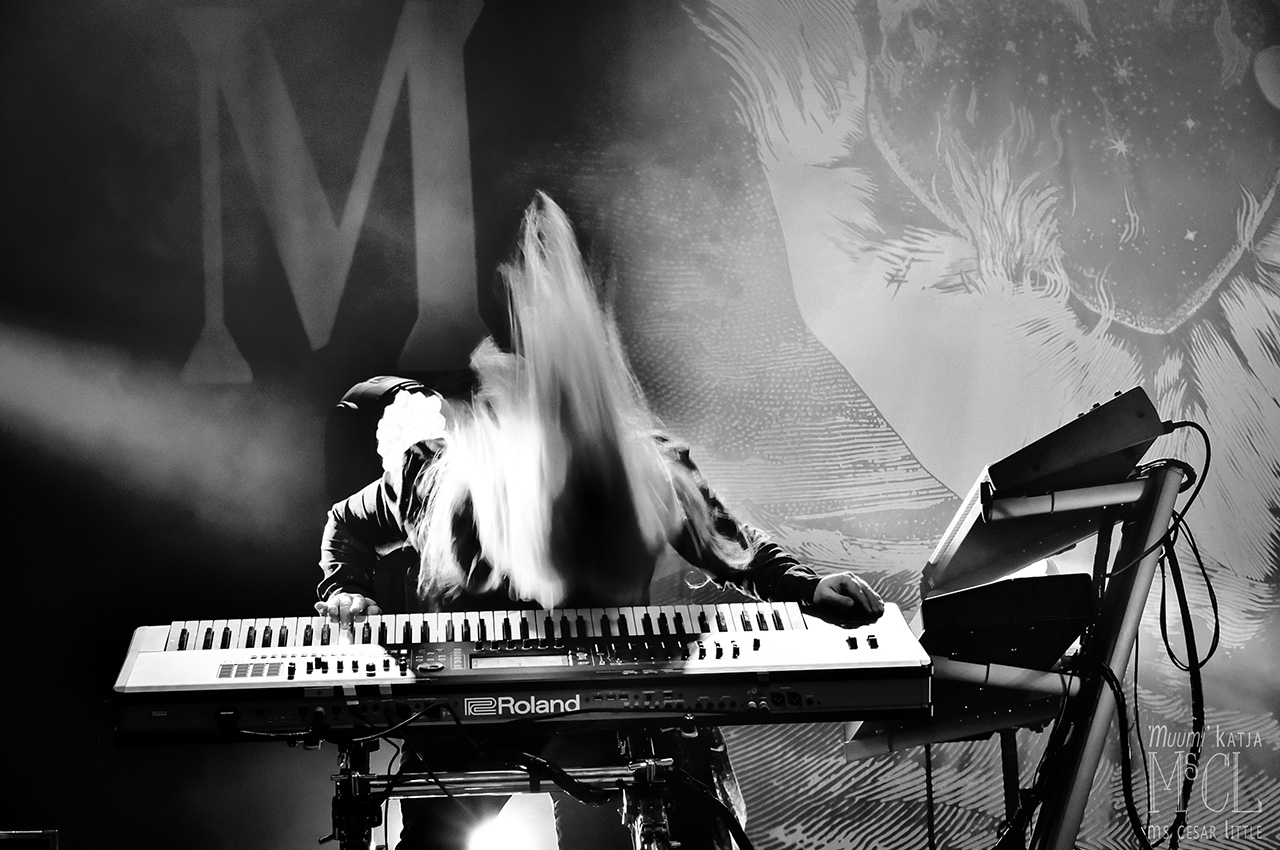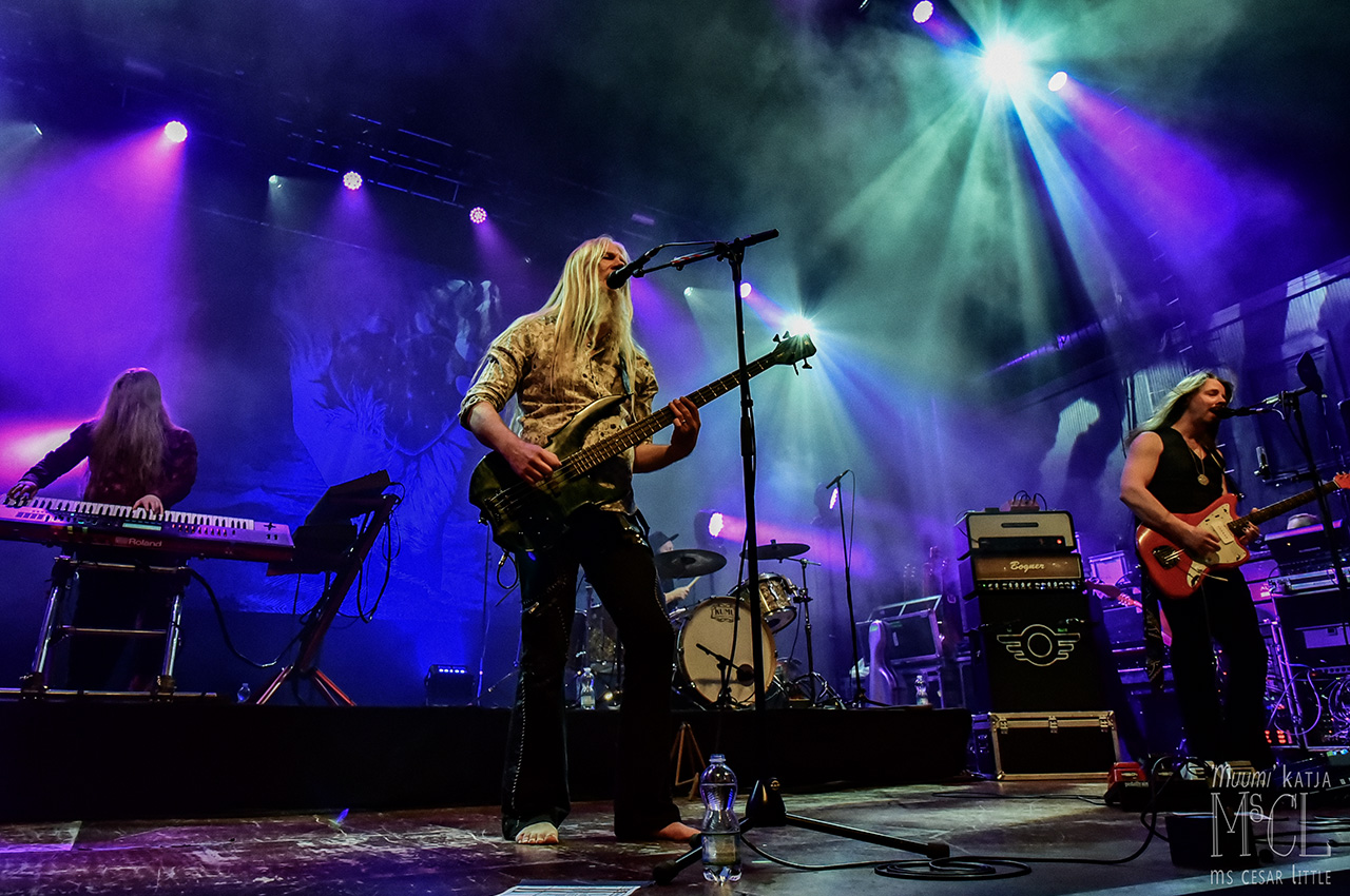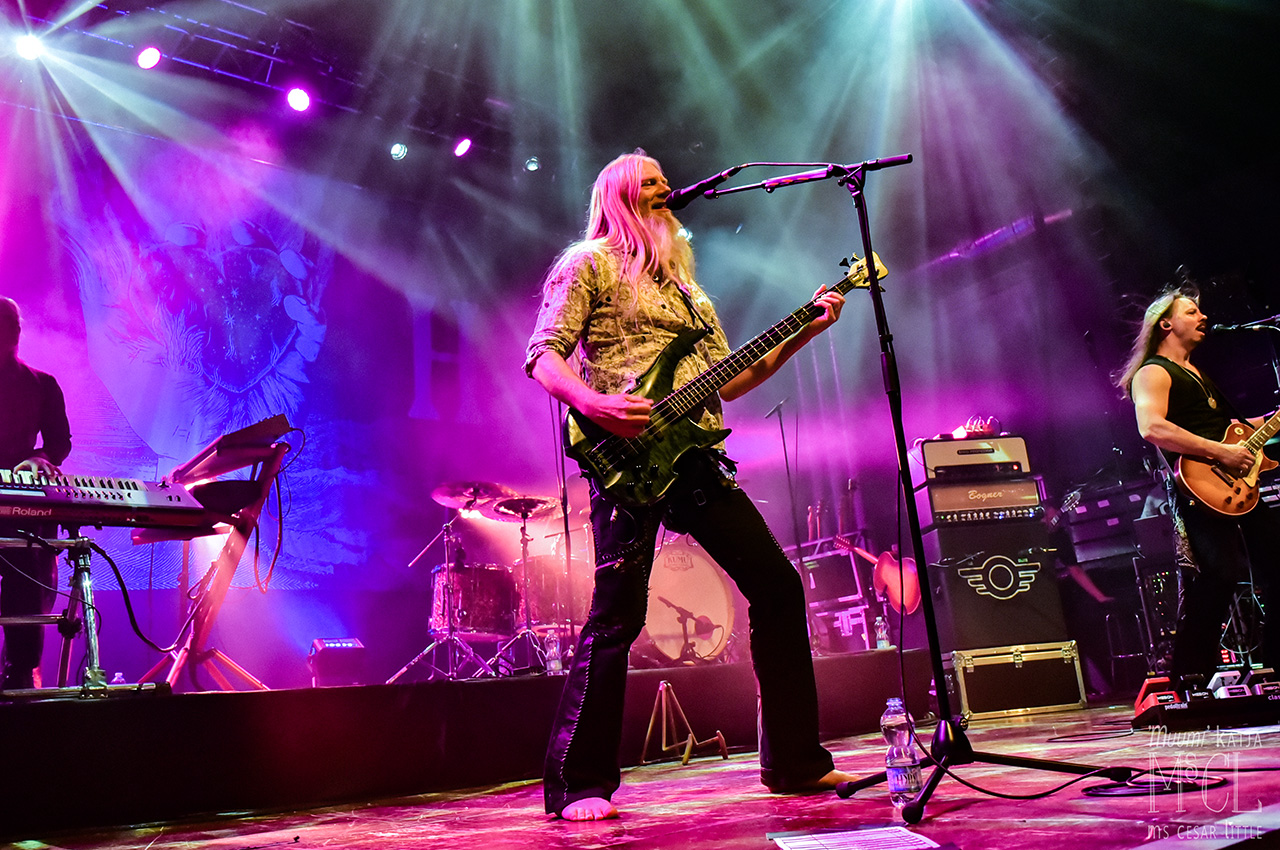 Marko Hietala’s history with Anssi Nykänen, Tuomas Wäinölä and Vili Robert Ollila goes many years back. Tuomas and Vili have been with him in Raskasta Joulua for well over one decade and played some of the few Northern Kings’ gigs, too – unforgettable show acts, both! Tuomas is a one of these string wizards who simply ignores the term “genre” although he might have a focus on metal, rock and jazz. He also sings, such as when touring with his former band mate Timo Kotipelto (Stratovarius) as acoustic duo – simply breath-taking, by the way. Vili is no less of a witchmaster at the keys (although more active behind the curtain) or as Marko put it that night: captain of the Enterprise, the keyboards being his command station. I have always wondered how he can play with his massive hair flying all over and then – this without hitting his forehead on his instruments! His dedication is overwhelming and compared to him, Marko and even Anssi, the drummer, appear sort of static on stage. Anssi Nykänen (formerly also playing with Raskasta Joulua and Timo Kotipelto) makes the beating heart of the show. In a most impressive solo, he finds the space to prove himself and to receive the crowd’s thundering enthusiasm as he deserves!
