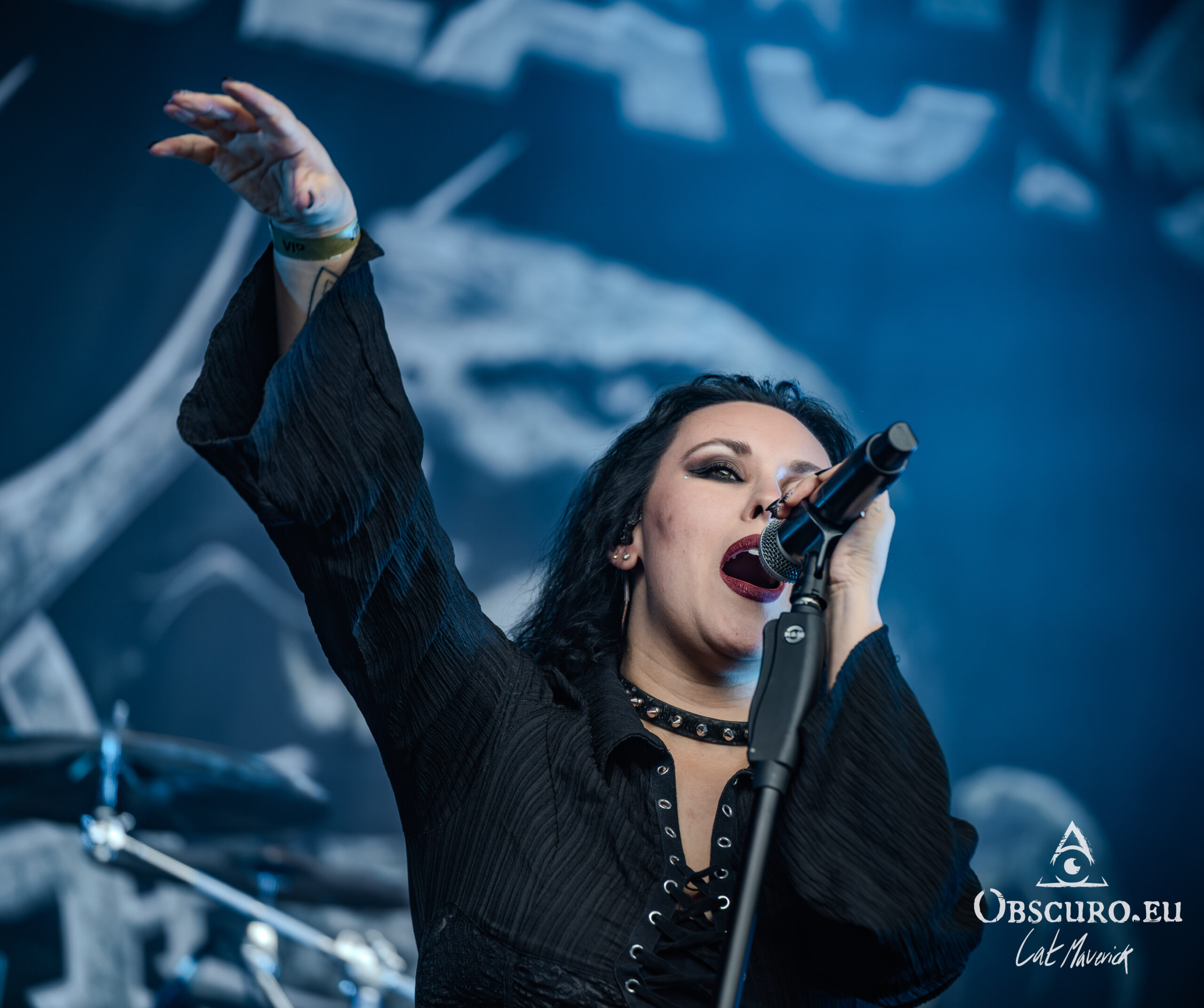Despite the rainy weather again, the German melodic death metal band Mission in Black gives a fantastic performance. The Metalacker is very open towards families and people who live in the area, and some are not as familiar with harsh vocals. Conversely, one festival-goer is visibly shocked upon realizing that the frontwoman, Steffi Stuber, is singing both clean and harsh vocals with a powerful and versatile voice.