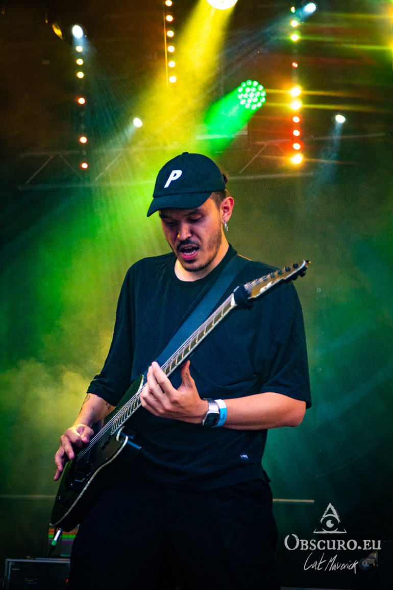 In the fashion of a local event, opening act this year is local Metalcore band BLVCKWOOD. Being the first band of the day, they have the opportunity for an extensive soundcheck and use it to amp themselves up as well as the slowly gathering crowd. Despite the rainy weather, there is already excitement in the air. The moment the first song hits the audience, they basically blow away all clouds and send a first wave of electric charge over the fields. Not only having the opportunity to be the opening act (once again after their concert in 2019) in front of a considerably large crowd, but also playing in front of their very friends and family, renders the young bands vocalist extremely humble and grateful. Hearing his words of excitement and gratitude is the sweet cherry on top of a fantastic sundae of a metal show.