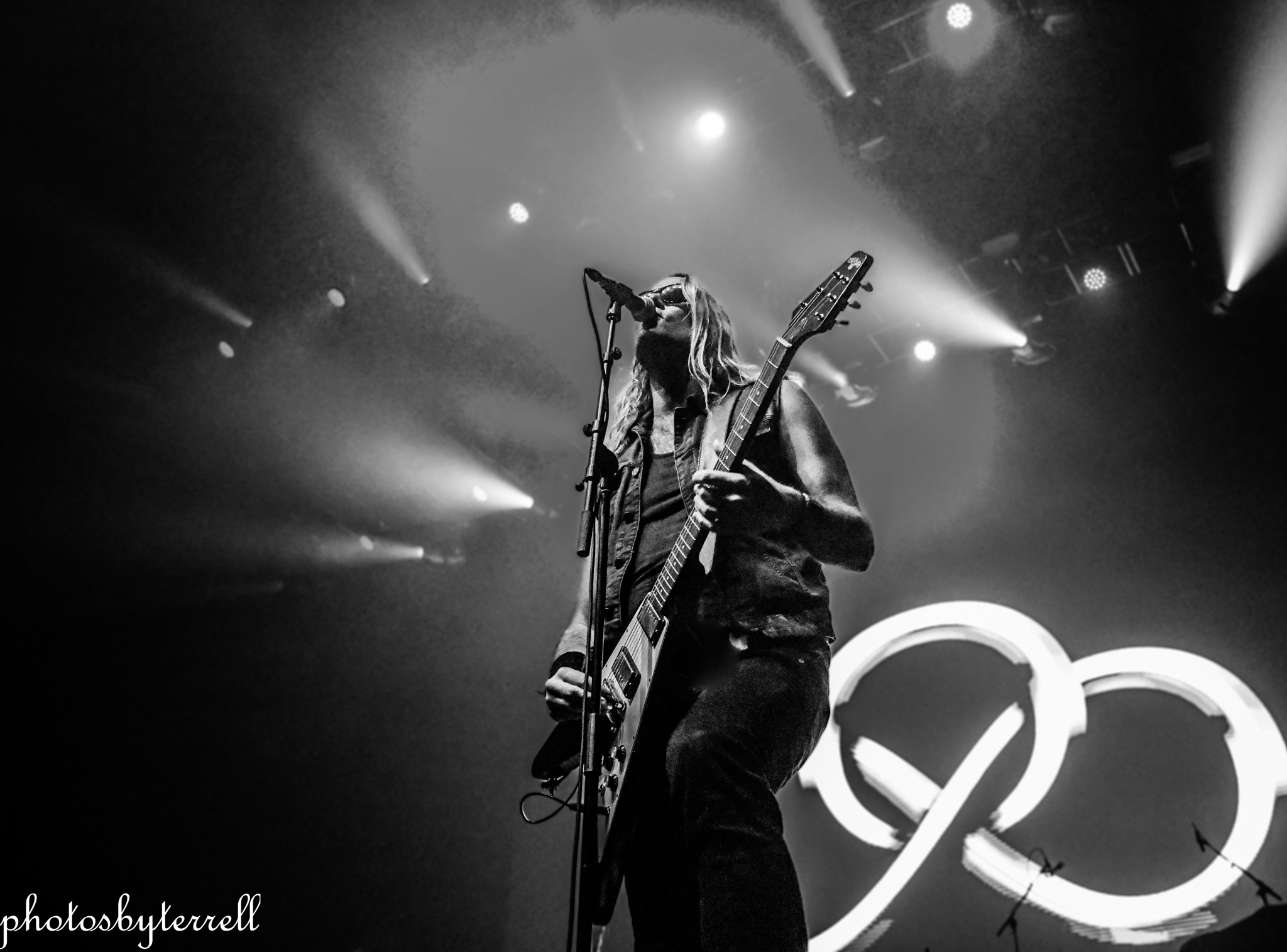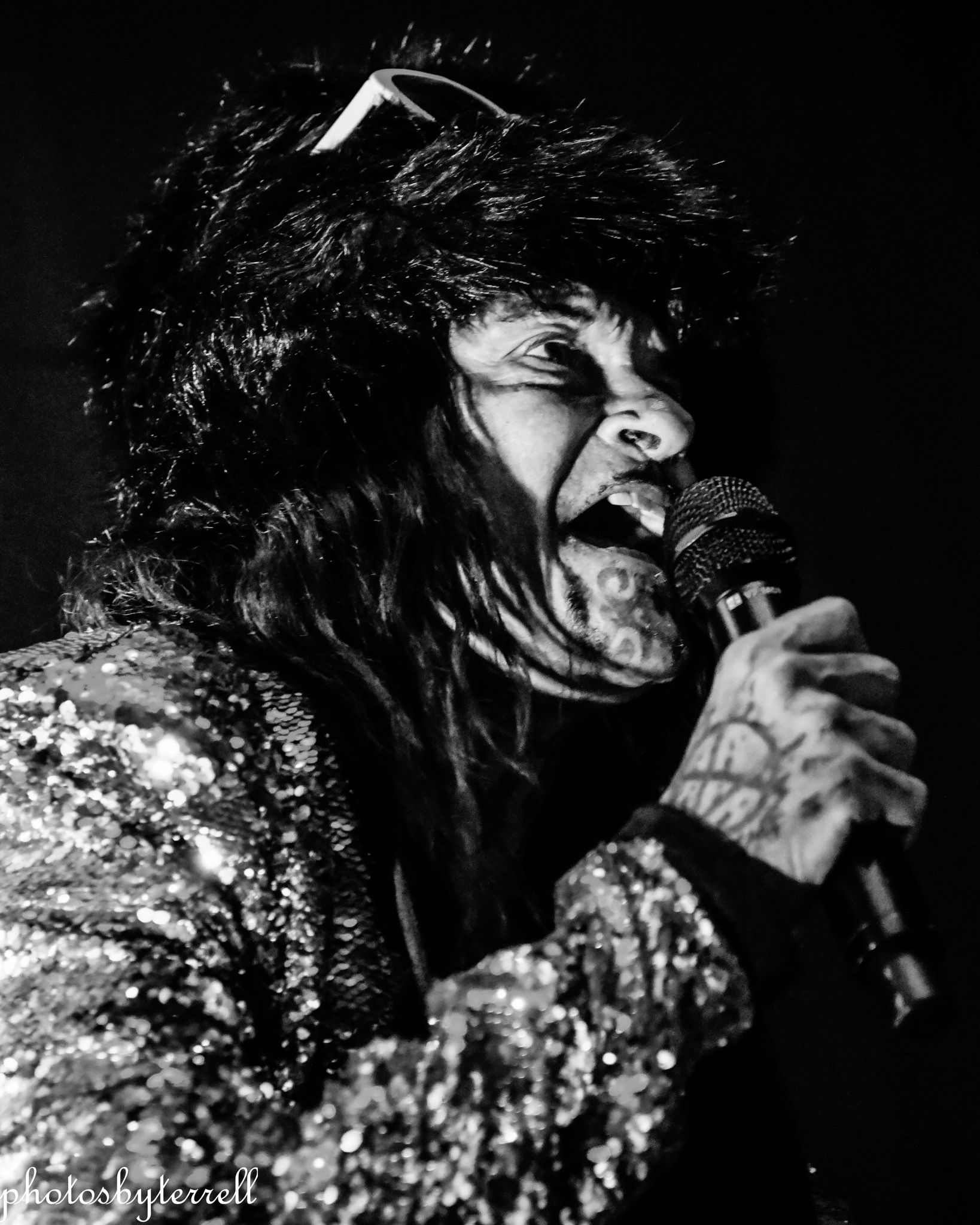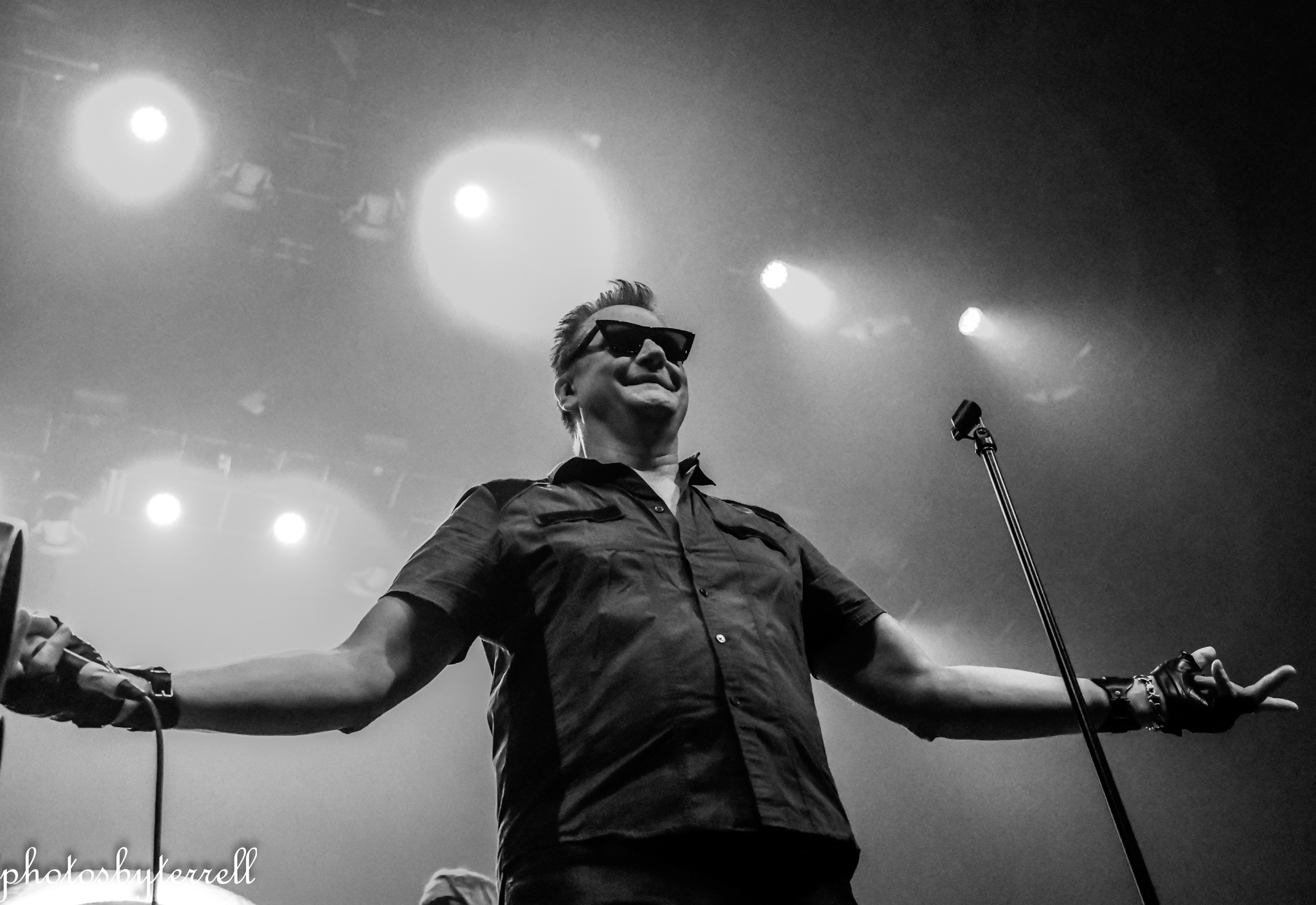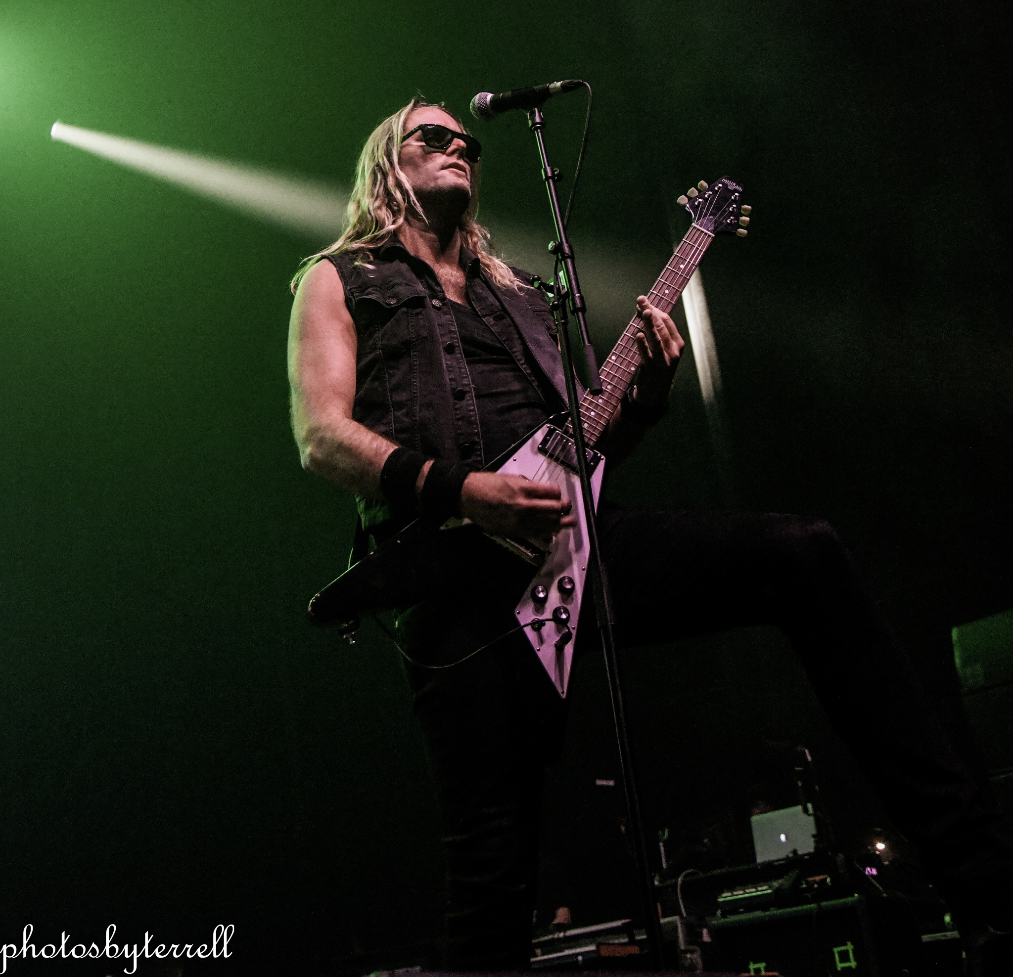 The first song set the tone for their night and the energy level in the venue was on the rise as Al moved about the stage. The music was mostly from Ministry’s early days with albums, With Sympathy from 1983 and Twitch from 1986, and their fans loved every song. As a photographer Ministry is always a fun band to photograph. Their stage presence is second to none and keeping an eye on Al and his facial expressions and those moments when he stops and poses are priceless. (see photo gallery) The stage at the Mission Ballroom is very roomy for band members to move about and with the lights dancing everywhere and the large video screen in back of the stage constantly changing colorful designs, makes for some interesting photographs.