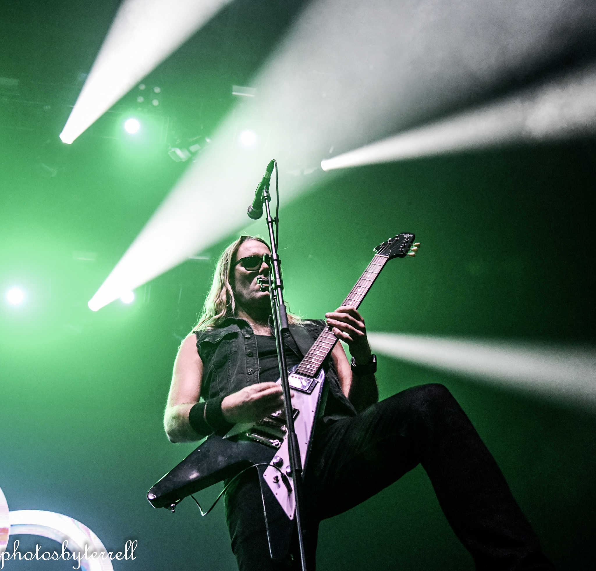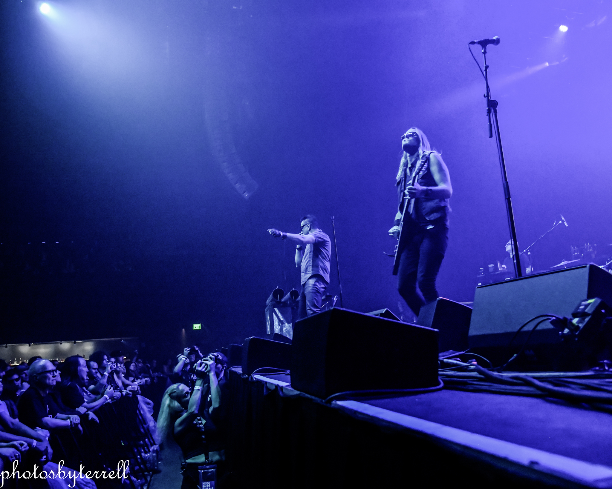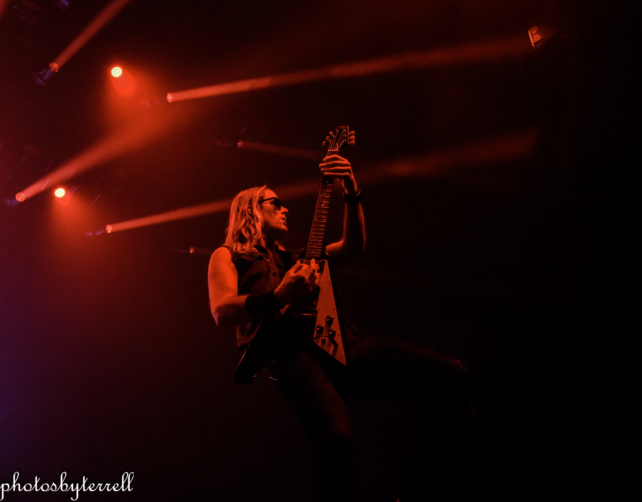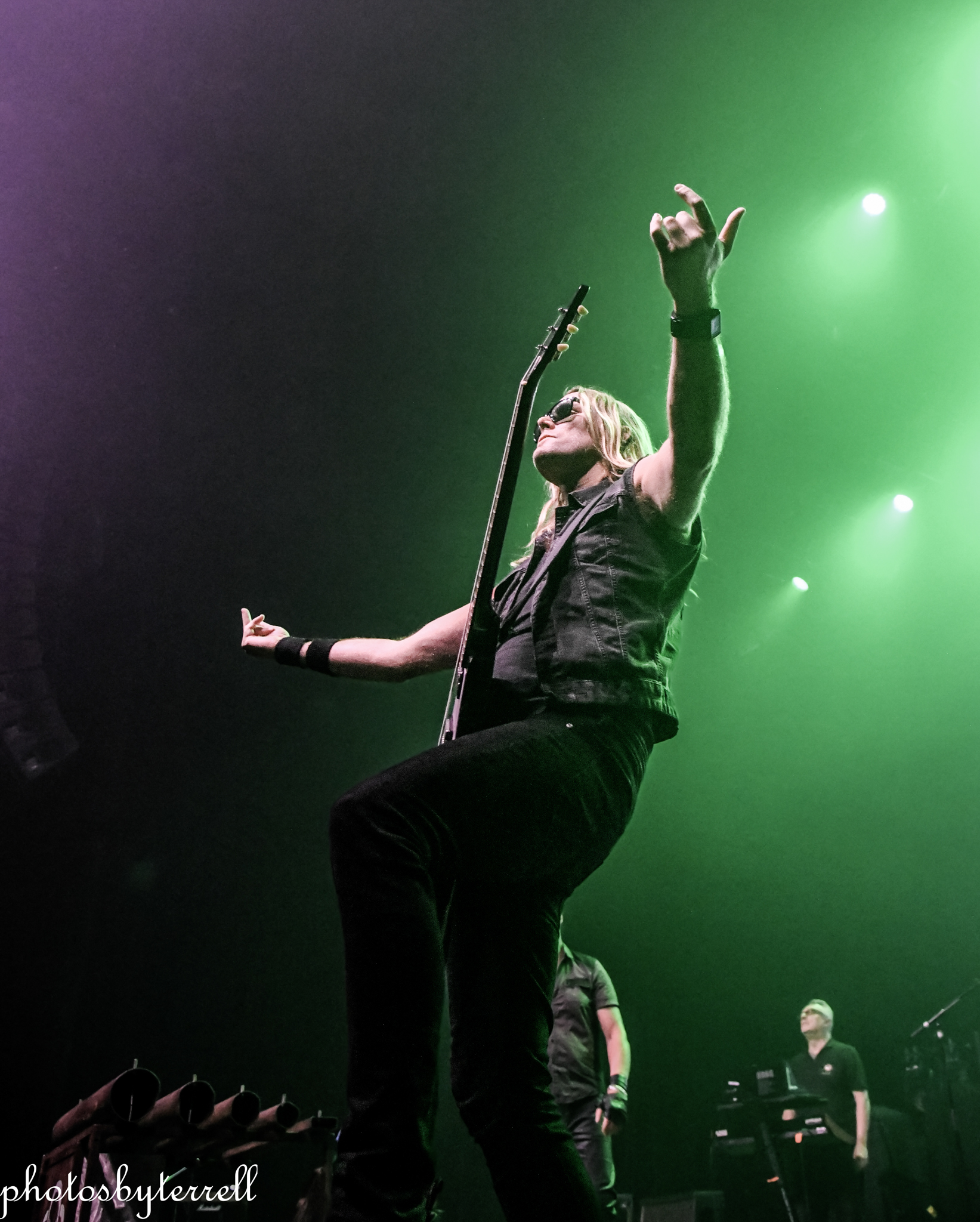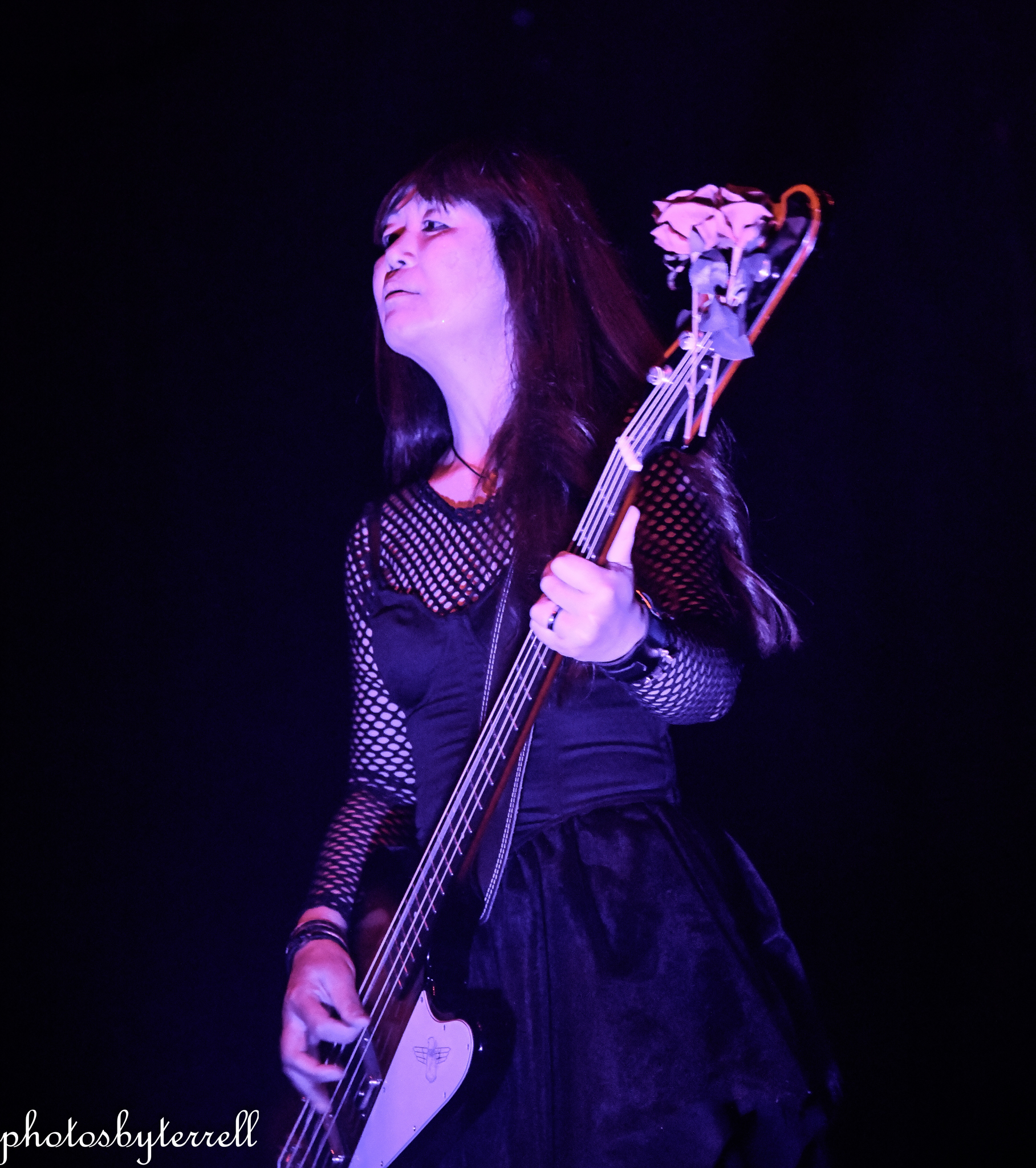 The first song set the tone for their night and the energy level in the venue was on the rise as Al moved about the stage. The music was mostly from Ministry’s early days with albums, With Sympathy from 1983 and Twitch from 1986, and their fans loved every song. As a photographer Ministry is always a fun band to photograph. Their stage presence is second to none and keeping an eye on Al and his facial expressions and those moments when he stops and poses are priceless. (see photo gallery) The stage at the Mission Ballroom is very roomy for band members to move about and with the lights dancing everywhere and the large video screen in back of the stage constantly changing colorful designs, makes for some interesting photographs.