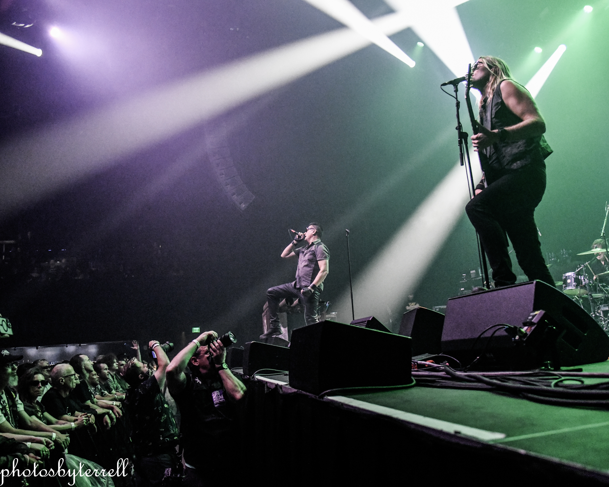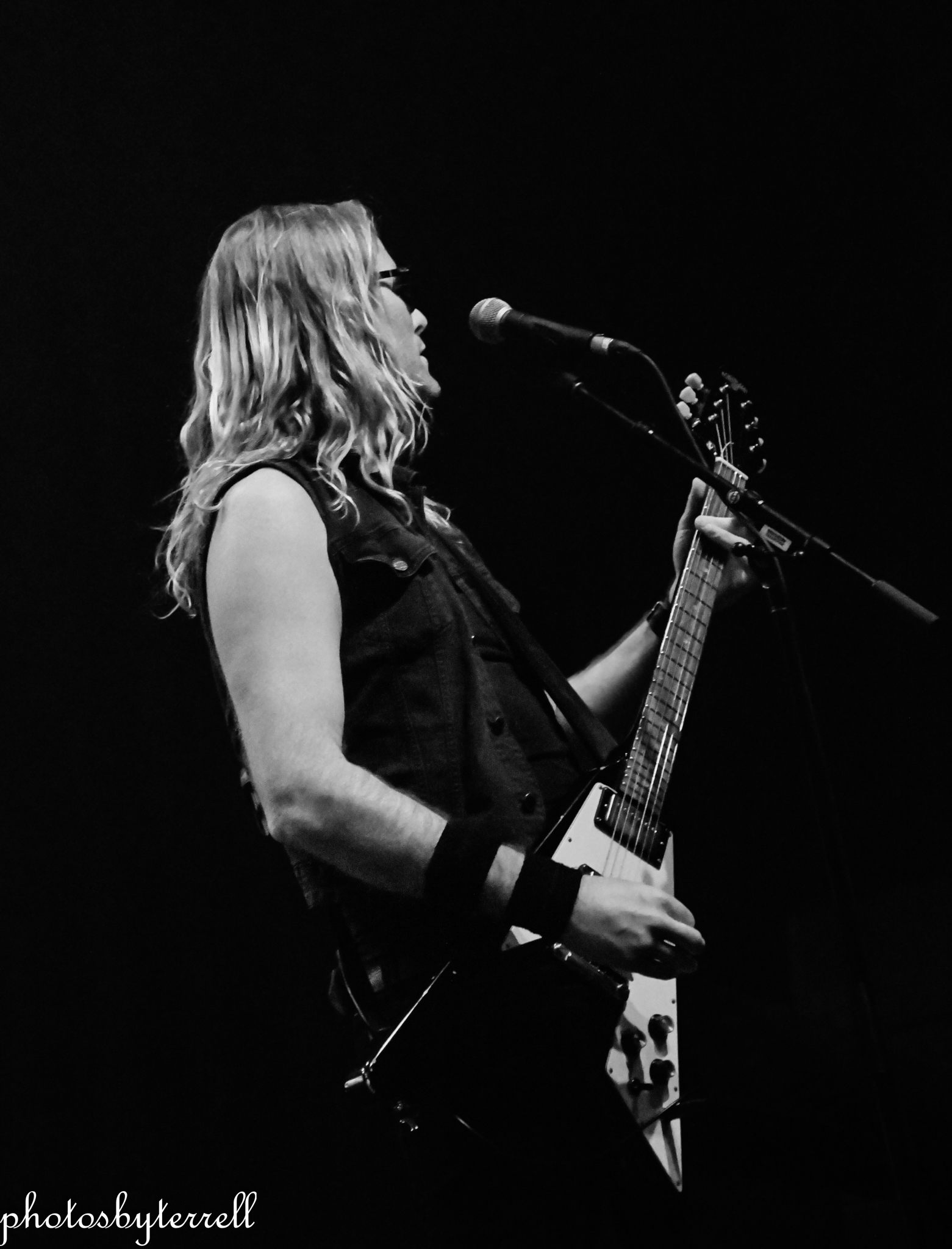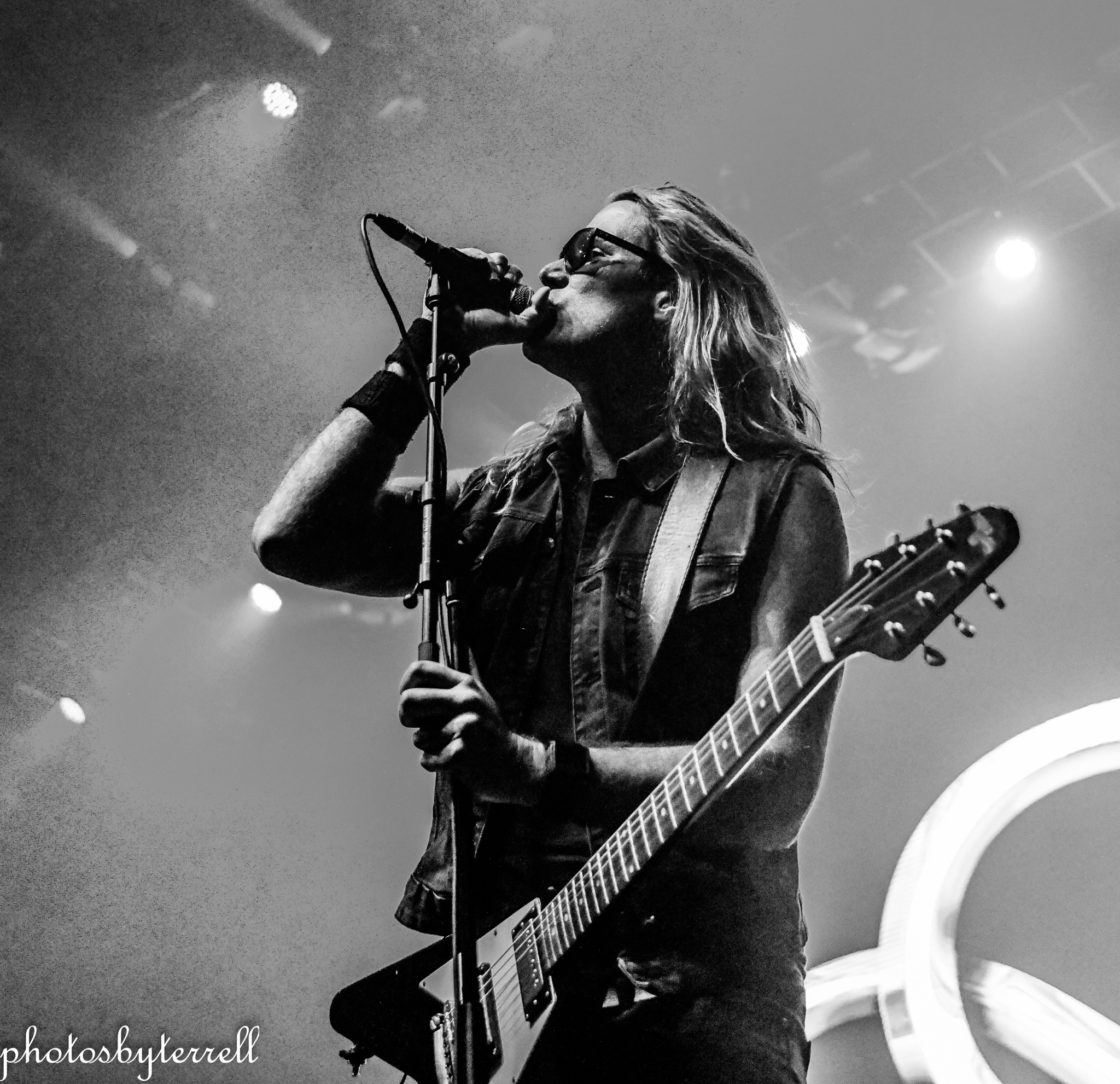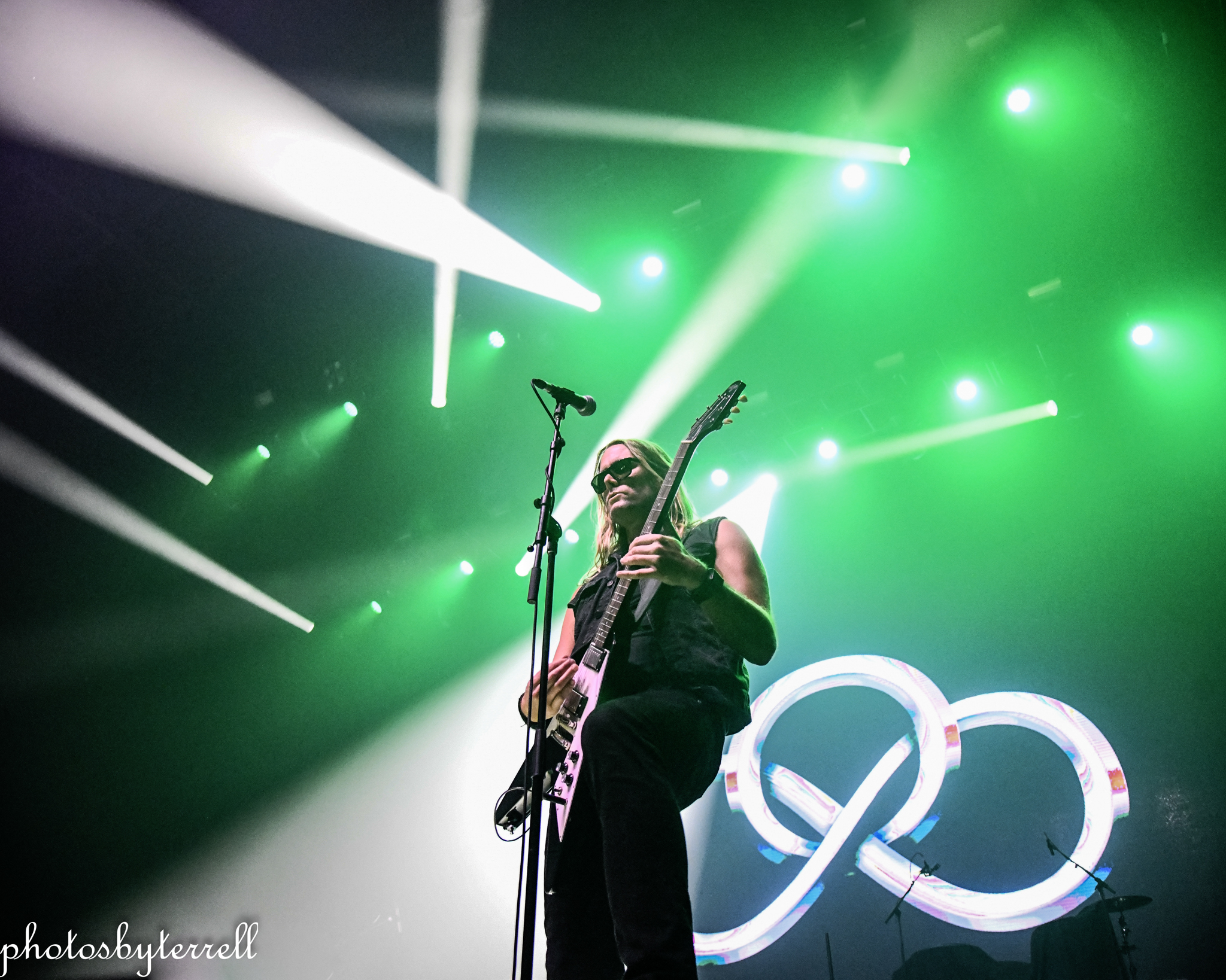 The first song set the tone for their night and the energy level in the venue was on the rise as Al moved about the stage. The music was mostly from Ministry’s early days with albums, With Sympathy from 1983 and Twitch from 1986, and their fans loved every song. As a photographer Ministry is always a fun band to photograph. Their stage presence is second to none and keeping an eye on Al and his facial expressions and those moments when he stops and poses are priceless. (see photo gallery) The stage at the Mission Ballroom is very roomy for band members to move about and with the lights dancing everywhere and the large video screen in back of the stage constantly changing colorful designs, makes for some interesting photographs.