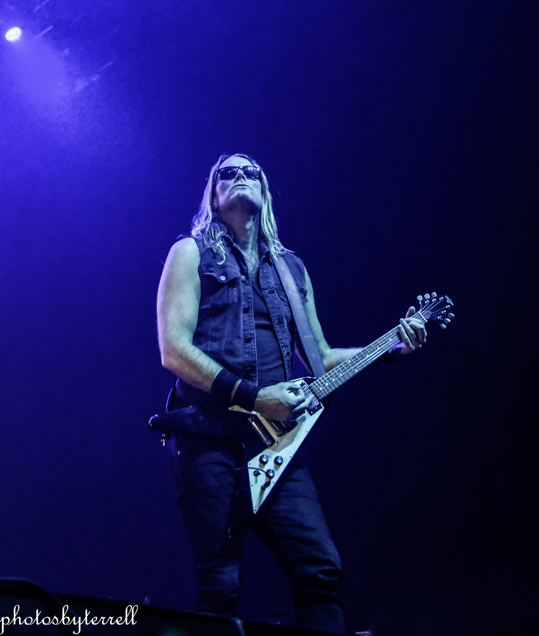 I have had the pleasure of covering Ministry’s show’s four times over the years and tonight being the 5th time and what the band had planned for this tour, I was very excited! What did the band have planned? Well, as the band made their way onto the stage and with a deafening roar from the crowd, Al Jourgensen, mic in hand, yelled out, “DENVER! Always so good to come back, yeah”! Al continues, “you all ready to take the hot tub time machine down memory lane”! With a loud cheer from their fans, the band starts their set with “Work for Love” from their 1983 album, With Sympathy and AL was on the move.