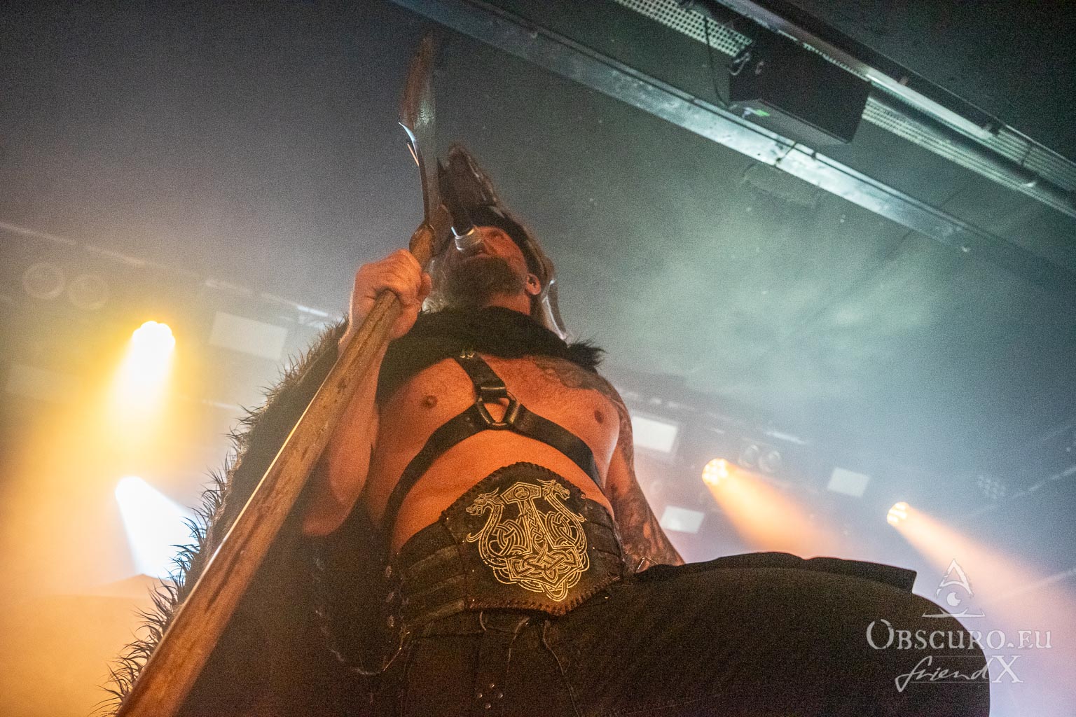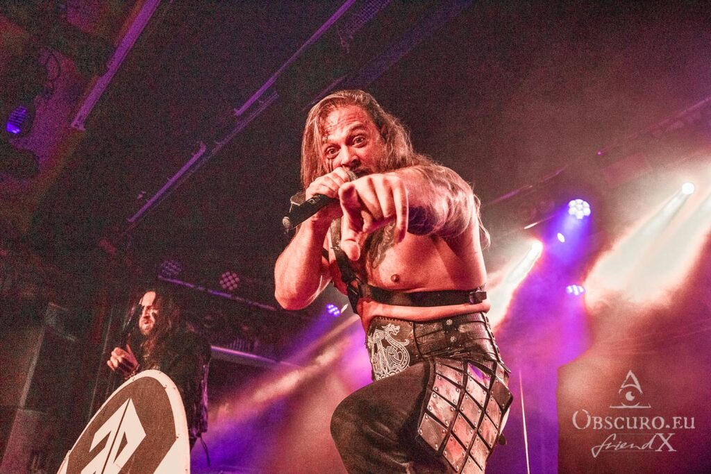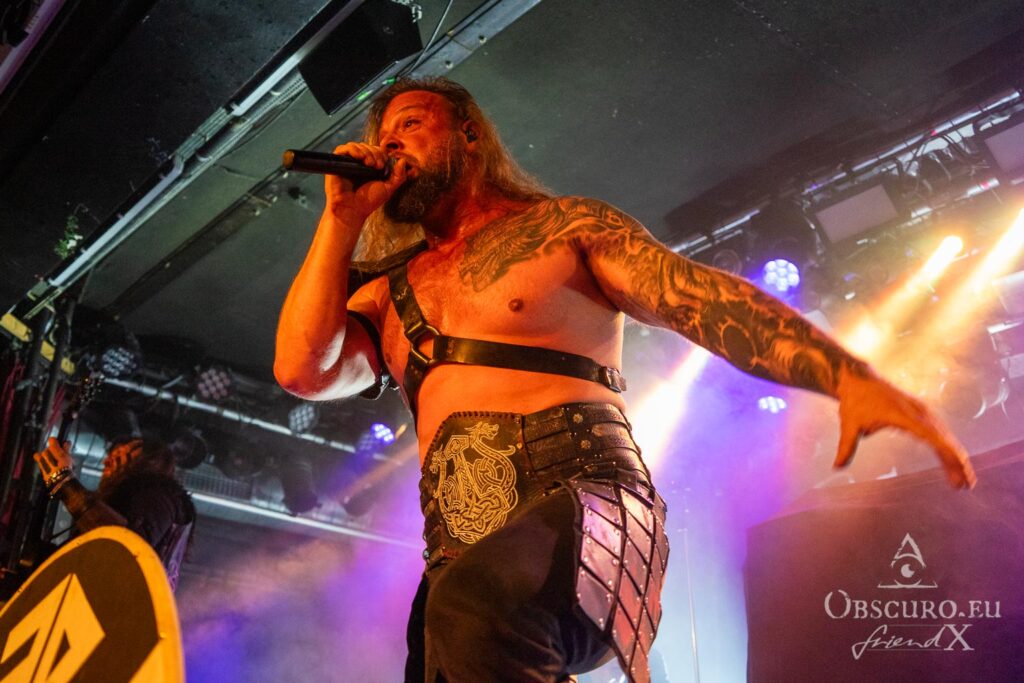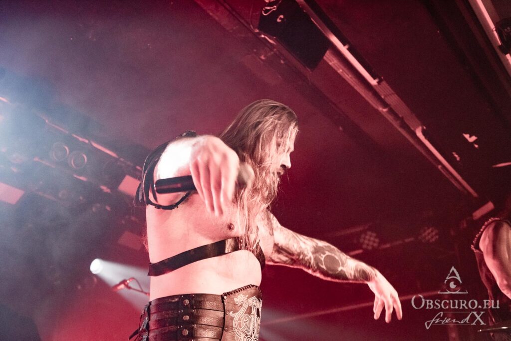 At precisely 20:00, the lights dim for the first time tonight. Asenblut’s musicians enter the stage, which is protected by Asenblut‘s Viking shields that will be used later in the show. Tim ‘Tetzel’ joins his bandmates and waves his battle axe microphone. What follows is about 45 minutes of the finest pagan metal — or is it viking metal? Or teutonic metal? Or is it just Tetzel? From the outset, it’s clear that not everyone has come for Nachtblut only. The audience is eating out of his hands. There’s no doubt that Tetzel knows how to be a good entertainer and showman.