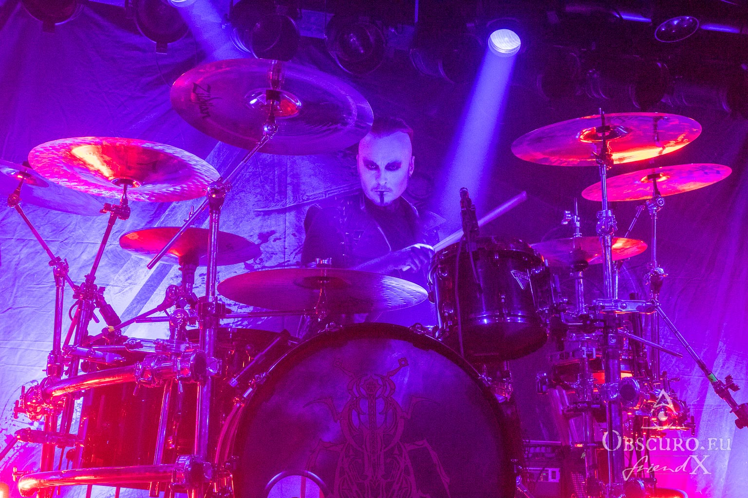 As with the previous band, the musicians enter the stage one by one, and the first heavy riffs are already played when Nachtblut vocalist Askeroth takes control. Nachtblut’s white make-up and steampunk/Gothic inspired stage outfits amaze the audience once again. It must have been similar during KISS‘s early shows in the mid-seventies, when they were young, wild and hungry. However, Nachtblut are more like KISS on adrenaline, with more sophisticated lyrics, of course.