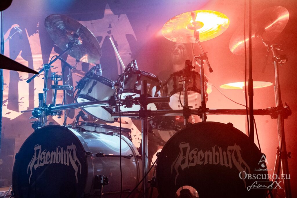 The set of Asenblut is followed by a very quick changeover of the stage, including the drums. Many bands share drums on tour to save space and luggage, but Asenblut play with double bass drums and Nachtblut with a single bass drum. And then it gets dark again, the sounds of the intro echo, fog wafts across the stage, and everything is ready for Nachtblut. They are well know for their controverse and provoking lyrics.