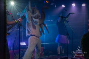 Time flies and, all too soon, Uuhai‘s set is over. Everyone hustles and bustles on stage to prepare for the final band, the headliners: Nanowar of Steel from Italy or as Gatto Panceri 666 once told me in an interview, from Uranus and generated on a planet called Earth.