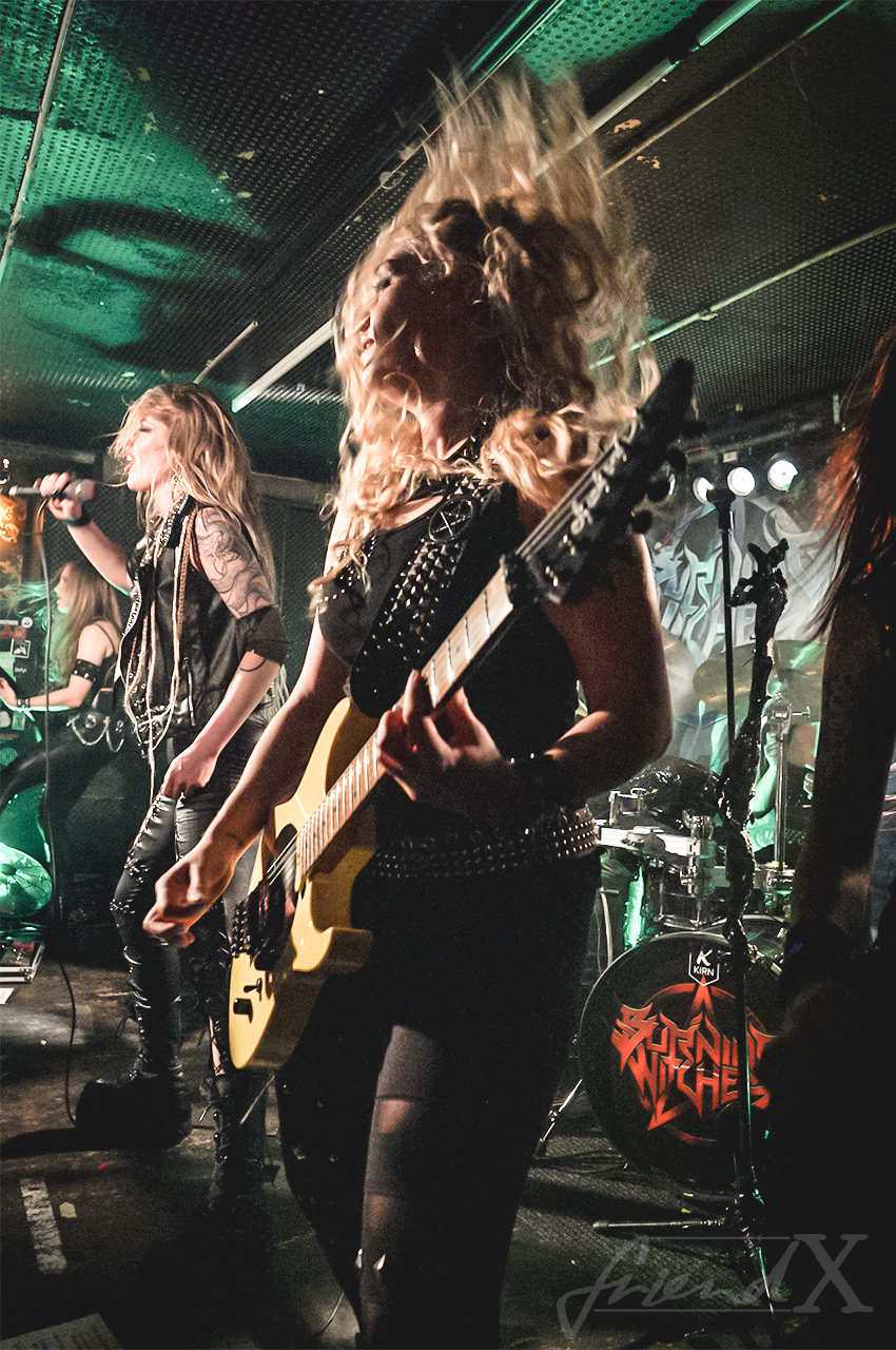 We have seen an interesting support band, Systemhouse33 which deserves more attention. Don’t watch those Bollywood musicals, they are the better deal. We have seen Nervosa with a completely new line-up and they awed us with skills. Nobody really missed the former members. Eleni, Mia, Diva together with Prika are one force, not purely Brazilian anymore but coming from Italy, Spain and Greece to conquer the world with their Thrash Metal. They will continue to tour in North America as well, together with Destruction. Prika tells me “The way the band is now is perfect, we have one goal, we want to be perfect and have a lot of fun.” She continues “The tour is great, we have a lot of fun together and with the other bands too. The backstage area really is loads of fun”. It is lovely to see her happy facing speaking it out. She deserves it more than anybody else tonight. Burning Witches delivered pure heavy metal in the best traditions of some well-known metal super stars. They played much harder, slightly faster, more aggressively, and rougher than ever before. And none missed their former members too.