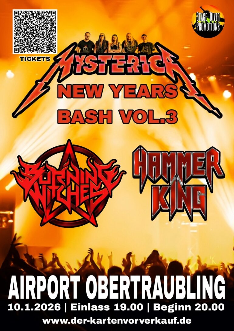 As some of you may have noticed, I finished the 2025 concert year with the Swiss band Fire Rose‘s Finale Furioso at KIK in Sissach. I told you about traditions, so here we go again: we will begin the 2026 concert year with a Swiss headliner at MystericA’s New Year’s Bash Vol. 3 at Eventhall Airport Obertraubling. It’s a bit of a family reunion because members of the Rock & Metal Day’z festival crew will either be performing on stage or watching the three bands from the front. All of them have already played on this cosy festival and one will perform as this year’s Friday night headliner…