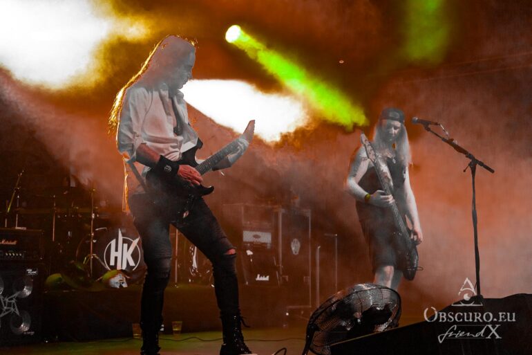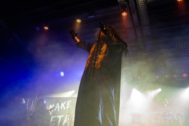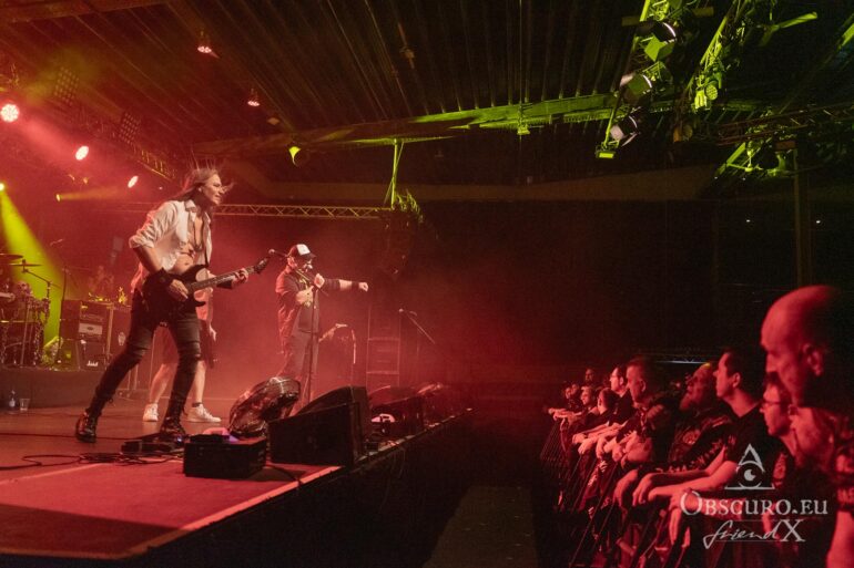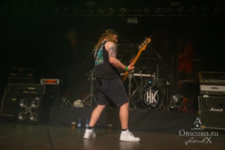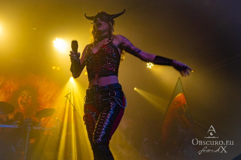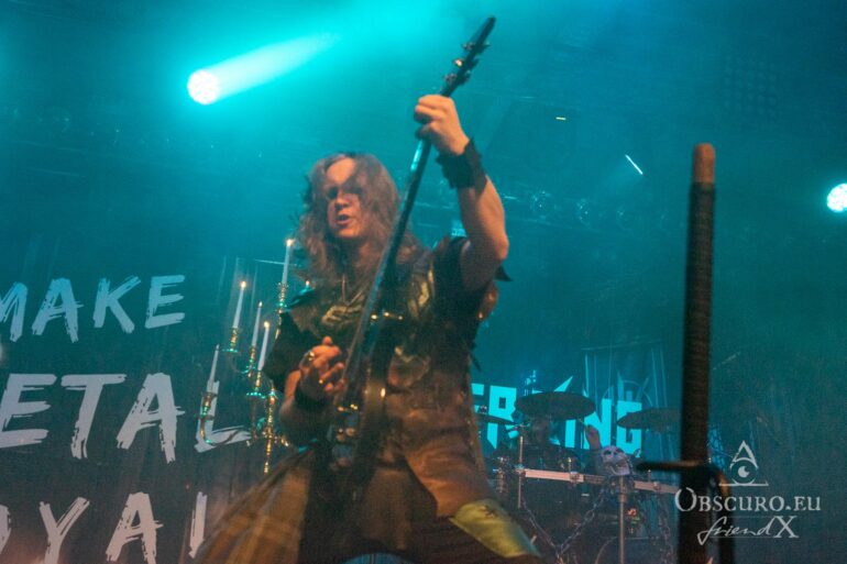 He is sometimes assisted by the band’s merch queen, Tia Wicked. Masses of coins are thrown for the audience, red balloons are kicked around, and of course, Titan Fox waves the flag. There’s a lot of talk about royalty, as well as a wild ride through the highlights of Hammer King’s seven studio releases in a still too short time of about 50 minutes. Although I am far from being a royalist, I must confess that I really liked Hammer King’s show and attitude. I can only recommend getting to see them on tour this year — for example, as support for tonight’s headliner.