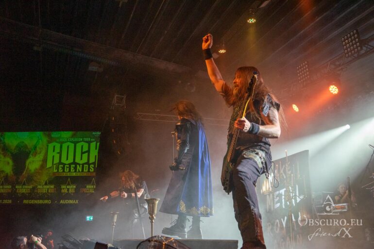 The opening act tonight will bring some royal power metal to the audience: Hammer King from Kaiserslautern/Palatinate. I last saw them at Rock Harz in 2024; meanwhile, the vocalist has put down his guitar to focus on his vocals and theatrical roleplay. Therefore, another guitarist has joined the band. What can I say? It really works very well.