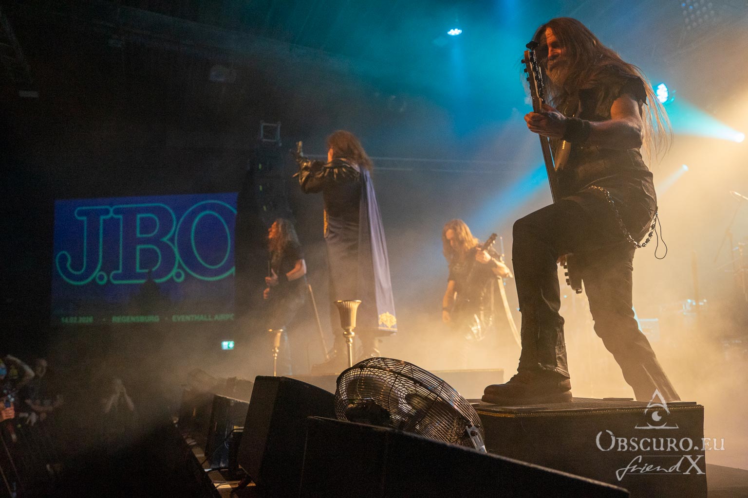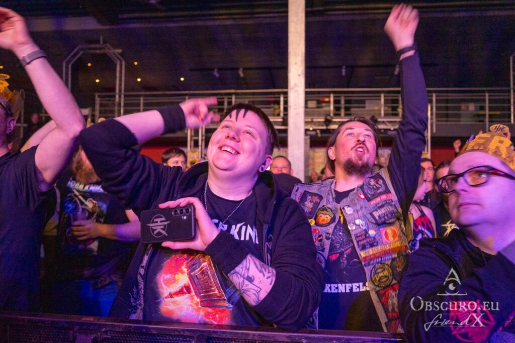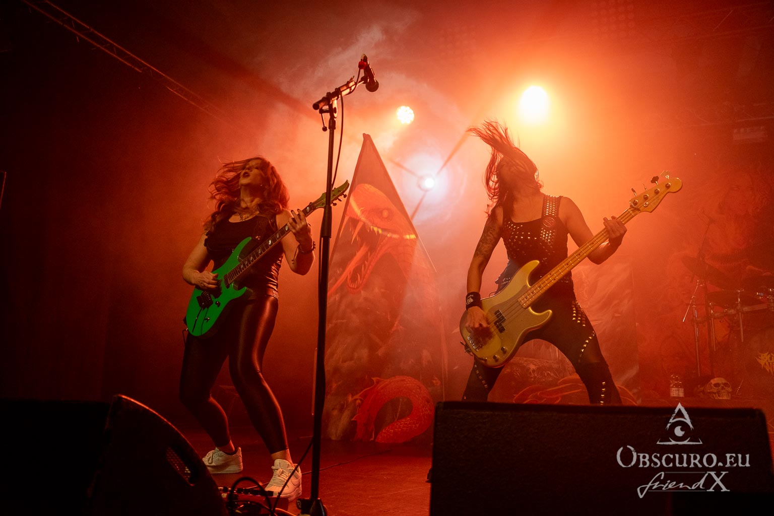 He is sometimes assisted by the band’s merch queen, Tia Wicked. Masses of coins are thrown for the audience, red balloons are kicked around, and of course, Titan Fox waves the flag. There’s a lot of talk about royalty, as well as a wild ride through the highlights of Hammer King’s seven studio releases in a still too short time of about 50 minutes. Although I am far from being a royalist, I must confess that I really liked Hammer King’s show and attitude. I can only recommend getting to see them on tour this year — for example, as support for tonight’s headliner.