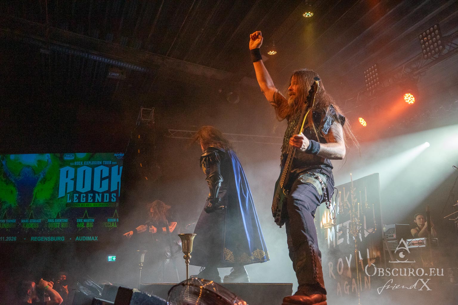 The opening act tonight will bring some royal power metal to the audience: Hammer King from Kaiserslautern/Palatinate. I last saw them at Rock Harz in 2024; meanwhile, the vocalist has put down his guitar to focus on his vocals and theatrical roleplay. Therefore, another guitarist has joined the band. What can I say? It really works very well.