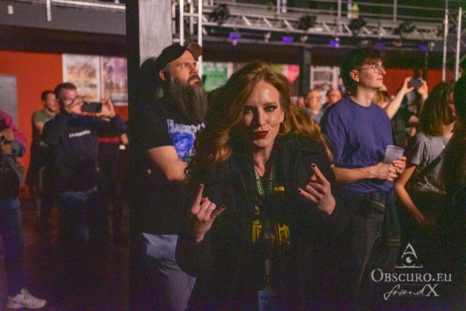 It was lovely meeting Courtney in the MystericA audience, as well as talking to young mother Romana and Jay at the merchandise stand before the show. All five of the band members are lovely, open-minded ladies. On the subject of merchandise, while Hammer King have their merch queen, Burning Witches have their merch witch, Ilaria, on board. She is Italian, born and raised in Verona near Lake Garda, and now lives in Berlin. She is also the tour manager of Kadavar from Berlin. Meet her and Tia at their merchandise stalls for a chat and leave them a tip — they both deserve it for their smiles!