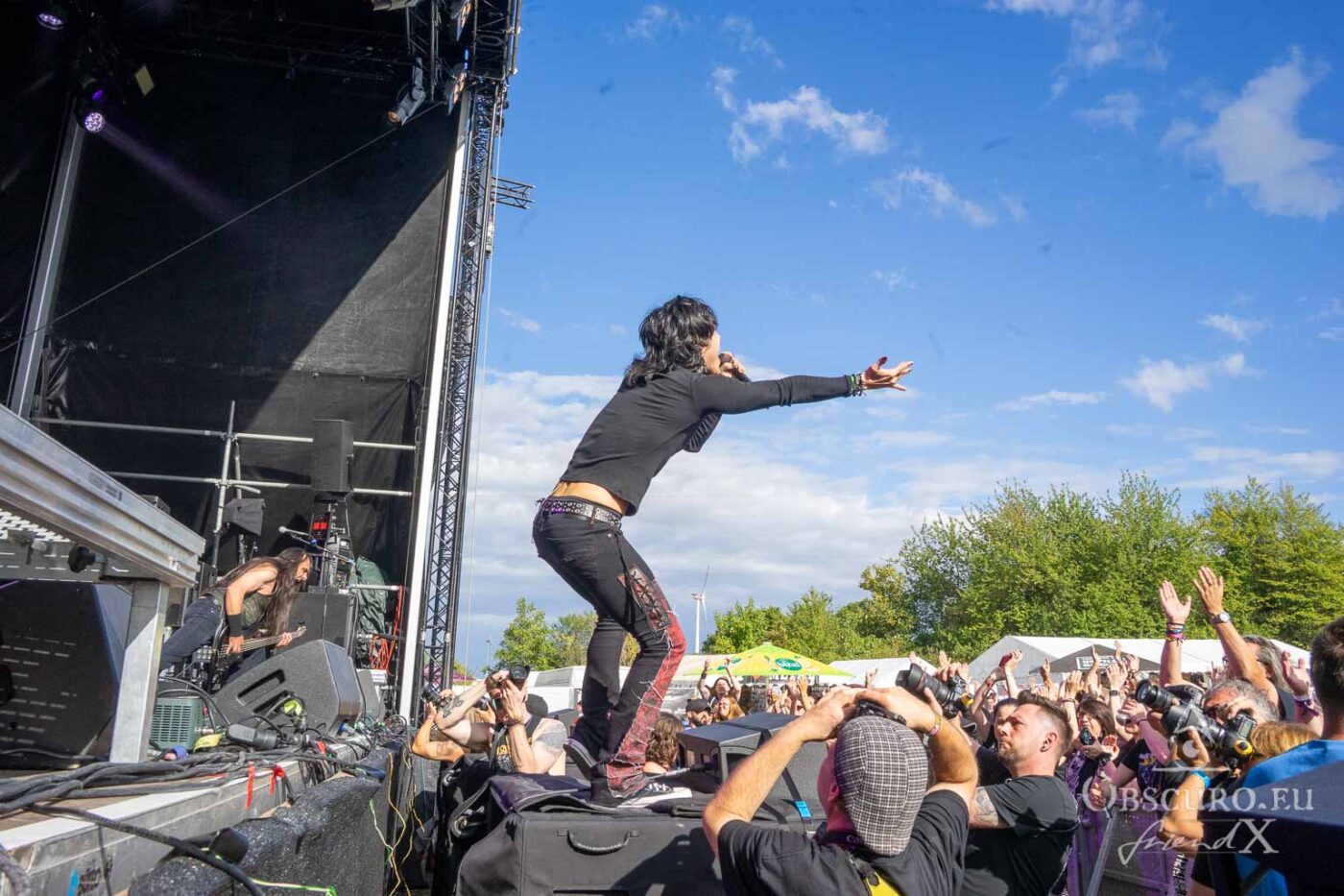 Soon it’s time for the first band of the day: Leyka, from nearby Mainz, open with a peppery dose of Metalcore. For a Friday afternoon, the infield is already very well filled. It looks like all their local fans have come to see them perform on such a big stage.