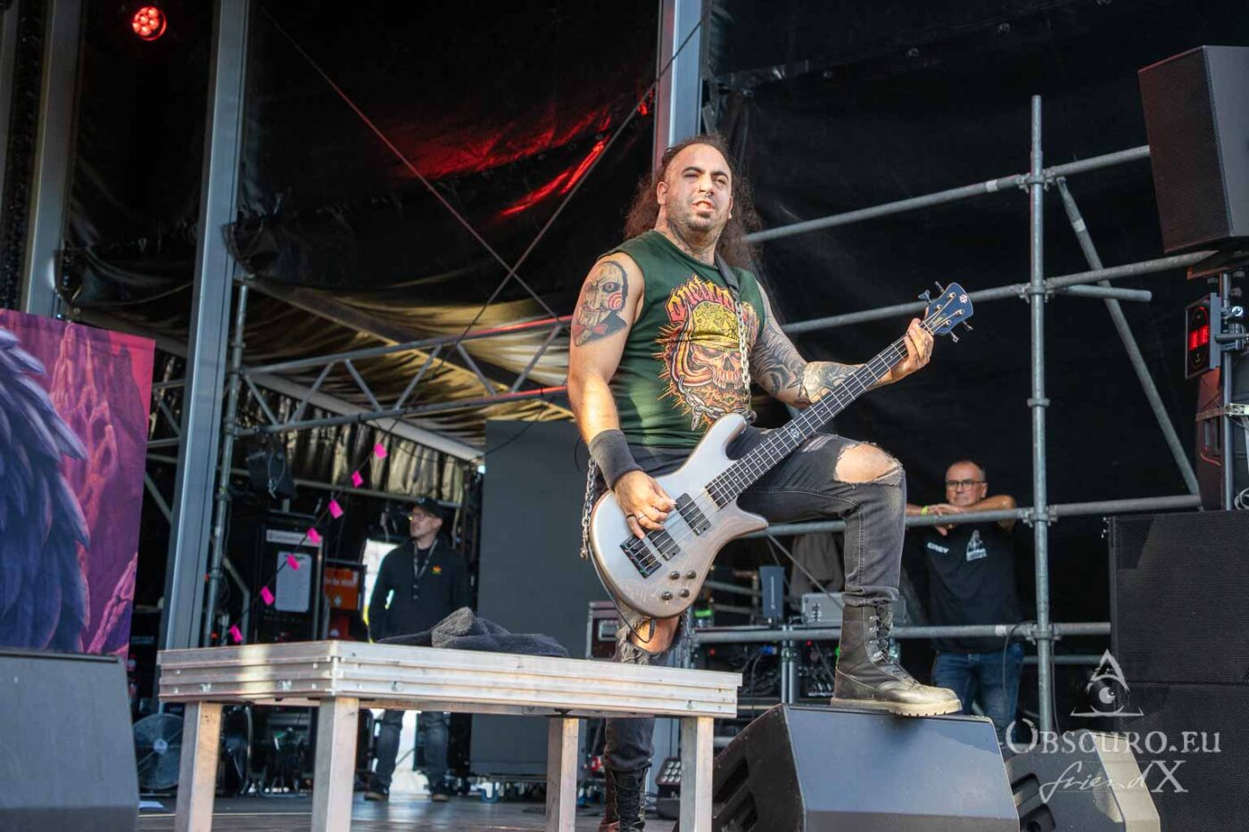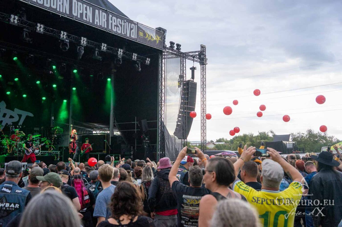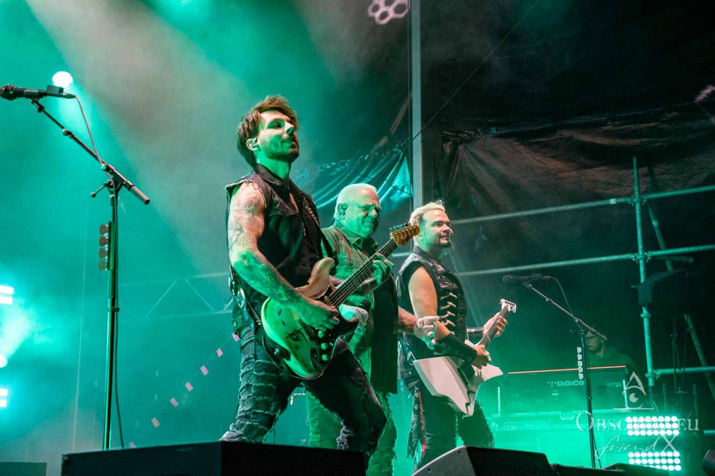 Tonight’s headliner and closer is a short-term substitute. As many of you will know, Saxon’s vocalist Biff is still not fully fit for exhausting live shows and travel after his cancer treatment. Consequently, they had had to cancel more than ten foreseen shows, including NOAF. As sad as this is, none other than the German metal institution Dirkschneider has stepped in. The backdrop is huge, as are the audience’s expectations. We have already seen a very good line-up. Will Dirkschneider be able to top it? In short, balls to the wall, they will! After more than 50 years, Udo Dirkschneider continues to wow audiences with his unique style — he’s as steady and solid as a rock in the storms of heavy metal.