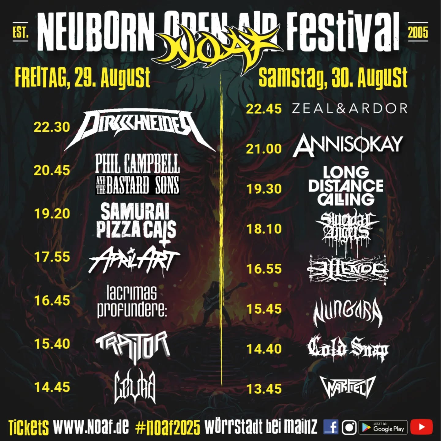 Three weeks after the Party.San Open Air, it’s time for the second and final encore of my summer festival season. I will be visiting a nearby festival. In fact, it is so close that I had never been before. For 19 years, it was just too close in time to another festival that I had attended regularly for almost a decade. Now, however, the time has come for me to add NOAF in Wörrstadt to my list of local festivals. I will therefore commute between my warm, dry bed at home and the festival.