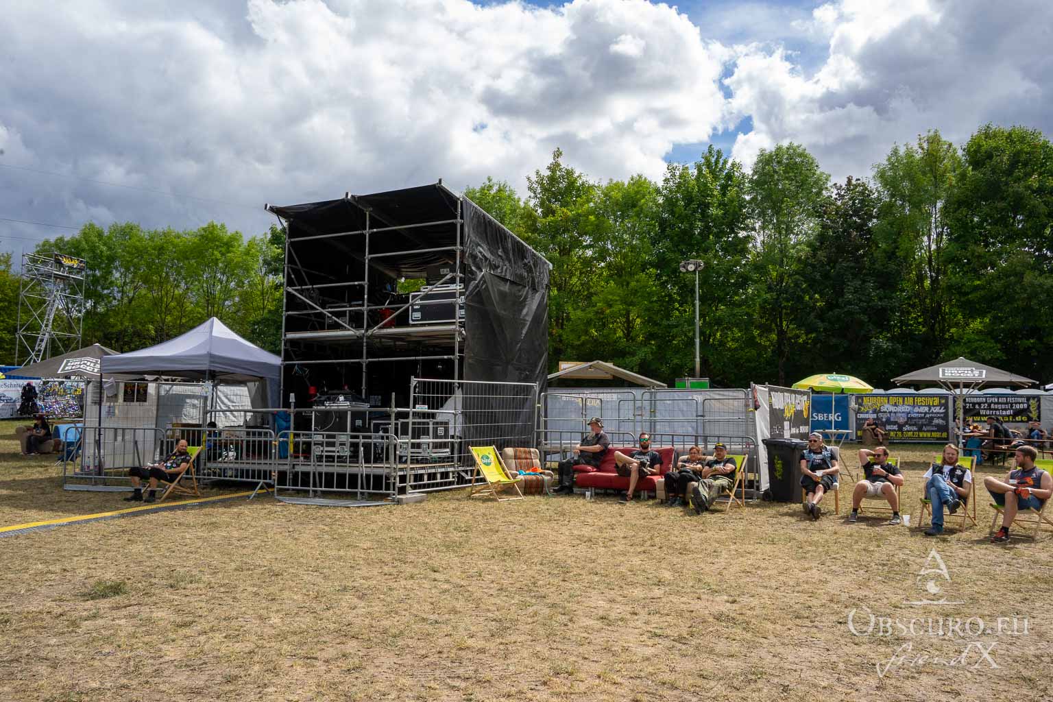 On Friday, shortly after noon, I make my way to the festival site. Sadly, it takes longer than expected due to roadworks around Wörrstadt. It’s still a drive of less than 45 minutes, though. Finding the site and parking the car is easy; from the car park to the infield, it takes less than half the time it takes to drink a ‘Wegbier’, so it’s not even worth opening the can. I passed the caravan parking area and reached the entrance. Incidentally, the parking and camping areas are separate, so it’s a good idea to bring a handcart for your luggage if you’re camping at the festival site.
