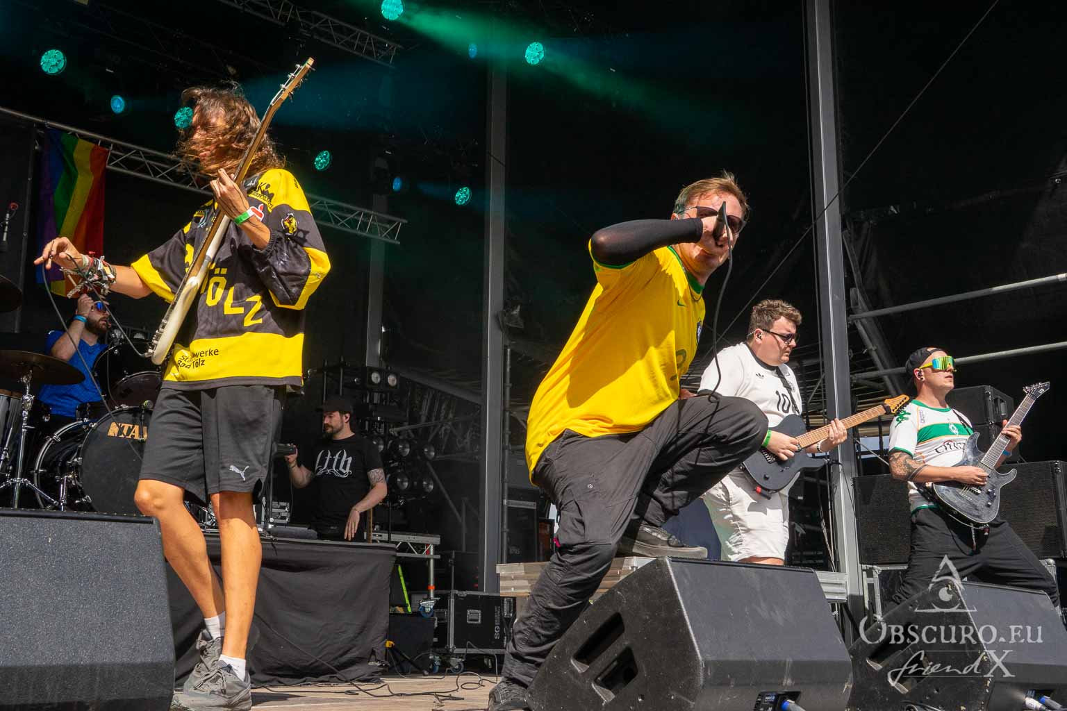 Soon it’s time for the first band of the day: Leyka, from nearby Mainz, open with a peppery dose of Metalcore. For a Friday afternoon, the infield is already very well filled. It looks like all their local fans have come to see them perform on such a big stage.