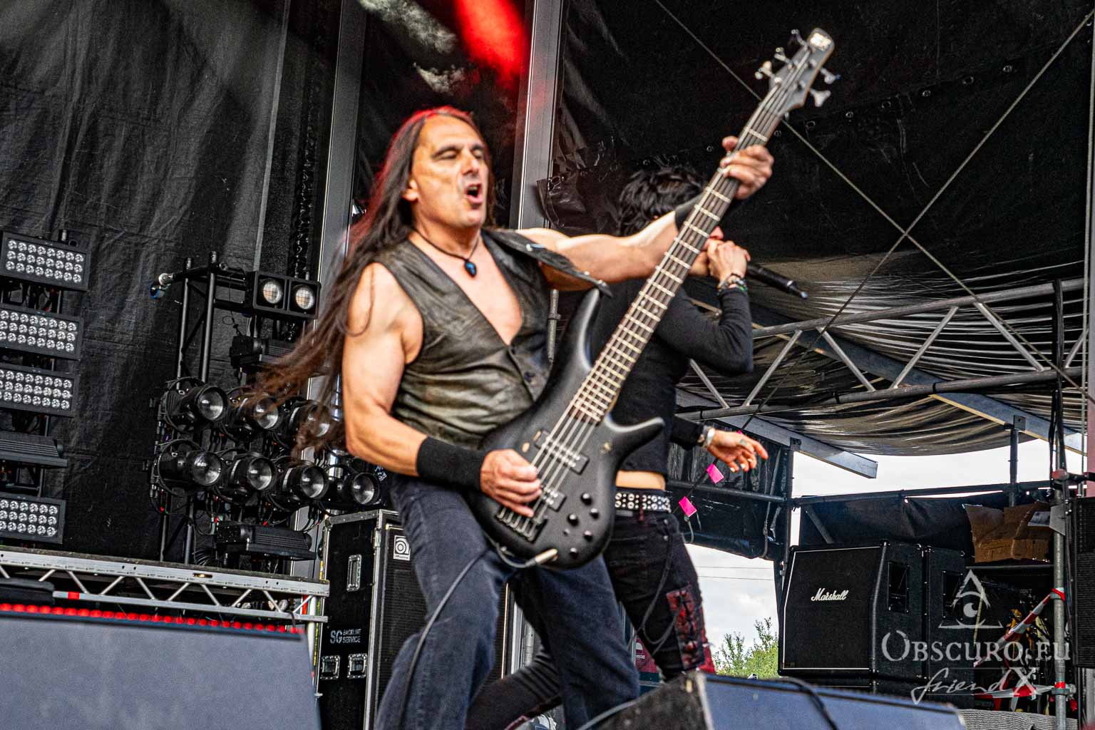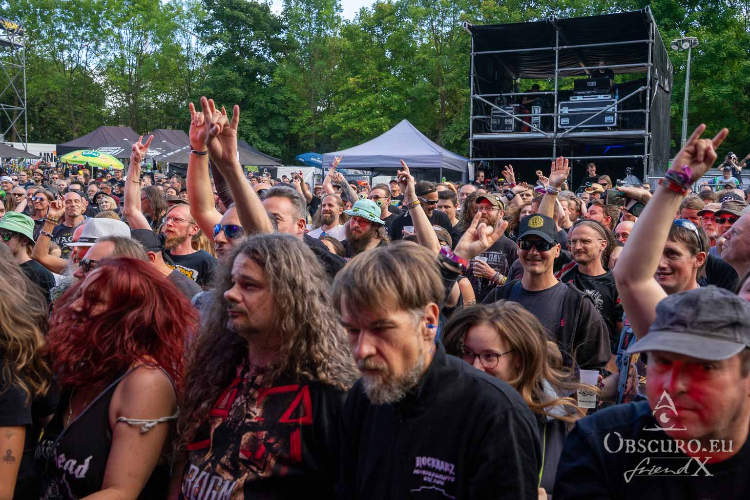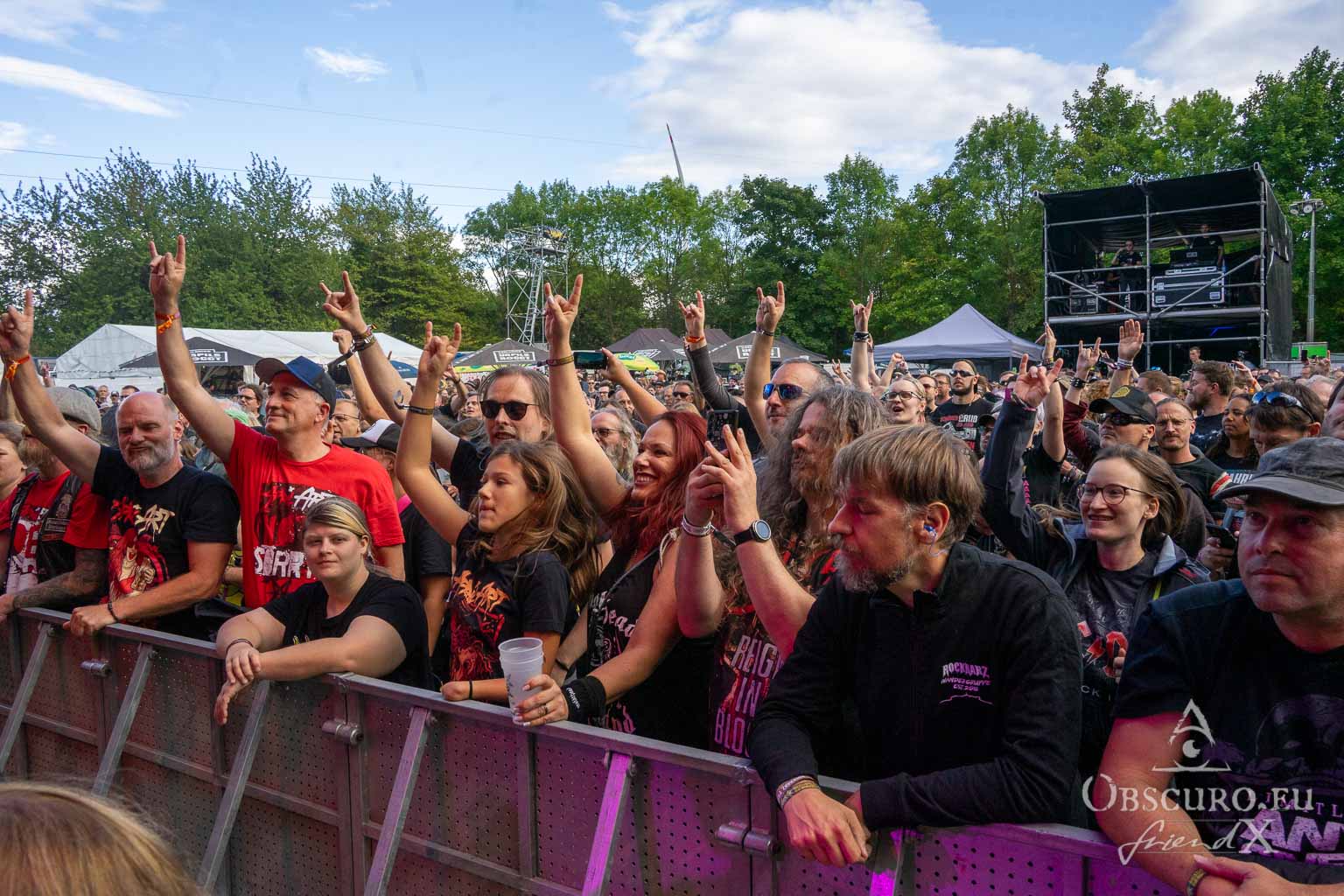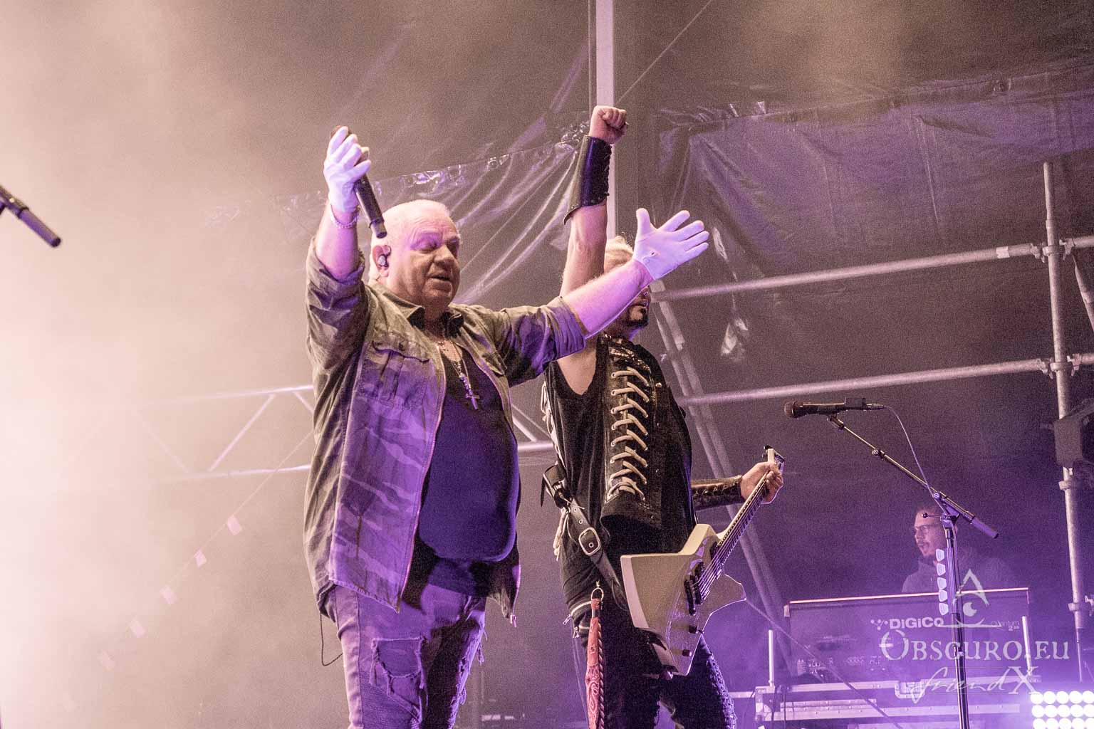 Tonight’s headliner and closer is a short-term substitute. As many of you will know, Saxon’s vocalist Biff is still not fully fit for exhausting live shows and travel after his cancer treatment. Consequently, they had had to cancel more than ten foreseen shows, including NOAF. As sad as this is, none other than the German metal institution Dirkschneider has stepped in. The backdrop is huge, as are the audience’s expectations. We have already seen a very good line-up. Will Dirkschneider be able to top it? In short, balls to the wall, they will! After more than 50 years, Udo Dirkschneider continues to wow audiences with his unique style — he’s as steady and solid as a rock in the storms of heavy metal.