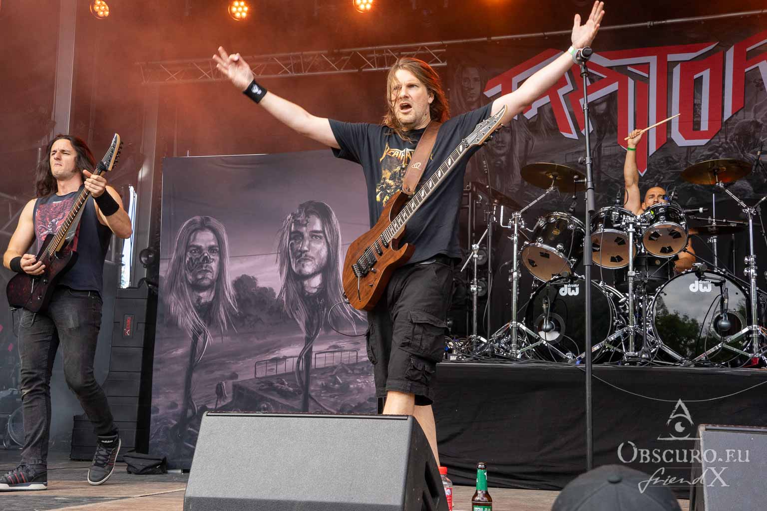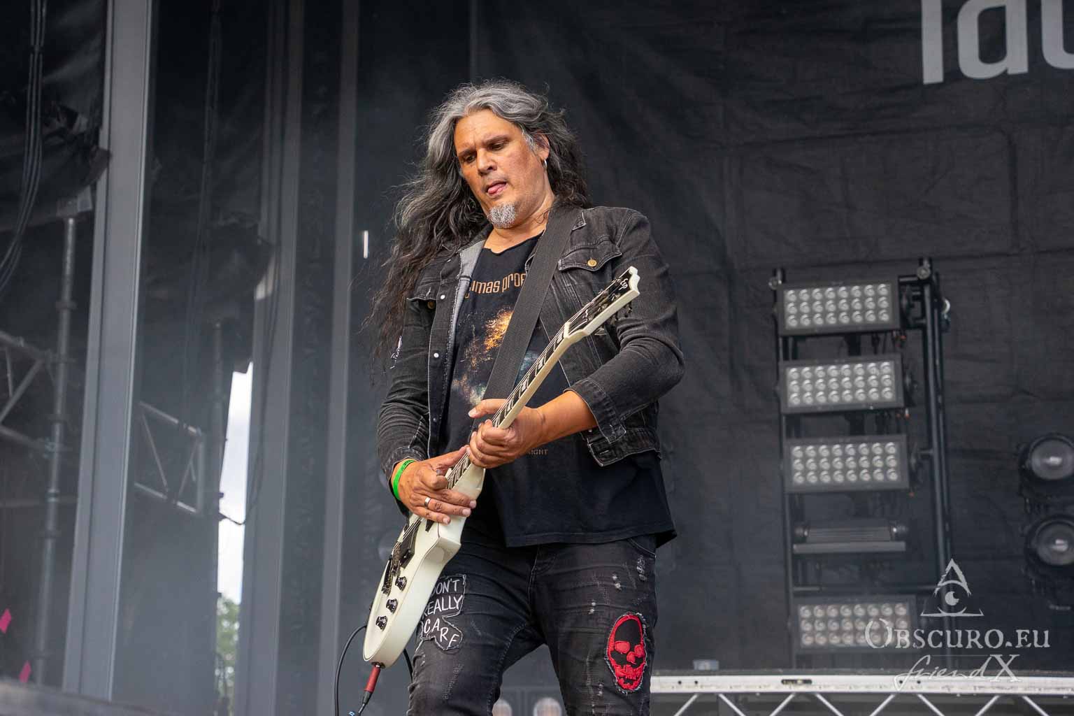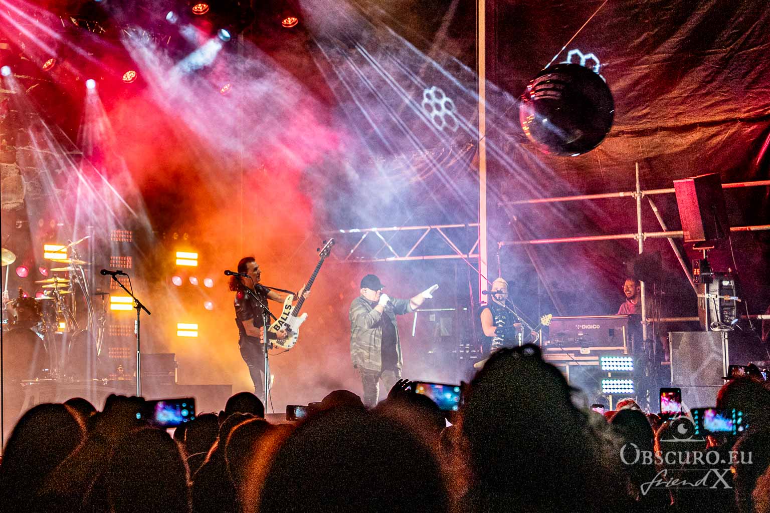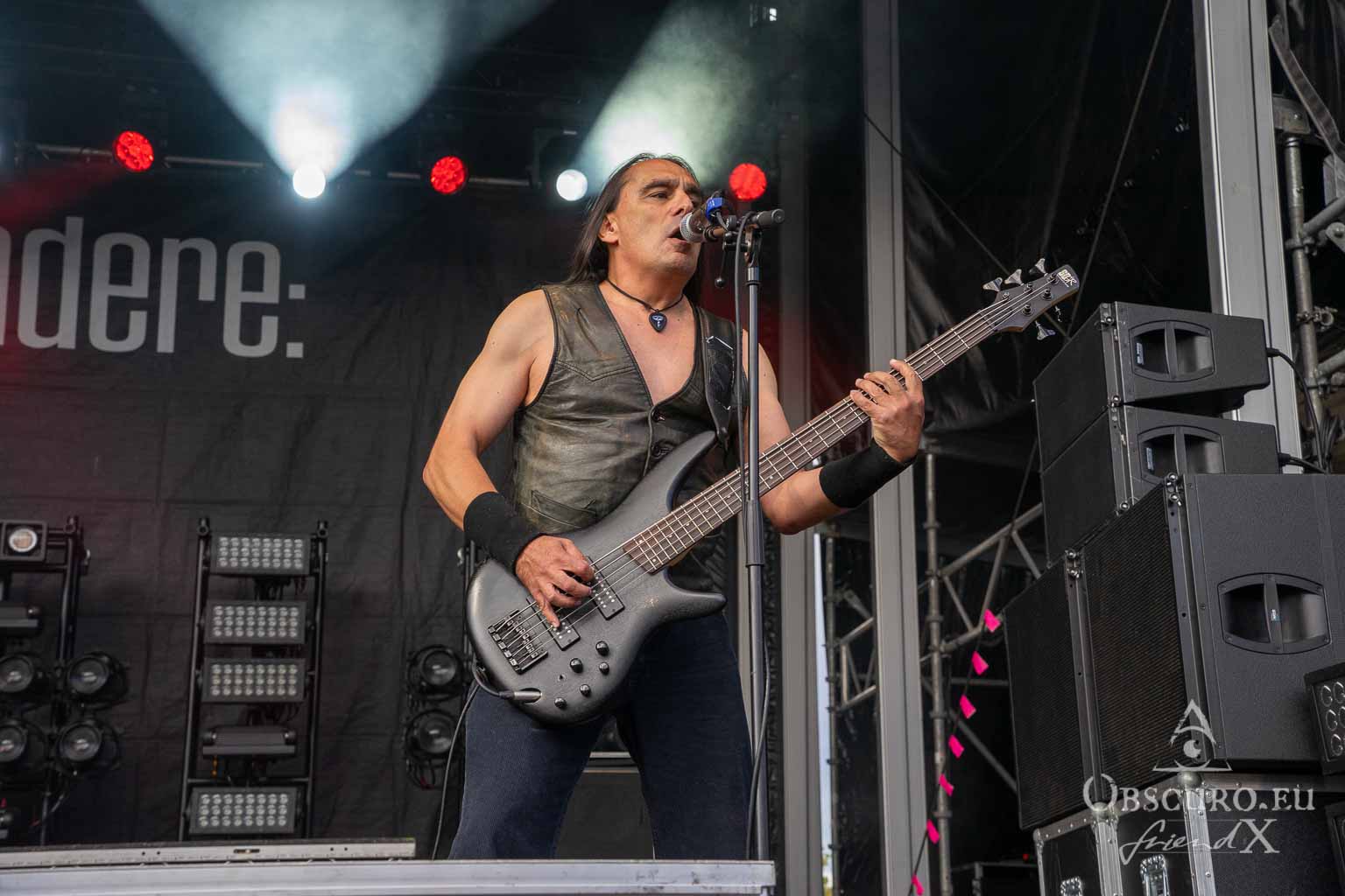 Tonight’s headliner and closer is a short-term substitute. As many of you will know, Saxon’s vocalist Biff is still not fully fit for exhausting live shows and travel after his cancer treatment. Consequently, they had had to cancel more than ten foreseen shows, including NOAF. As sad as this is, none other than the German metal institution Dirkschneider has stepped in. The backdrop is huge, as are the audience’s expectations. We have already seen a very good line-up. Will Dirkschneider be able to top it? In short, balls to the wall, they will! After more than 50 years, Udo Dirkschneider continues to wow audiences with his unique style — he’s as steady and solid as a rock in the storms of heavy metal.