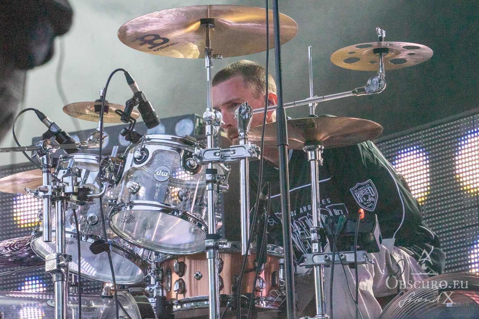 It takes a bit longer to change over to Samurai Pizza Cats and their mix of Fun-Core, Modern Metal and Pop-Punk because everything is a bit wet and needs fixing. I was recommended the band by one of my colleagues at work. I met her and her friends recently, and we’re meeting again after the band’s performance. I am very curious about the Samurai Pizza Cats — what can I say? I can see why so many people like the band, even though they don’t match my personal musical taste for 100%. They really are a girly band and ear and eye candy for the many women in the audience with an outstanding, yet funny and enjoyable live performance.