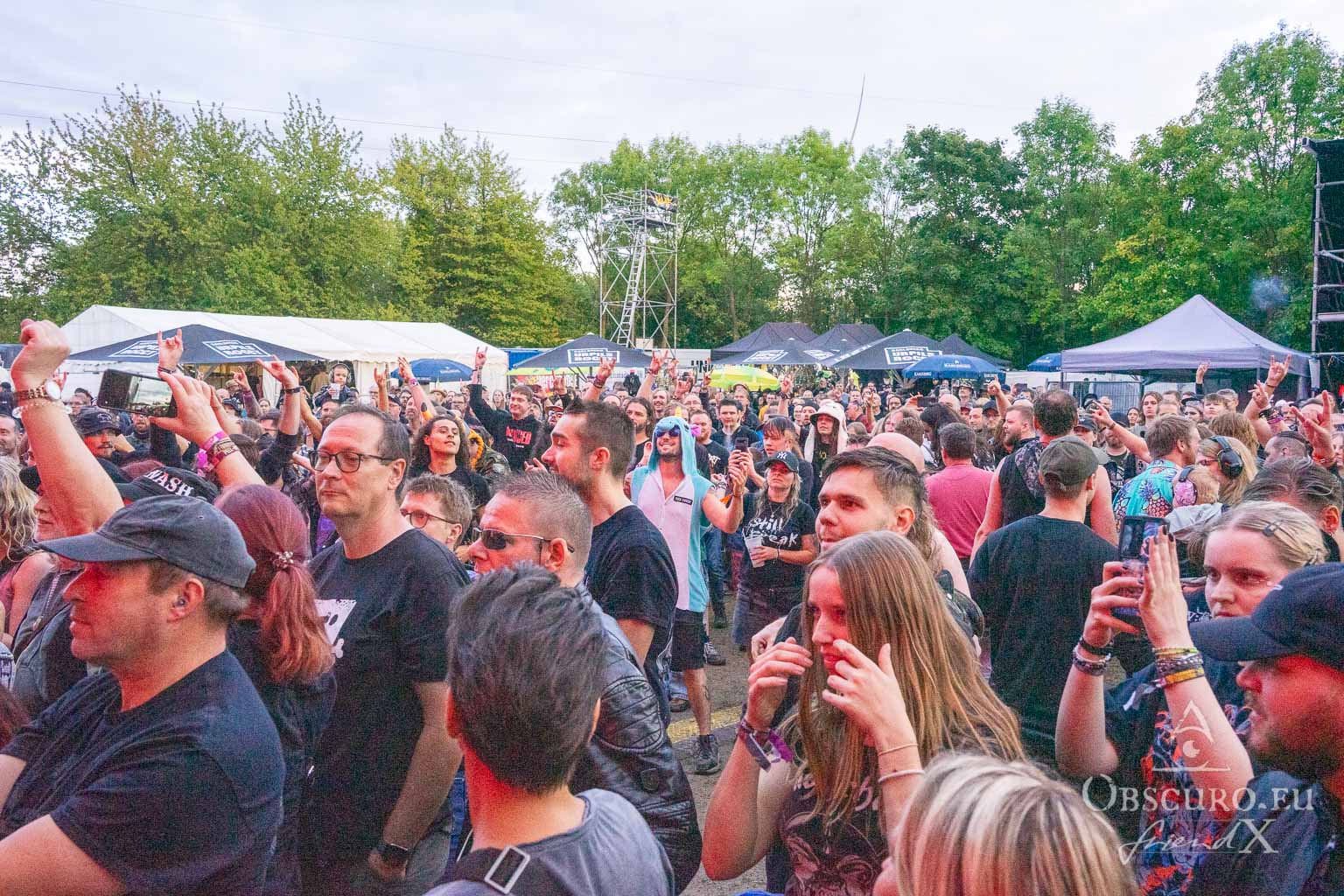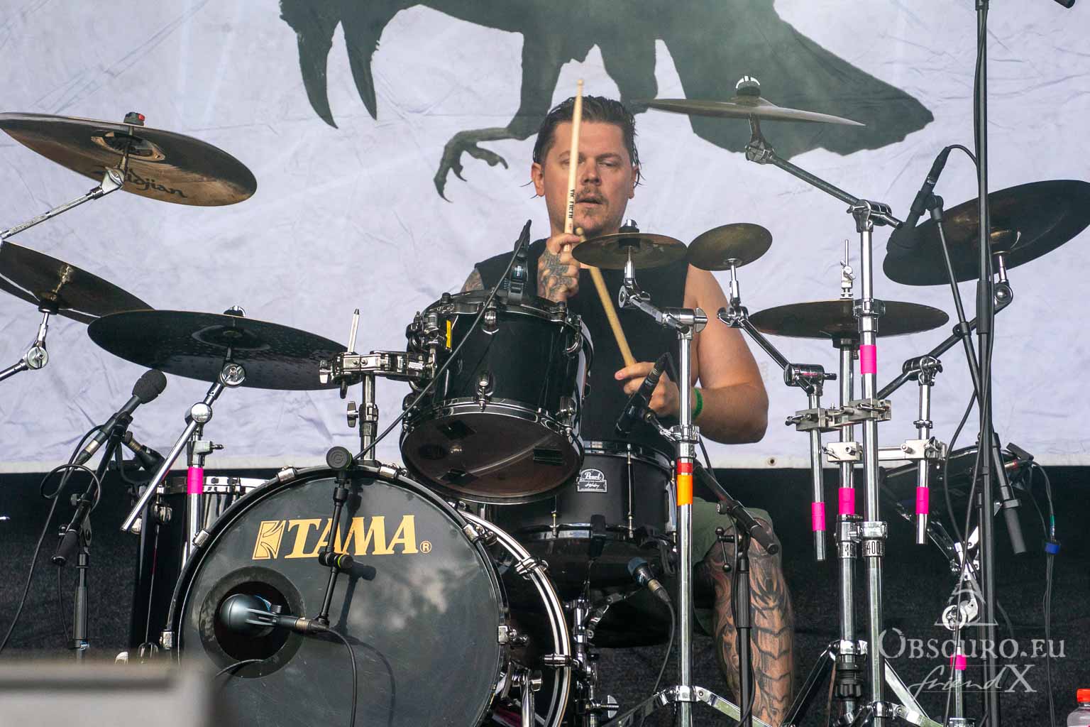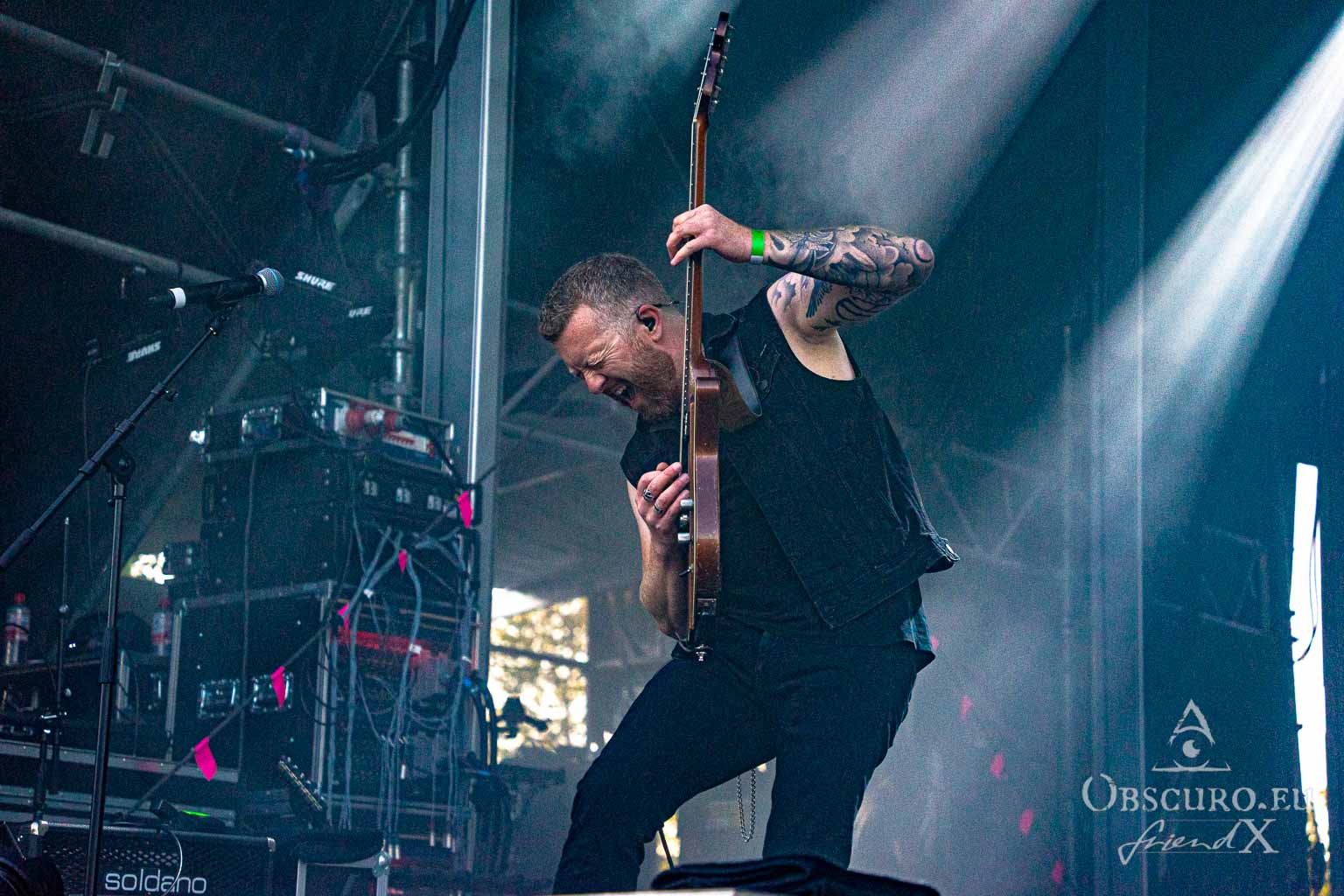 Annisokay perform some excellent post-modern metalcore. The band from Halle is the co-headliner on Saturday for good reason. Their sound is sharp and their performance is powerful, driving the audience’s mood to new heights. However, these heights are a bit too high for vocalist Rudi Schwarzer, who nearly collapses due to circulatory problems. The show therefore has to be interrupted for a few minutes to resolve the issue. Nobody leaves the arena, nobody complains, but everyone in the audience applauds when Annisokay return to the stage to finish their set. From now on, they are Rudisokay, with a slightly slower performance. Incidents like this can always happen for whatever reason. It is therefore always important to have your emergency crew nearby and ready to step in and save the day.