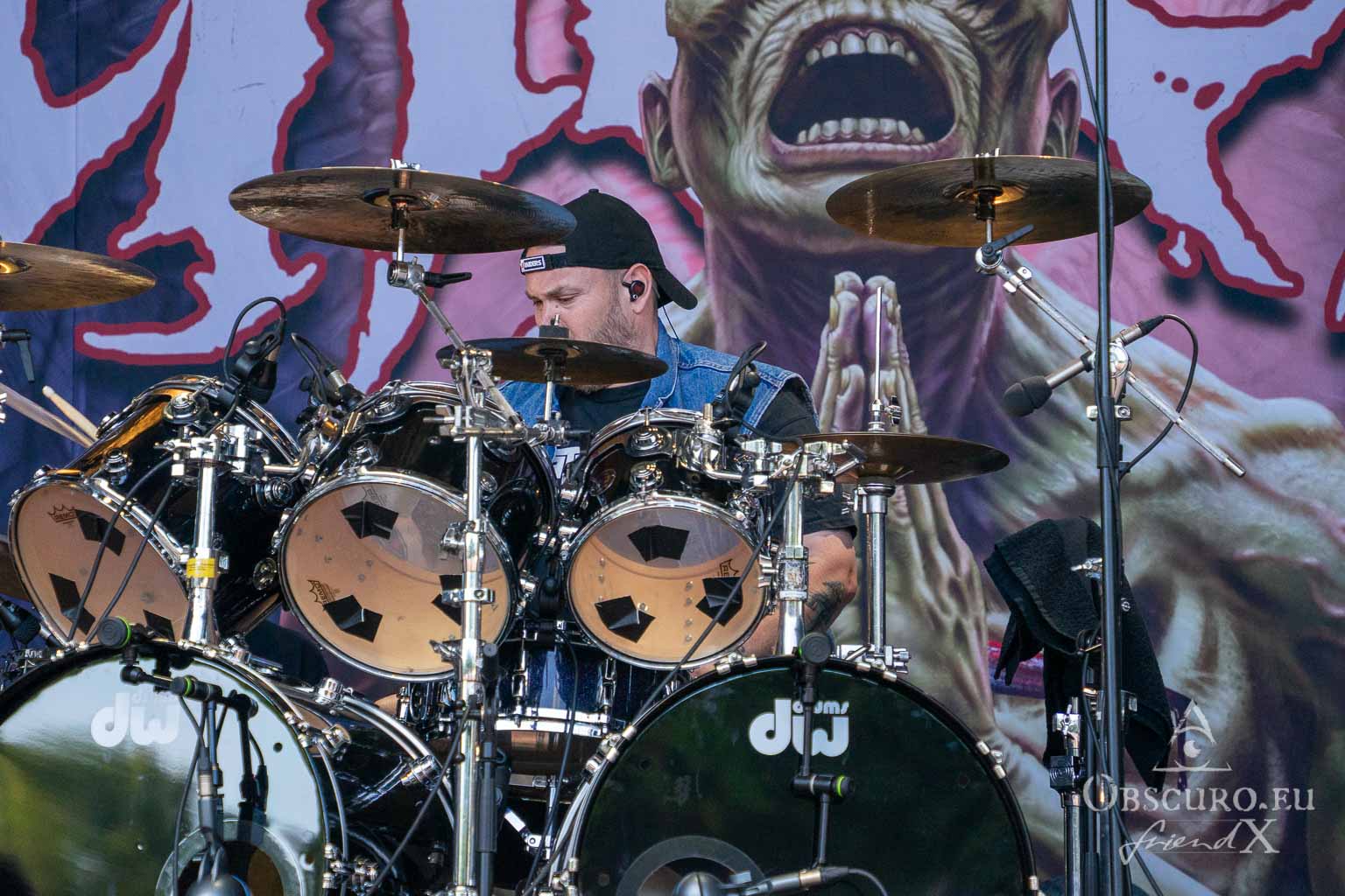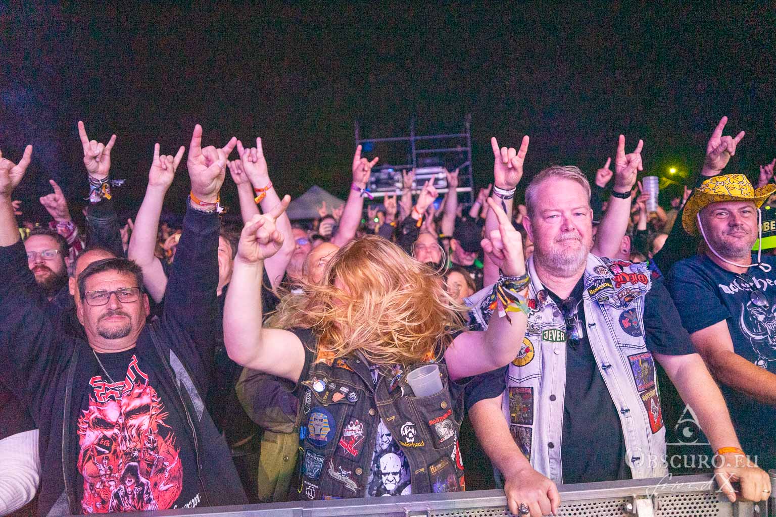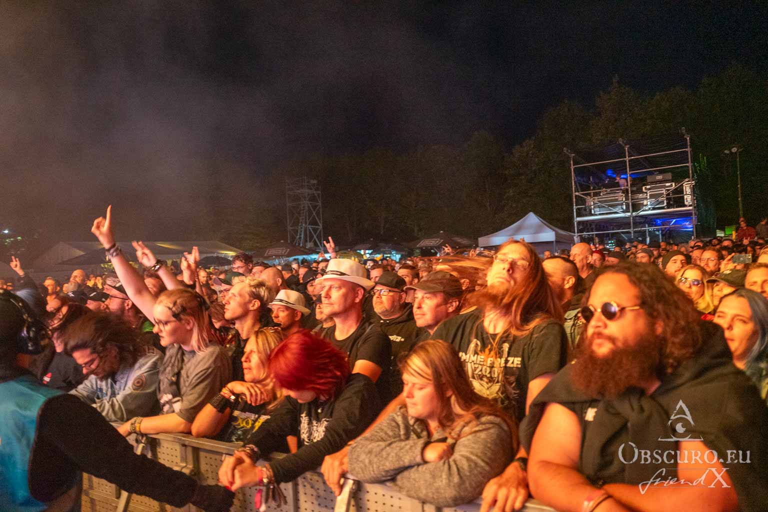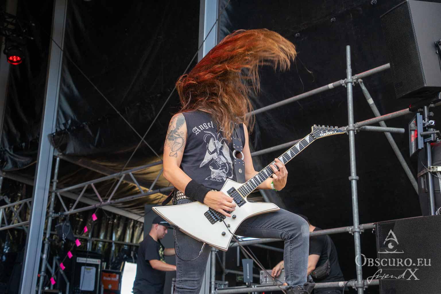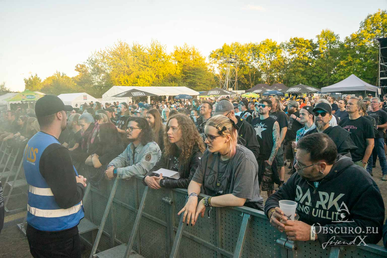 In contrast, the music of the next band, Suicidal Angels from Greece, hits you right between the eyes. The finest thrash metal rules. They purify the audience with fast riffs, thunderous drums and harsh vocals. The only thing missing is an endless circle pit, but that only lasts for the first few minutes; from that point on, it doesn’t stop until the show is finished and it’s finally time for dinner during the changeover.