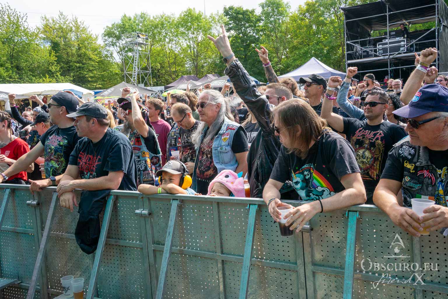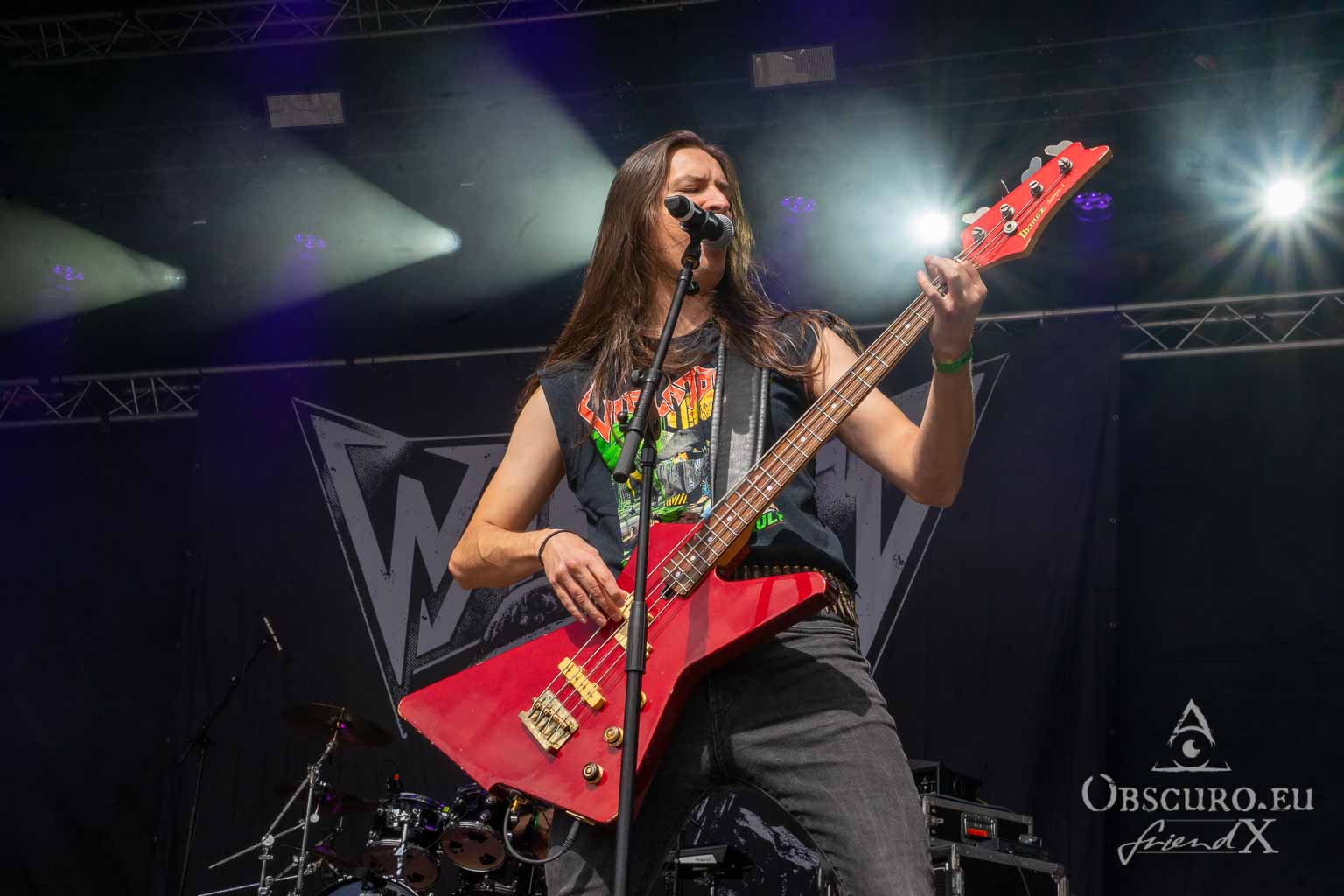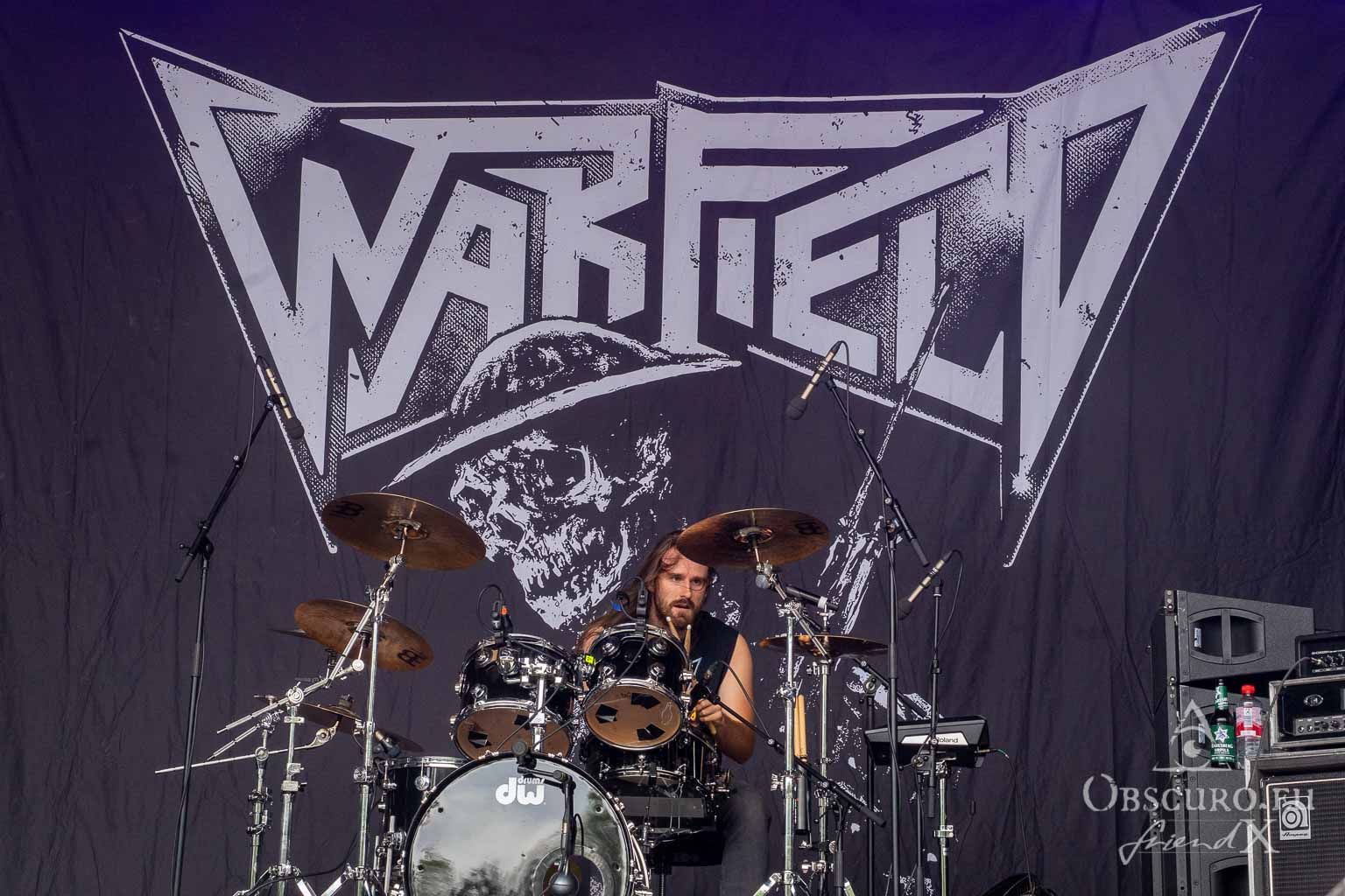 I arrive just in time for Warfield, who are playing at lunchtime. They describe themselves as Teutonic Thrash Metal from Kaiserslautern in the Palatinate region of Germany. Their sound is fresh, aggressive and loud — the perfect accompaniment to beer, sausages and French fries.
