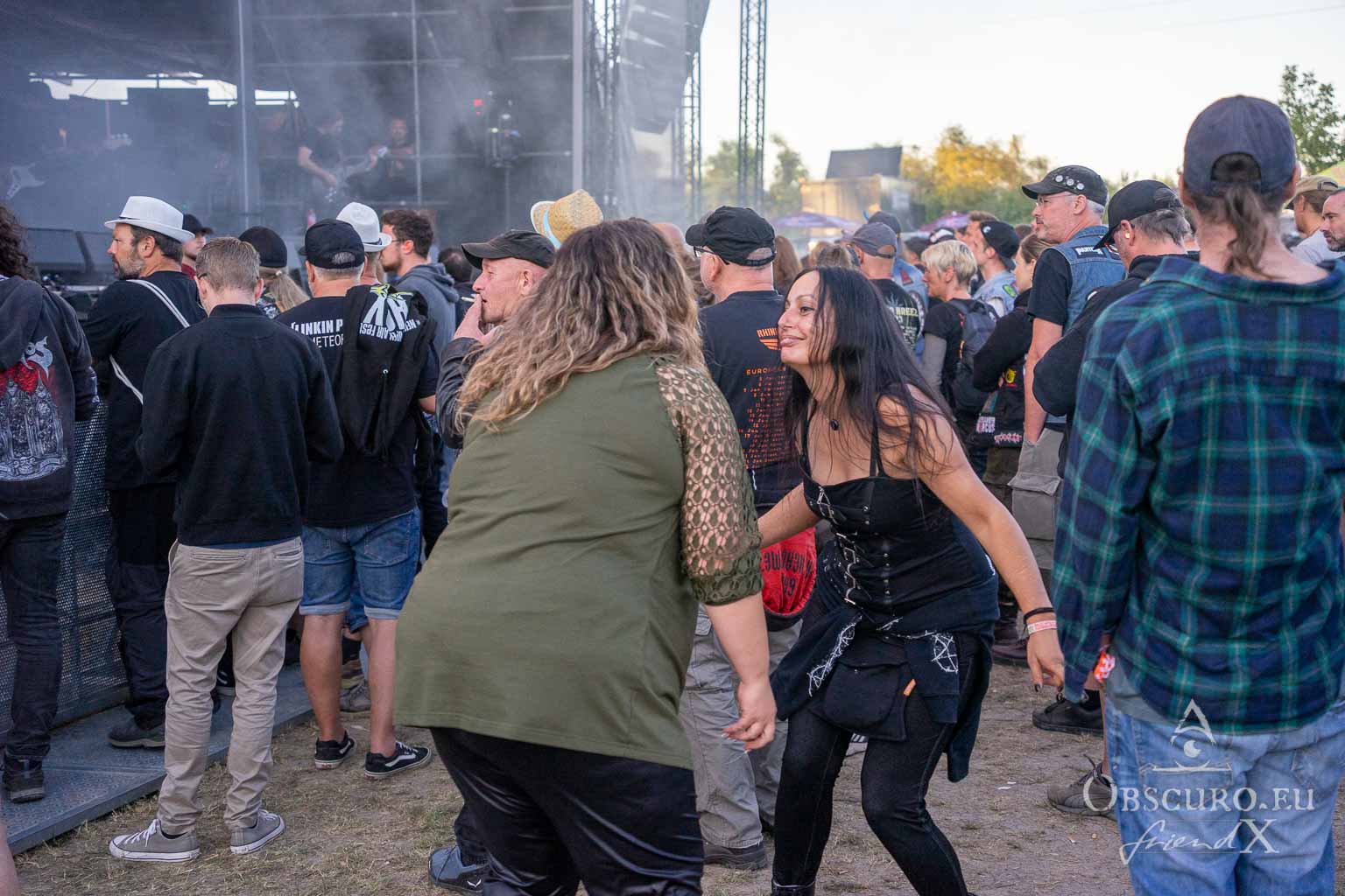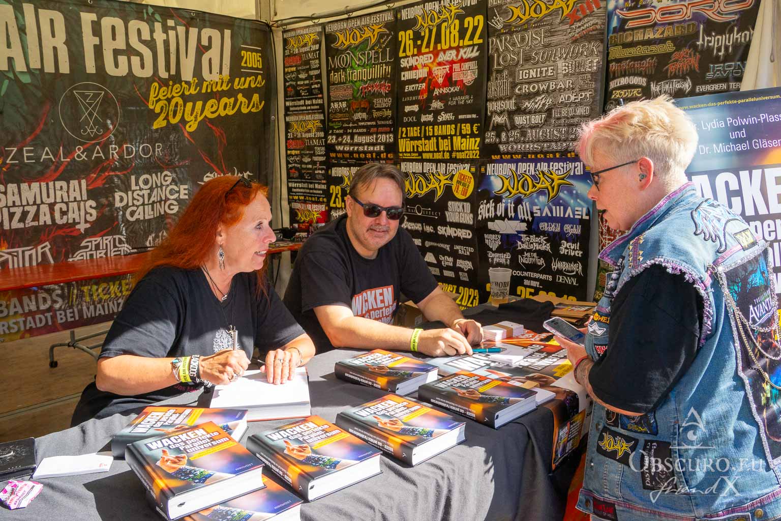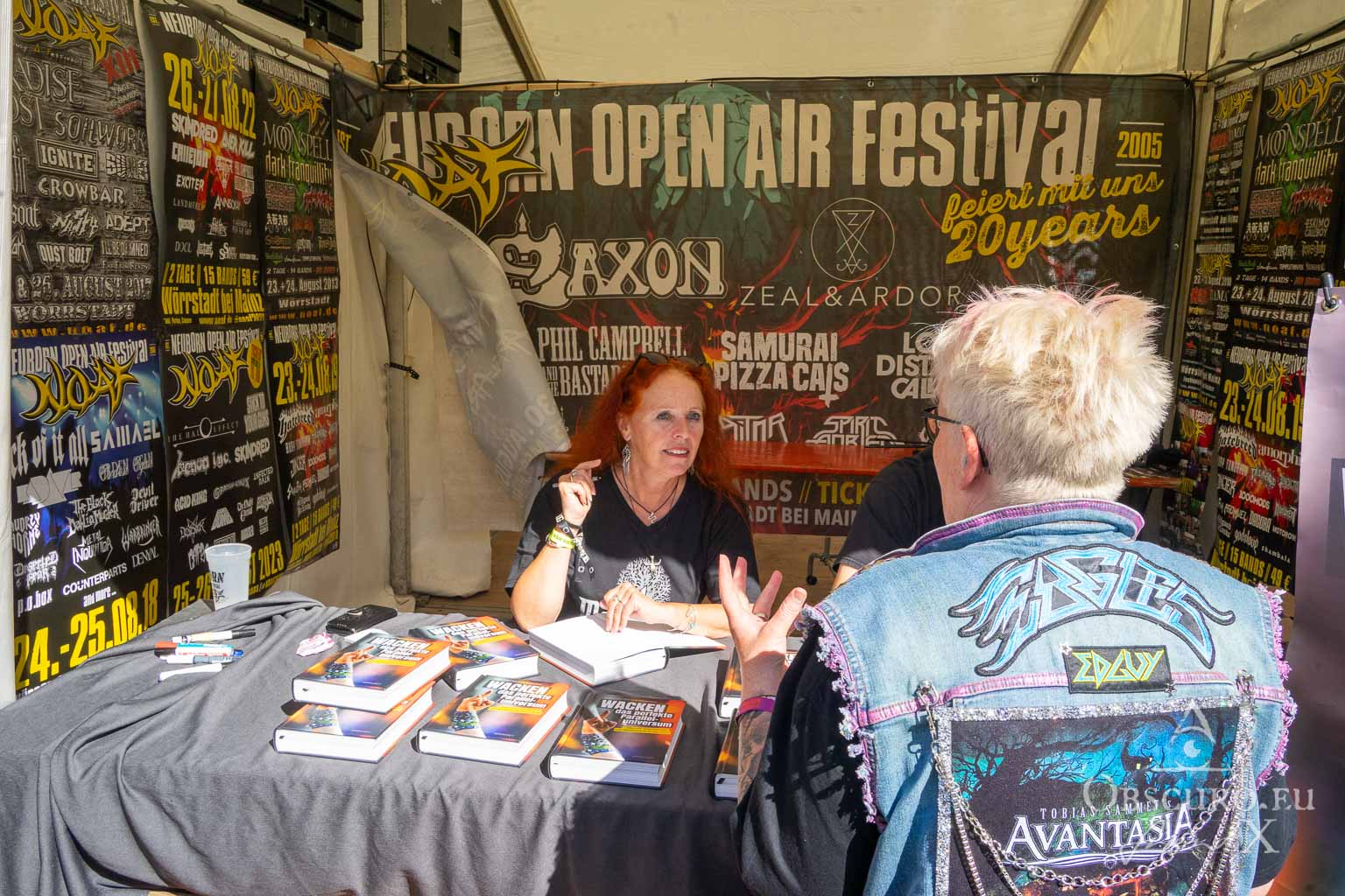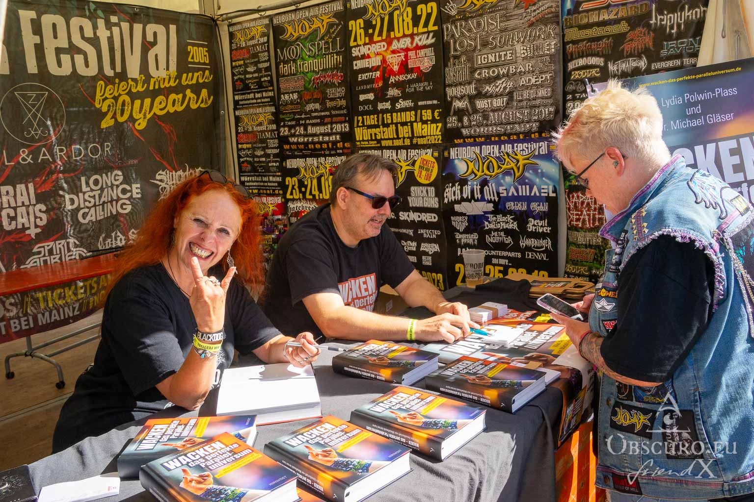 I don’t know how everyone slept in their tents and caravans, but I had a very comfortable and warm night at home with a proper shower and breakfast before making my way back to the infield. Unfortunately, I’m missing the fantastic author reading of the book “Wacken – das perfekte Paralleluniversum” (Wacken – the perfect parallel universe) by Lydia Polwin-Plass of Metalogy and Michael Gläser, but I’ll be meeting them both later at the signing stall.