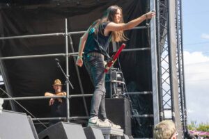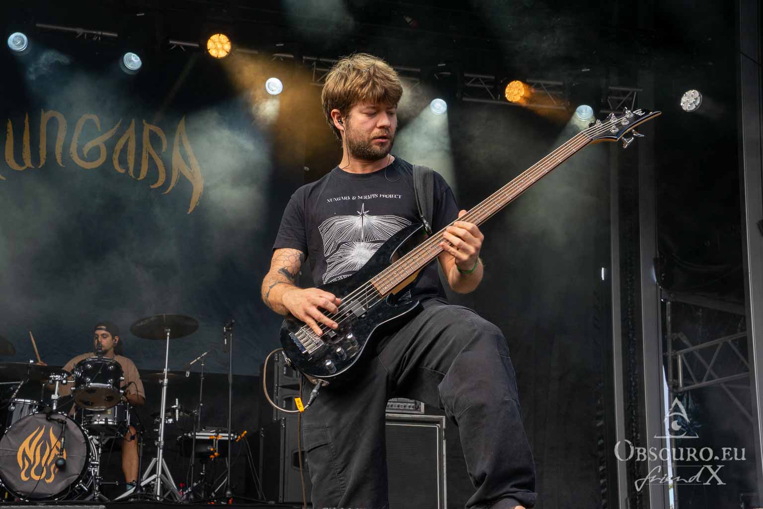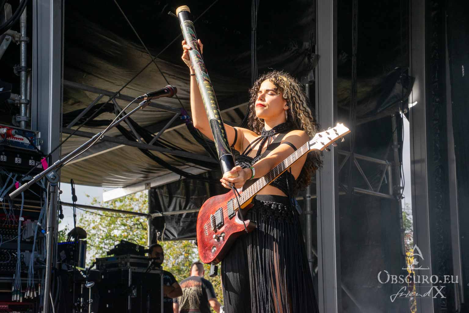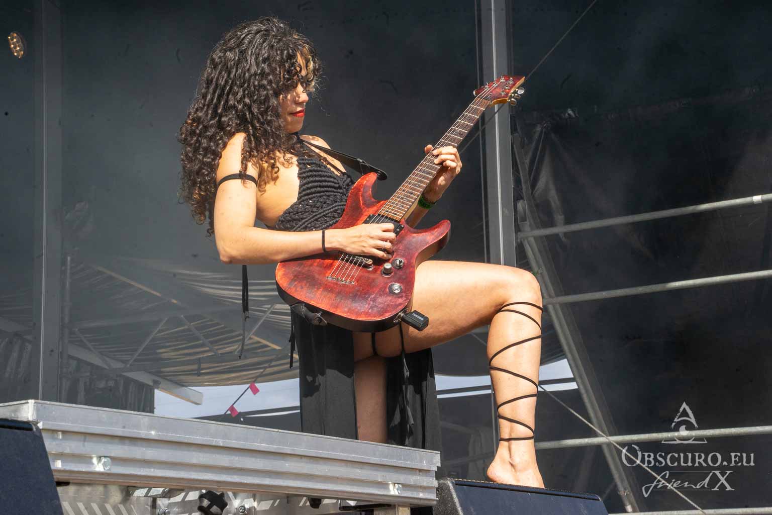 We catch up with an old acquaintance while Nungara prepare for their show. Their vocalist and guitarist, Noelle dos Anjos, was previously one of the two guitarists in Cobra Spell. Nungara are a Brazilian/German power trio who perform an excellent set of dark groove metal with slight progressive and doom metal influences. Noelle’s performance as a vocalist is excellent, ranging from bittersweet clean vocals to harsh growls. It seems that she was underchallenged in her former band. Well done, Nungara!