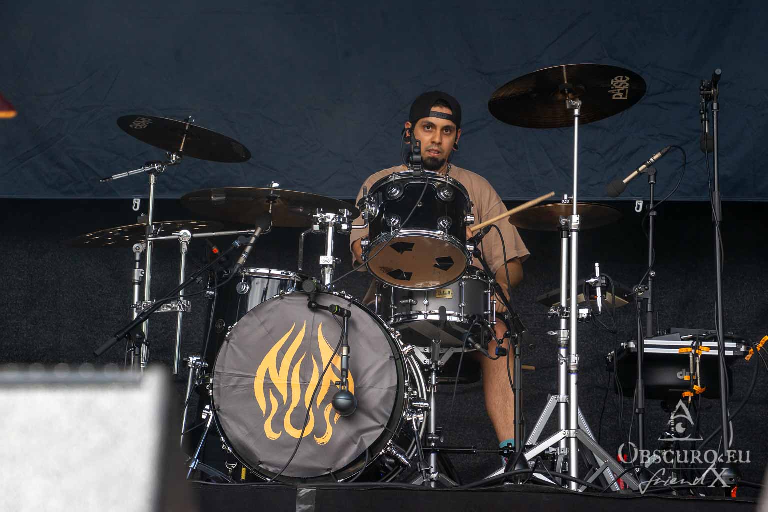 Cold Snap had a slightly longer journey. They are from Croatia, a popular destination for German summer holidays. This doesn’t mean they are a traditional folkloric band, but they got us grooving through the early afternoon. However, to classify them as Groove Metal only would be wrong. Their songs are characterised by erratic changes in rhythm and style within a few seconds. Whether you like it or not, it is certainly very impressive, and their technical skills are undeniable.