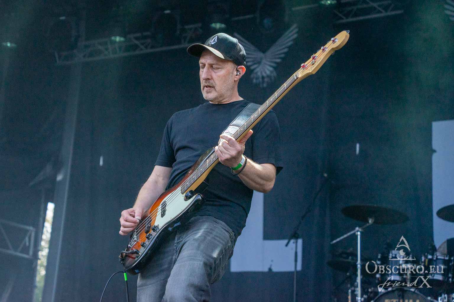 The queue is very long, so it’s no surprise that not everyone is ready for Long Distance Calling from Germany. Their instrumental post- and prog-rock convinces latecomers to join the audience as quickly as possible. It’s impressive how powerful a show without a vocalist can be, how much the audience adores the music, and how high the mood can go – if there were one at an open-air festival.