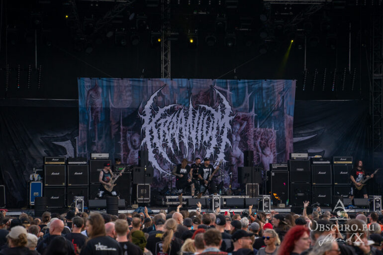 Vltimas were my first highlight of the day. They are a multinational combo with a unique Nordic Death Metal sound, added to by David Vincent’s (former Morbid Angel) iconic voice and some theatrical show elements, well done.