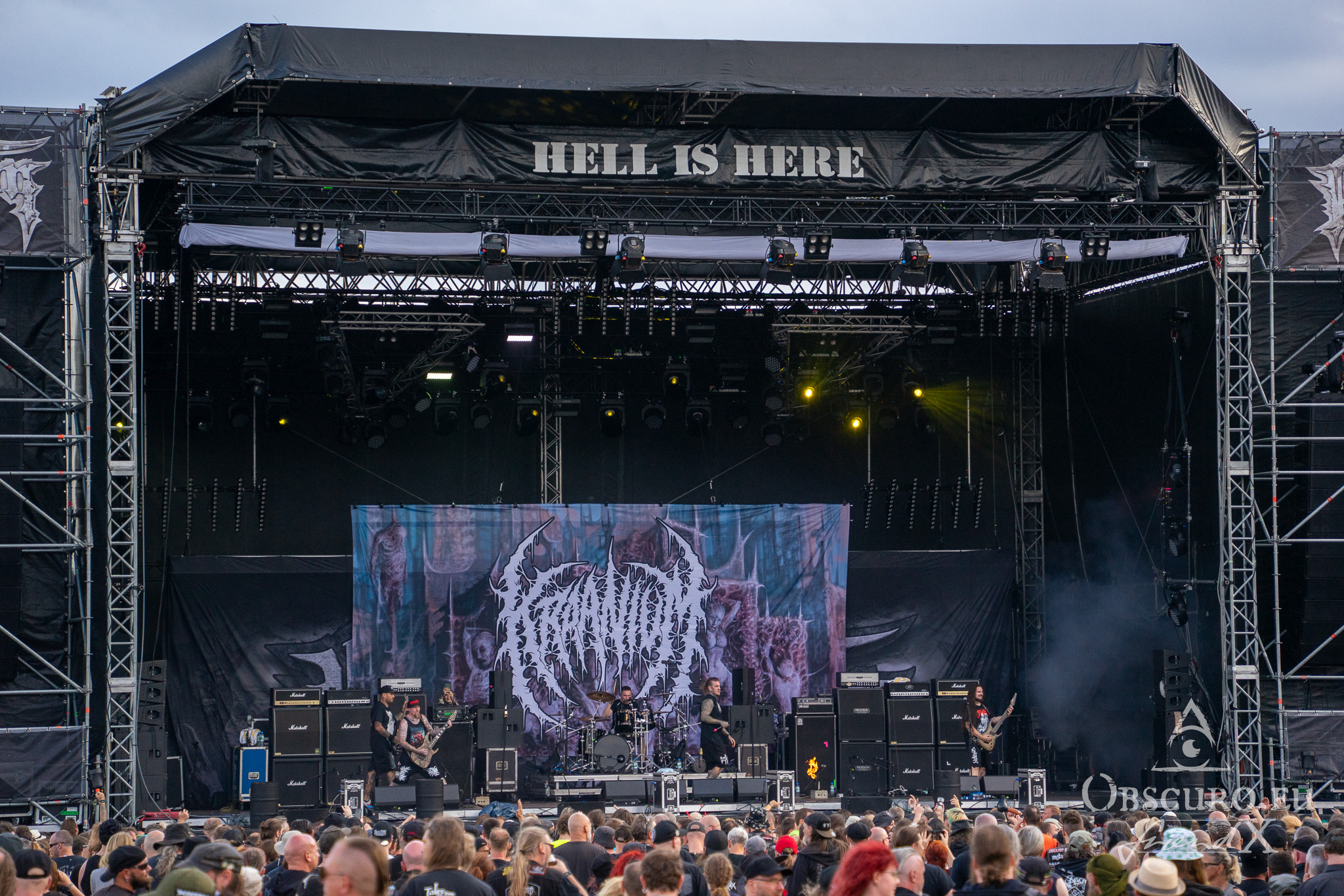 I nearly missed Kraanium who slammed a wonderful set of Brutal Death Metal due to a short visit to our campsite for some food. I luckily enjoyed the second half of their set from the distance and was ready for the Tent Stage. Nervo Chaos was the band I wanted to watch there, and I wasn’t disappointed by the musicians from Brazil who performed a very skillful Death Metal set. Brazil seems to be a good country for metal in general, thinking of bands like Nervosa, Crypta or Sepultura.