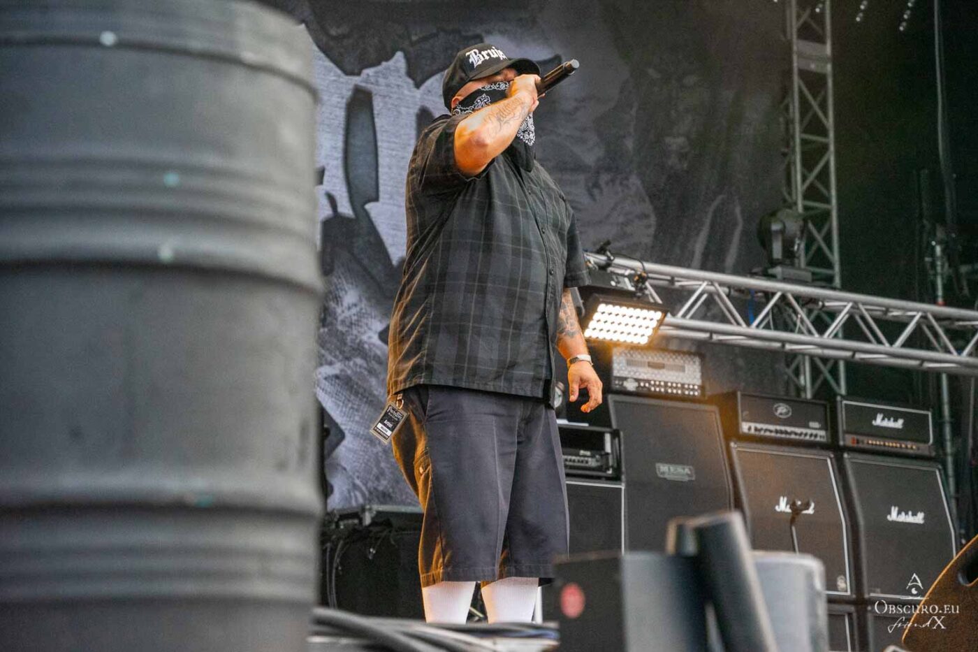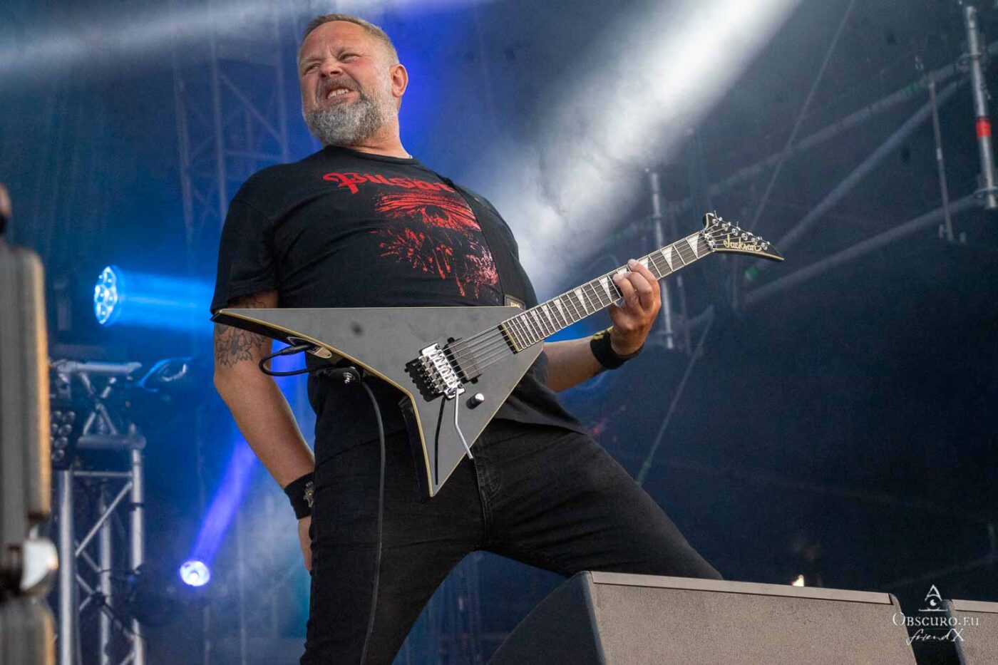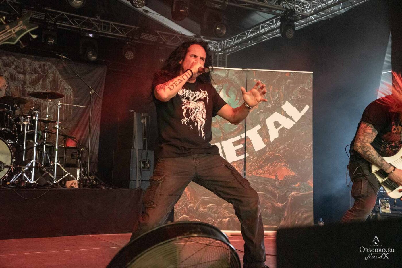 Now it was the time for the Grindcore legends NAPALM DEATH to take the main stage and get the crowd raging. Singer Barney seemed to have an infinite storage of energy, always on the move on the stage and using the breaks for in-depth criticism of today’s society. After a Dead Kennedy’s cover, they passed on the stage to Bay Area Thrashers DARK ANGEL who had their premiere at P.S.O.A. with the headliner slot. The death of their guitarist Jimmy Durkin in 2023 still seemed to weigh hard on them as singer Ron Rinehart dedicated several songs to his memory. And then the first day ended with the Metal Disco for those who still had some reserves and energy left over.
