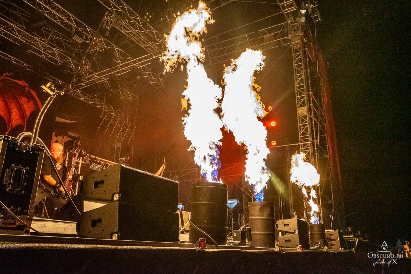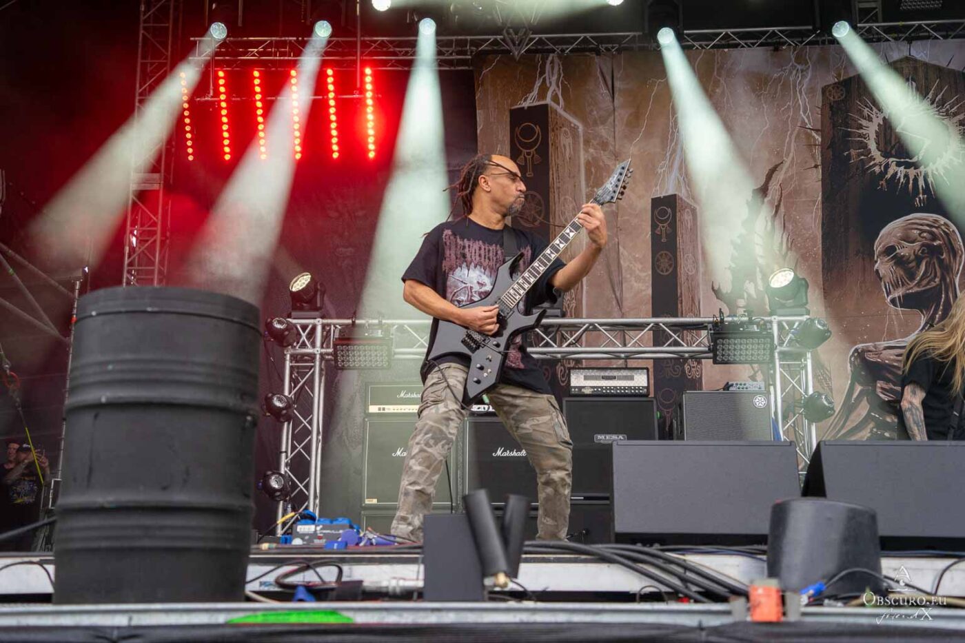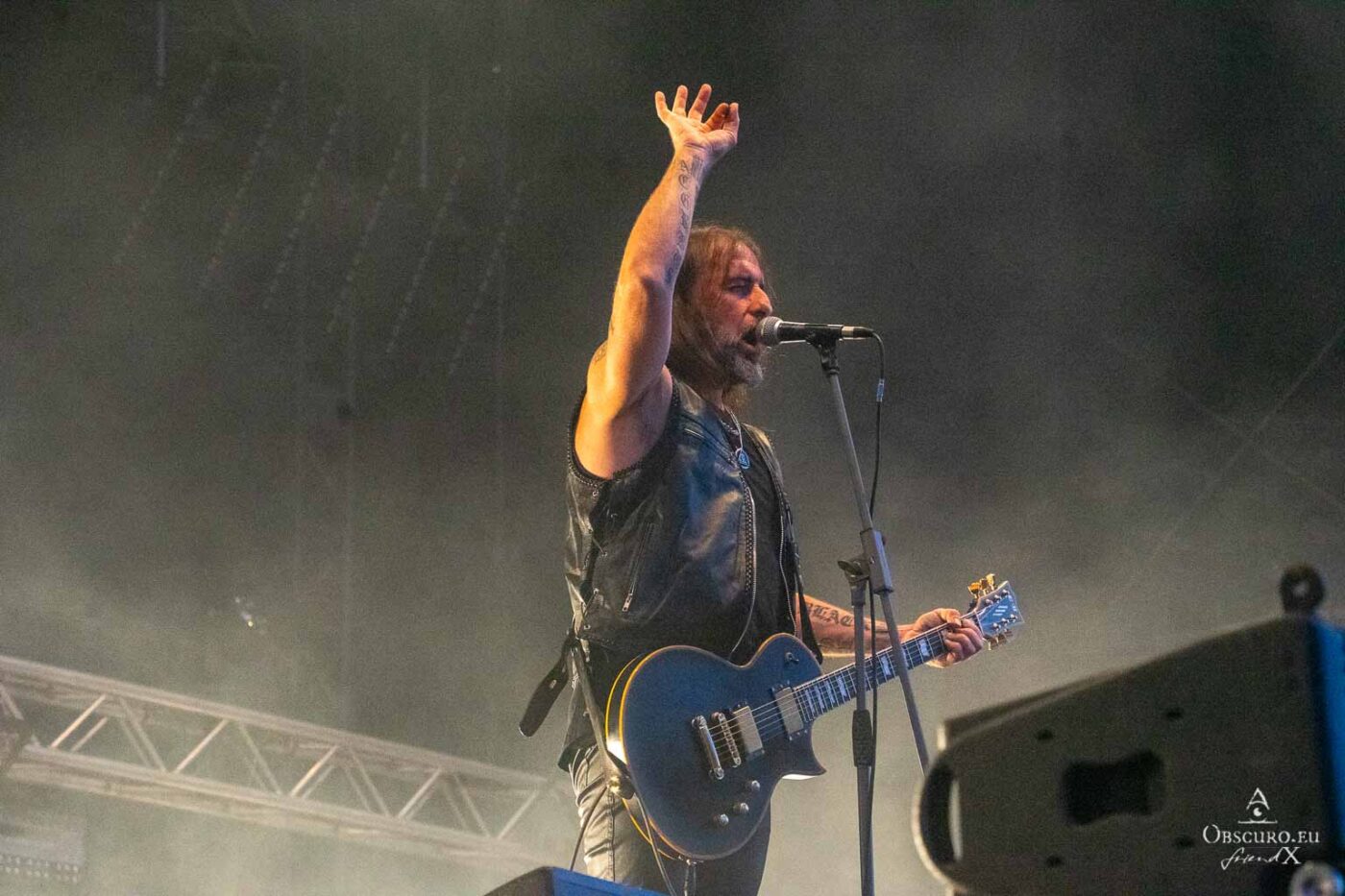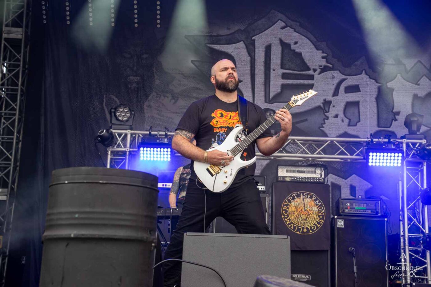 Now it was the time for the Grindcore legends NAPALM DEATH to take the main stage and get the crowd raging. Singer Barney seemed to have an infinite storage of energy, always on the move on the stage and using the breaks for in-depth criticism of today’s society. After a Dead Kennedy’s cover, they passed on the stage to Bay Area Thrashers DARK ANGEL who had their premiere at P.S.O.A. with the headliner slot. The death of their guitarist Jimmy Durkin in 2023 still seemed to weigh hard on them as singer Ron Rinehart dedicated several songs to his memory. And then the first day ended with the Metal Disco for those who still had some reserves and energy left over.