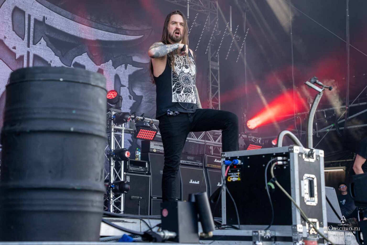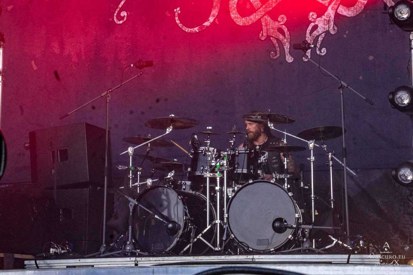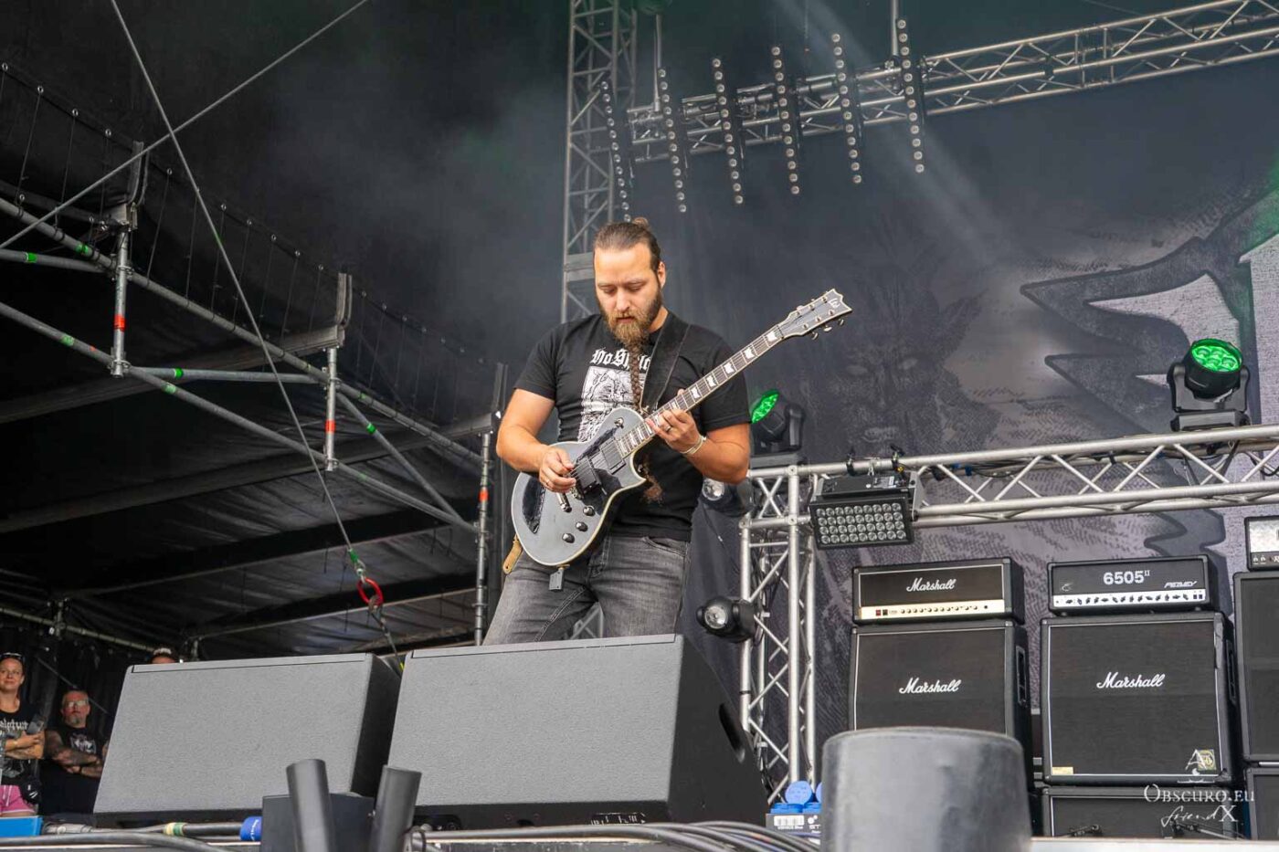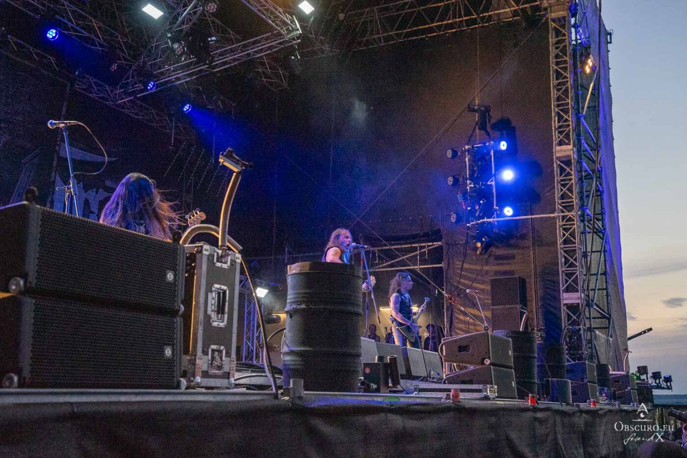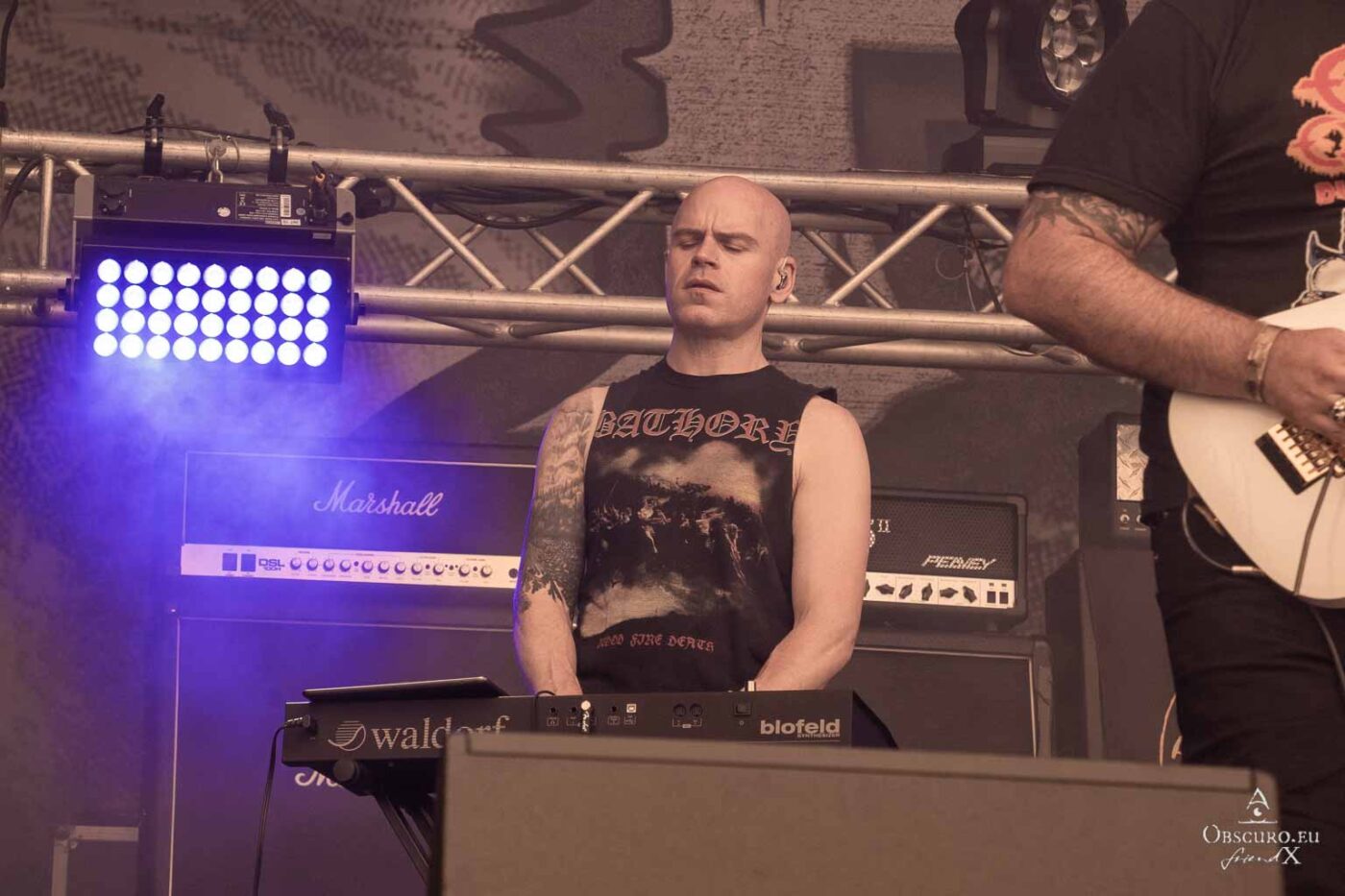 And then German-Swedish ROTPIT got the party(san) started with their old school Swedish Death Metal. It didn’t take them long to get the audience banging their heads to songs whose texts all somehow amazingly included the word “rot”. They passed on the stage to Belarusian EXTERMINATION DISMEMBERMENT with their brutal Slam Death who got the first Wall of Death of the festival while SERVANT opened the tent stage for the day with corpse-paint and a melodic alternative for the Black Metal fans around, being the first of seven AOP Records label bands. …AND OCEANS were the next gig on the main stage playing a mixture of high-quality Symphonic and Black Metal. You could hear their long year experience. This Black Metal block was continued by Brasilian OUTLAW on the tent stage.