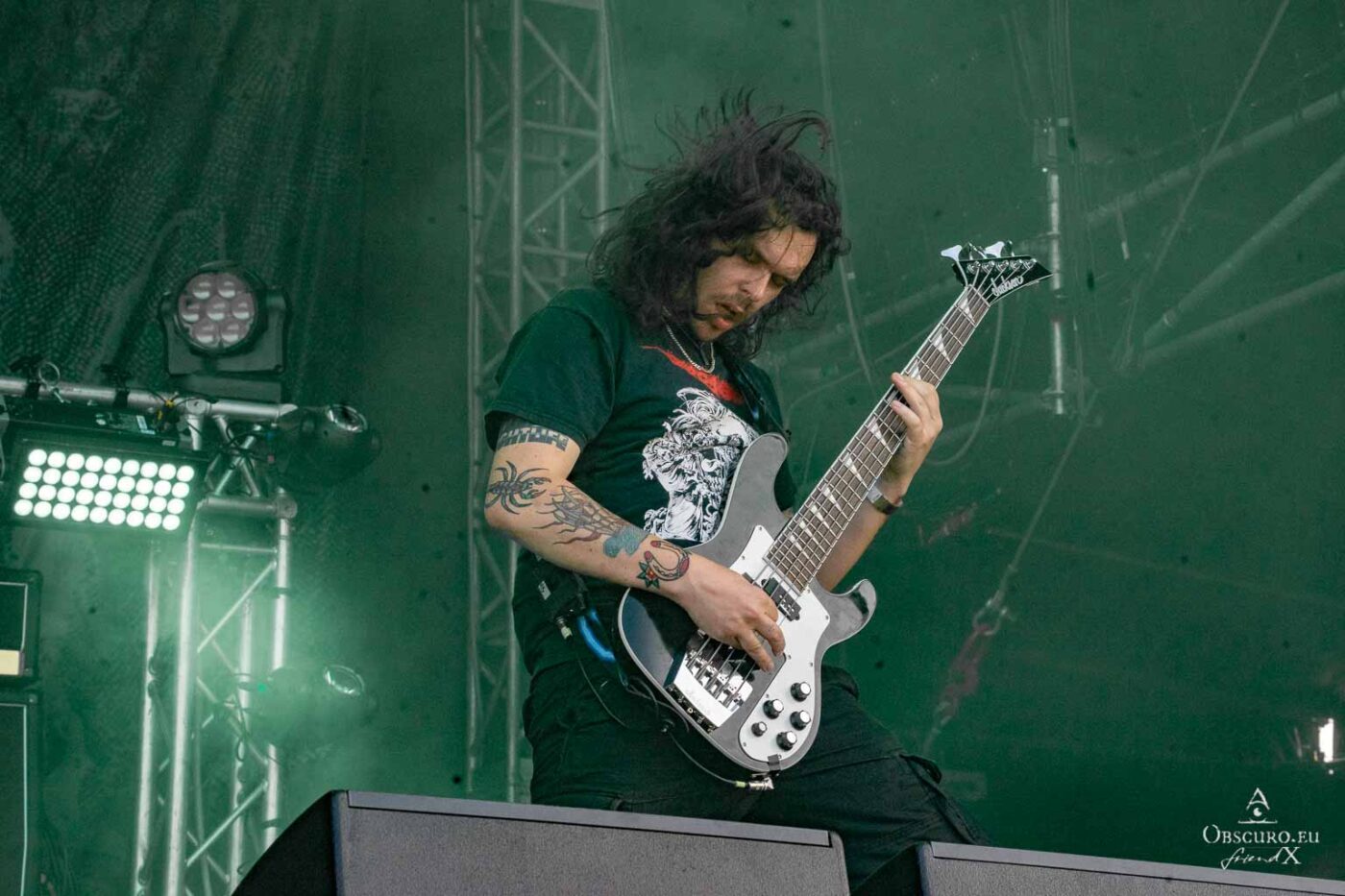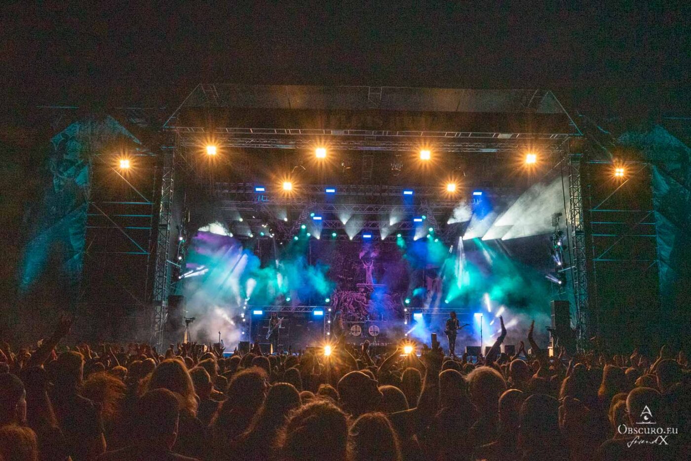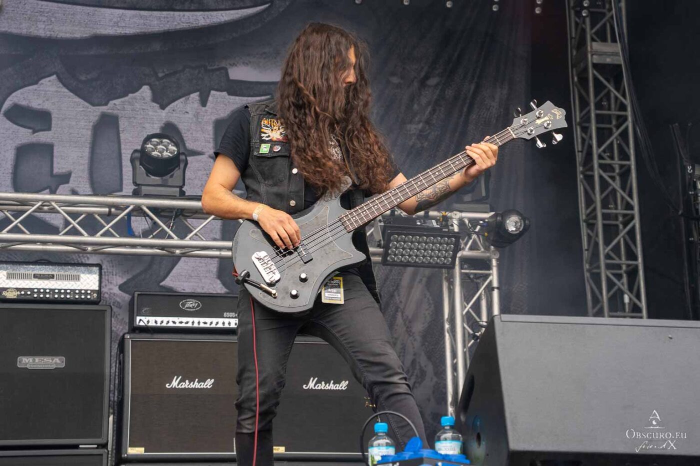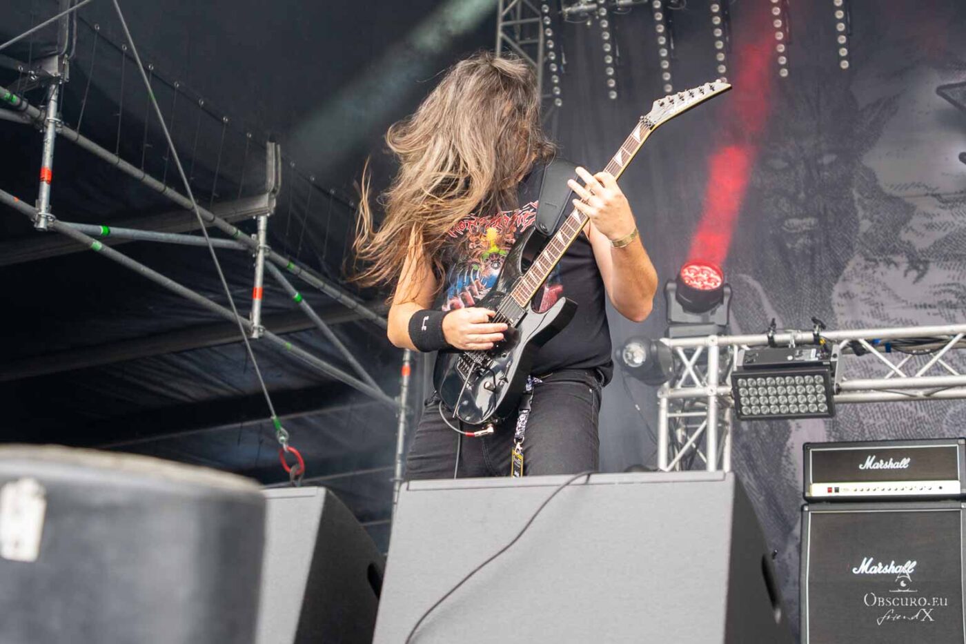 And then German-Swedish ROTPIT got the party(san) started with their old school Swedish Death Metal. It didn’t take them long to get the audience banging their heads to songs whose texts all somehow amazingly included the word “rot”. They passed on the stage to Belarusian EXTERMINATION DISMEMBERMENT with their brutal Slam Death who got the first Wall of Death of the festival while SERVANT opened the tent stage for the day with corpse-paint and a melodic alternative for the Black Metal fans around, being the first of seven AOP Records label bands. …AND OCEANS were the next gig on the main stage playing a mixture of high-quality Symphonic and Black Metal. You could hear their long year experience. This Black Metal block was continued by Brasilian OUTLAW on the tent stage.