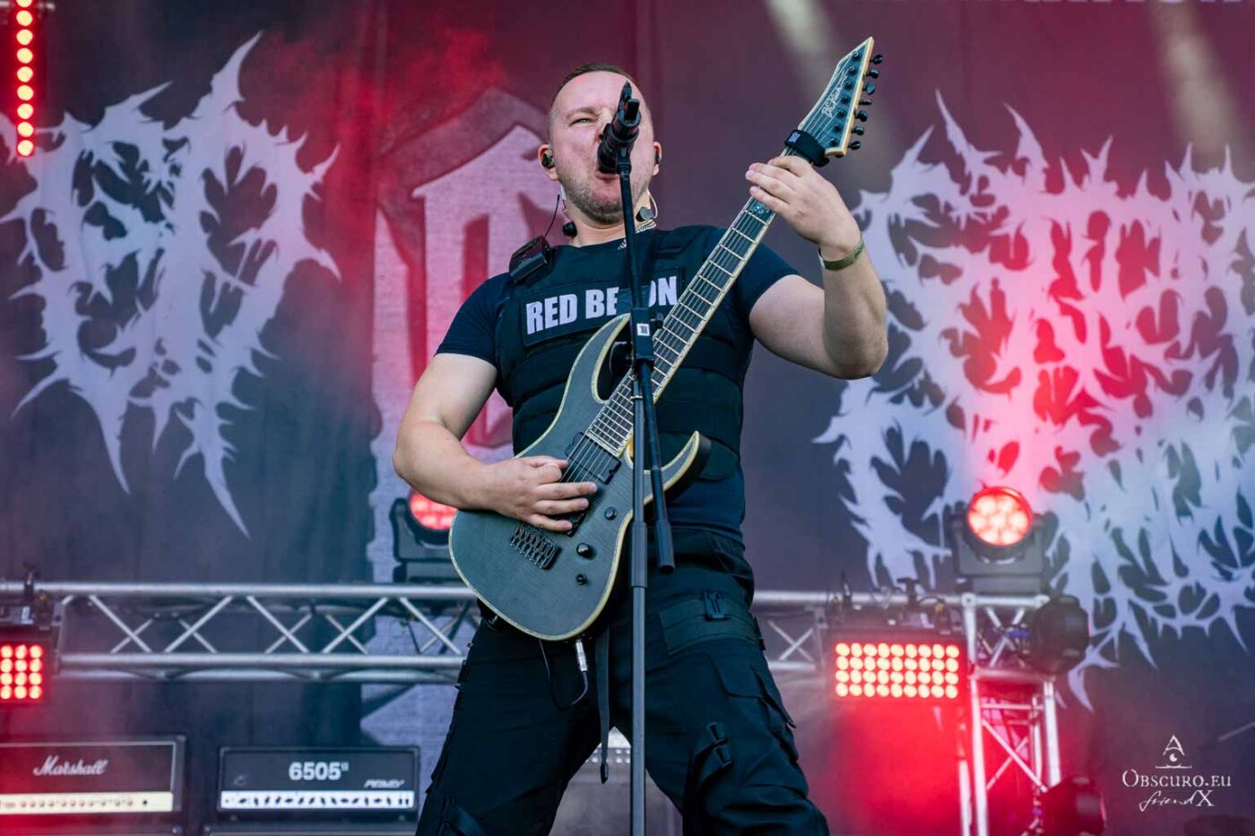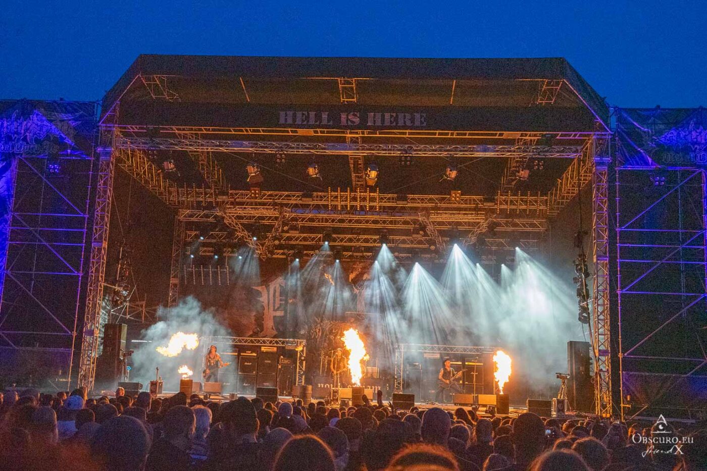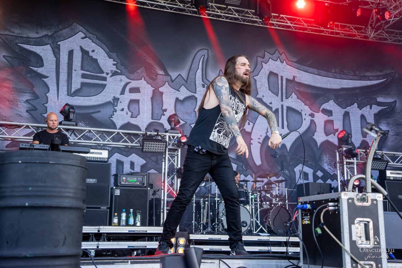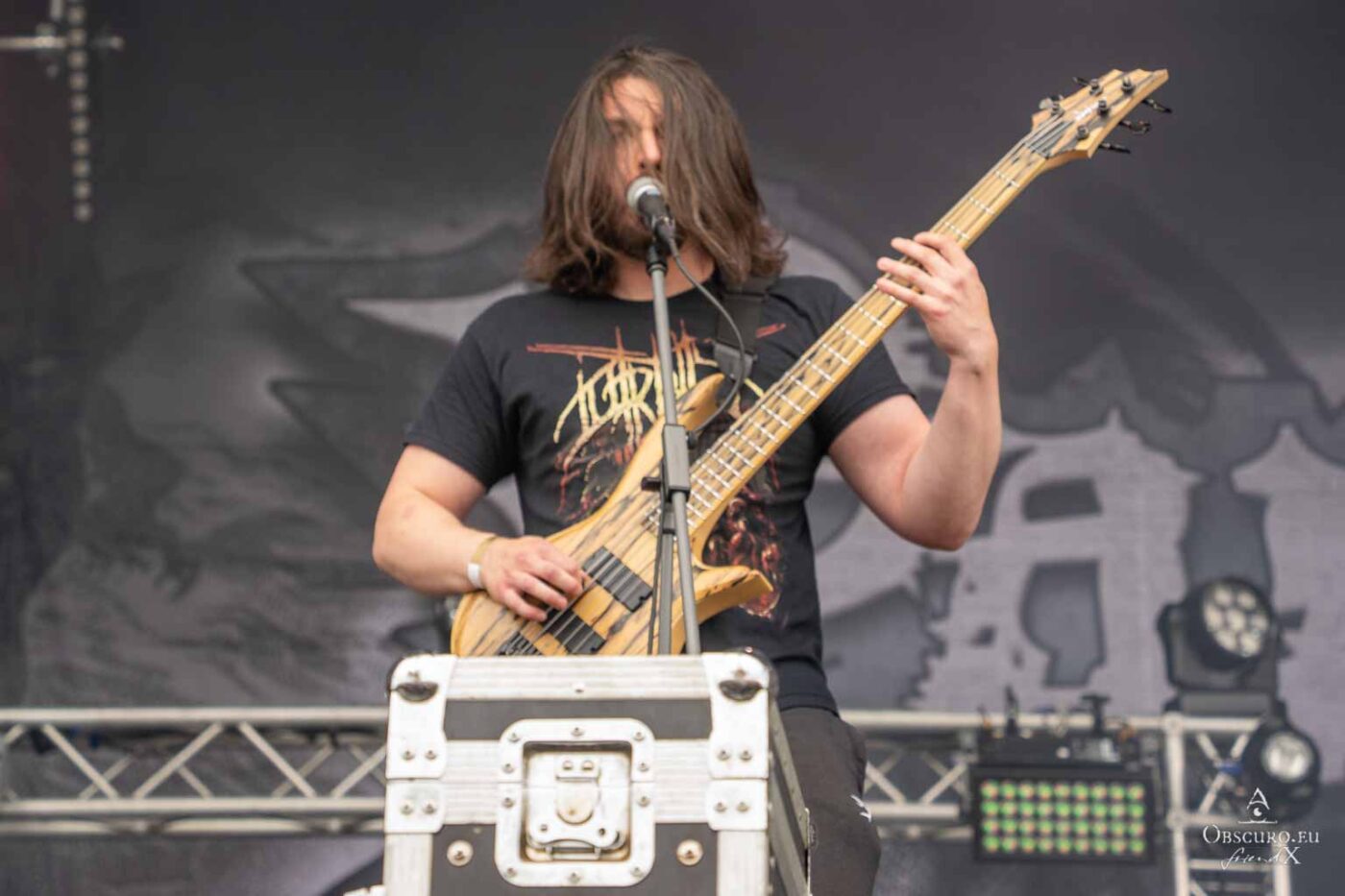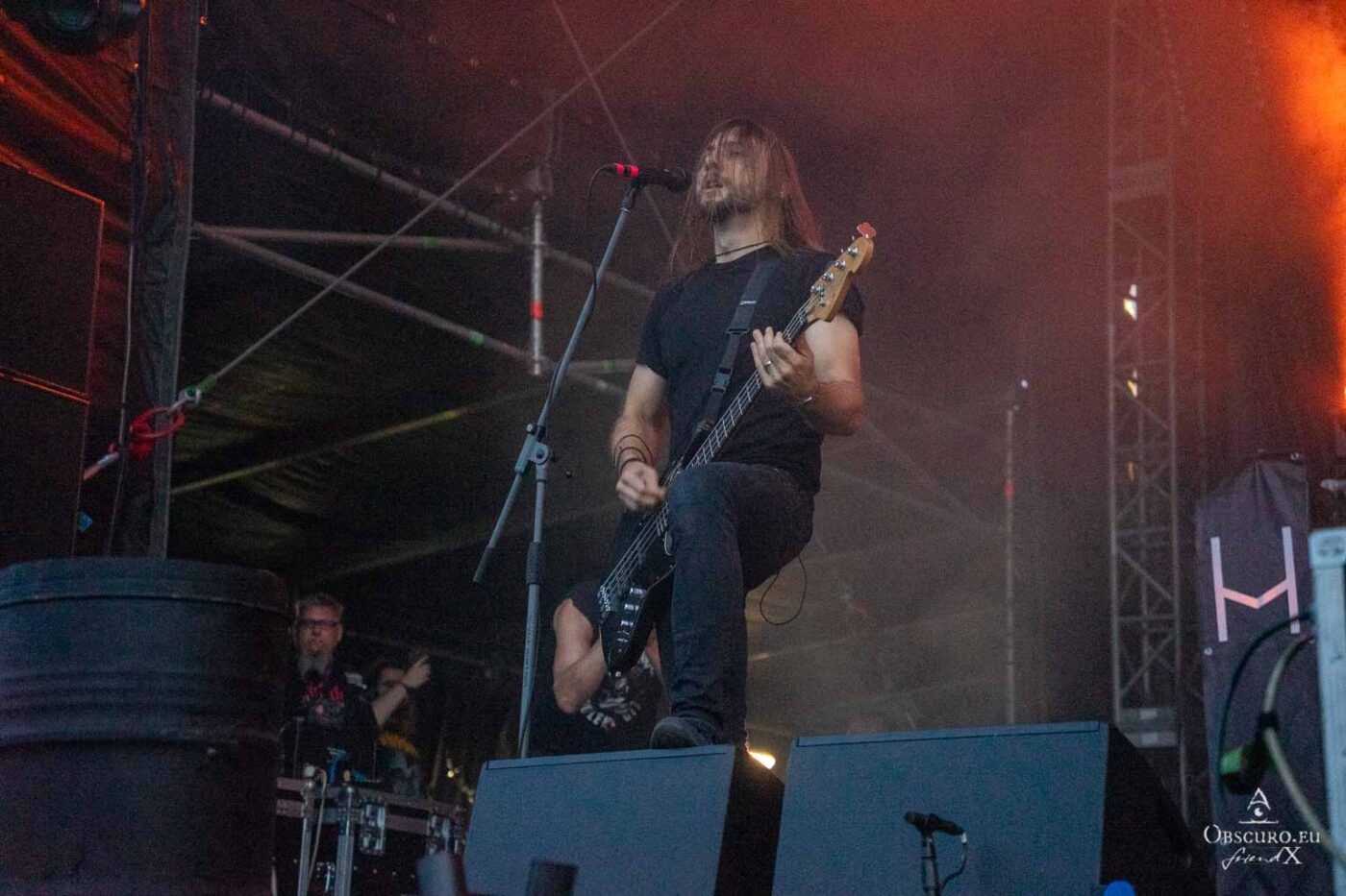 And then German-Swedish ROTPIT got the party(san) started with their old school Swedish Death Metal. It didn’t take them long to get the audience banging their heads to songs whose texts all somehow amazingly included the word “rot”. They passed on the stage to Belarusian EXTERMINATION DISMEMBERMENT with their brutal Slam Death who got the first Wall of Death of the festival while SERVANT opened the tent stage for the day with corpse-paint and a melodic alternative for the Black Metal fans around, being the first of seven AOP Records label bands. …AND OCEANS were the next gig on the main stage playing a mixture of high-quality Symphonic and Black Metal. You could hear their long year experience. This Black Metal block was continued by Brasilian OUTLAW on the tent stage.