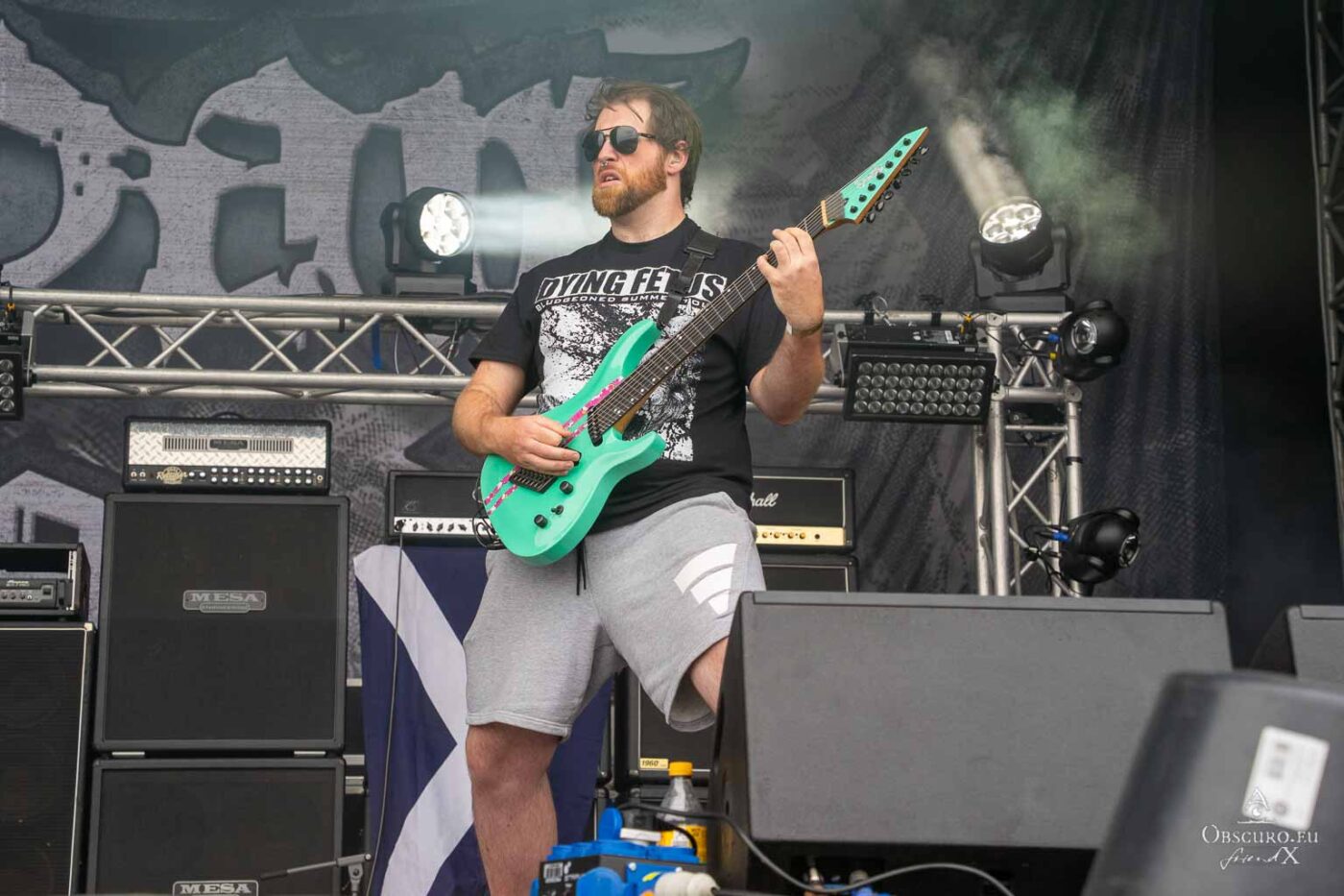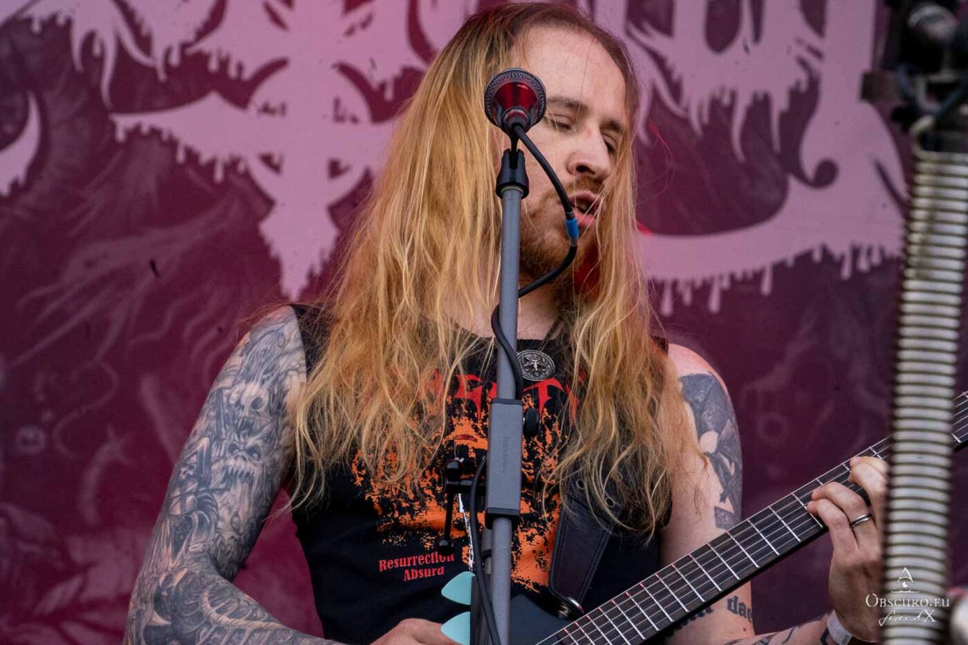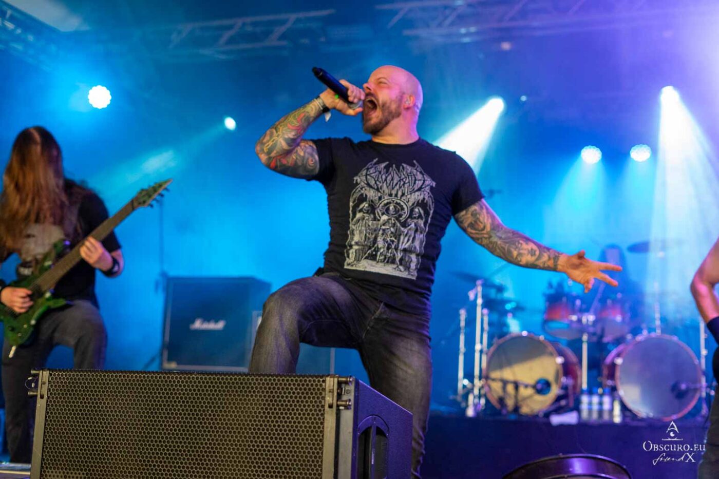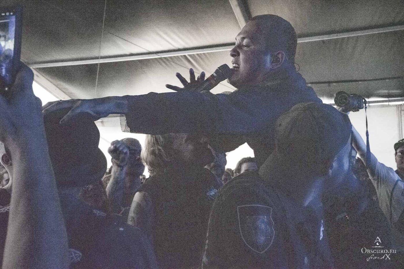And then German-Swedish ROTPIT got the party(san) started with their old school Swedish Death Metal. It didn’t take them long to get the audience banging their heads to songs whose texts all somehow amazingly included the word “rot”. They passed on the stage to Belarusian EXTERMINATION DISMEMBERMENT with their brutal Slam Death who got the first Wall of Death of the festival while SERVANT opened the tent stage for the day with corpse-paint and a melodic alternative for the Black Metal fans around, being the first of seven AOP Records label bands. …AND OCEANS were the next gig on the main stage playing a mixture of high-quality Symphonic and Black Metal. You could hear their long year experience. This Black Metal block was continued by Brasilian OUTLAW on the tent stage.