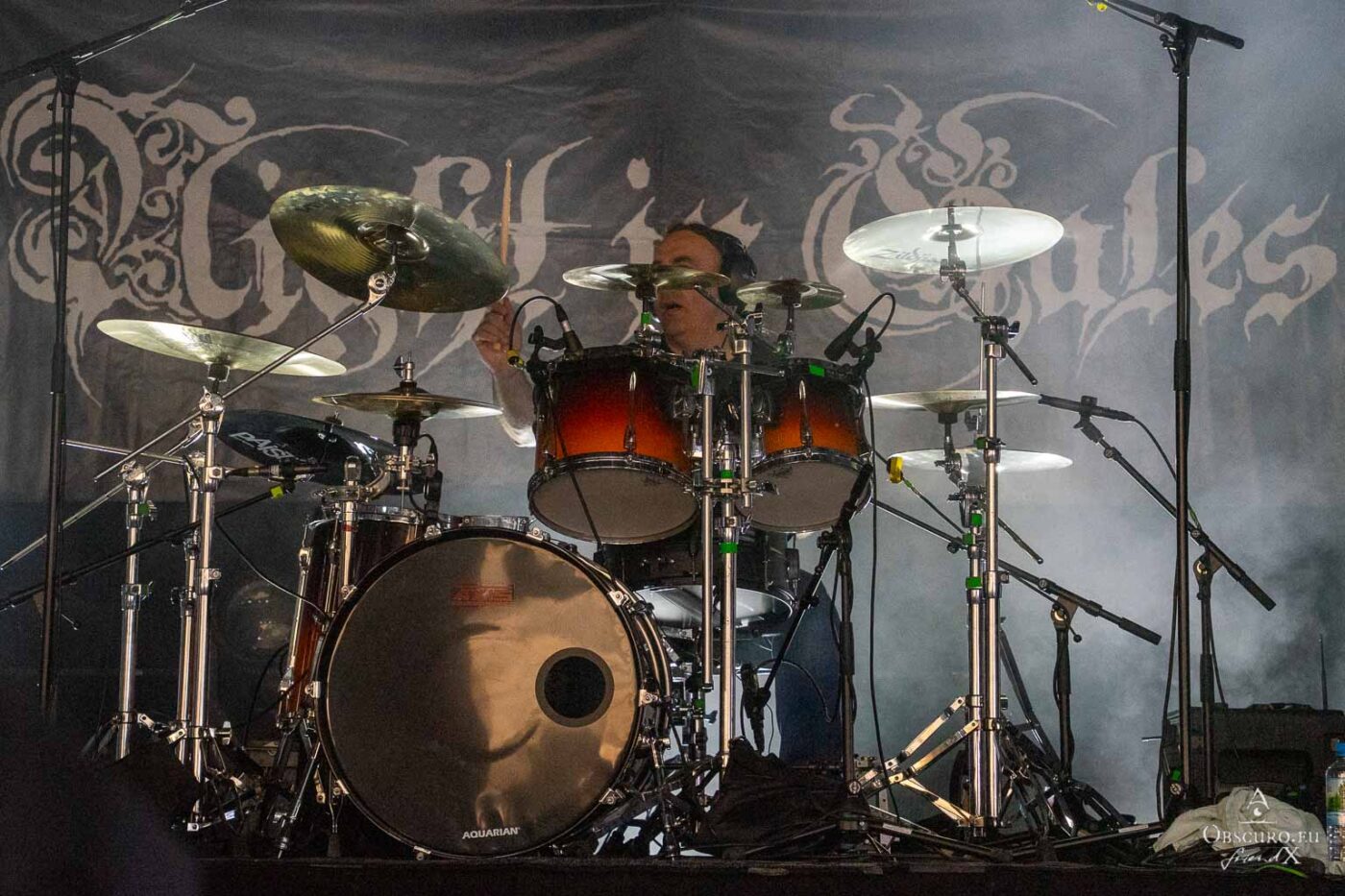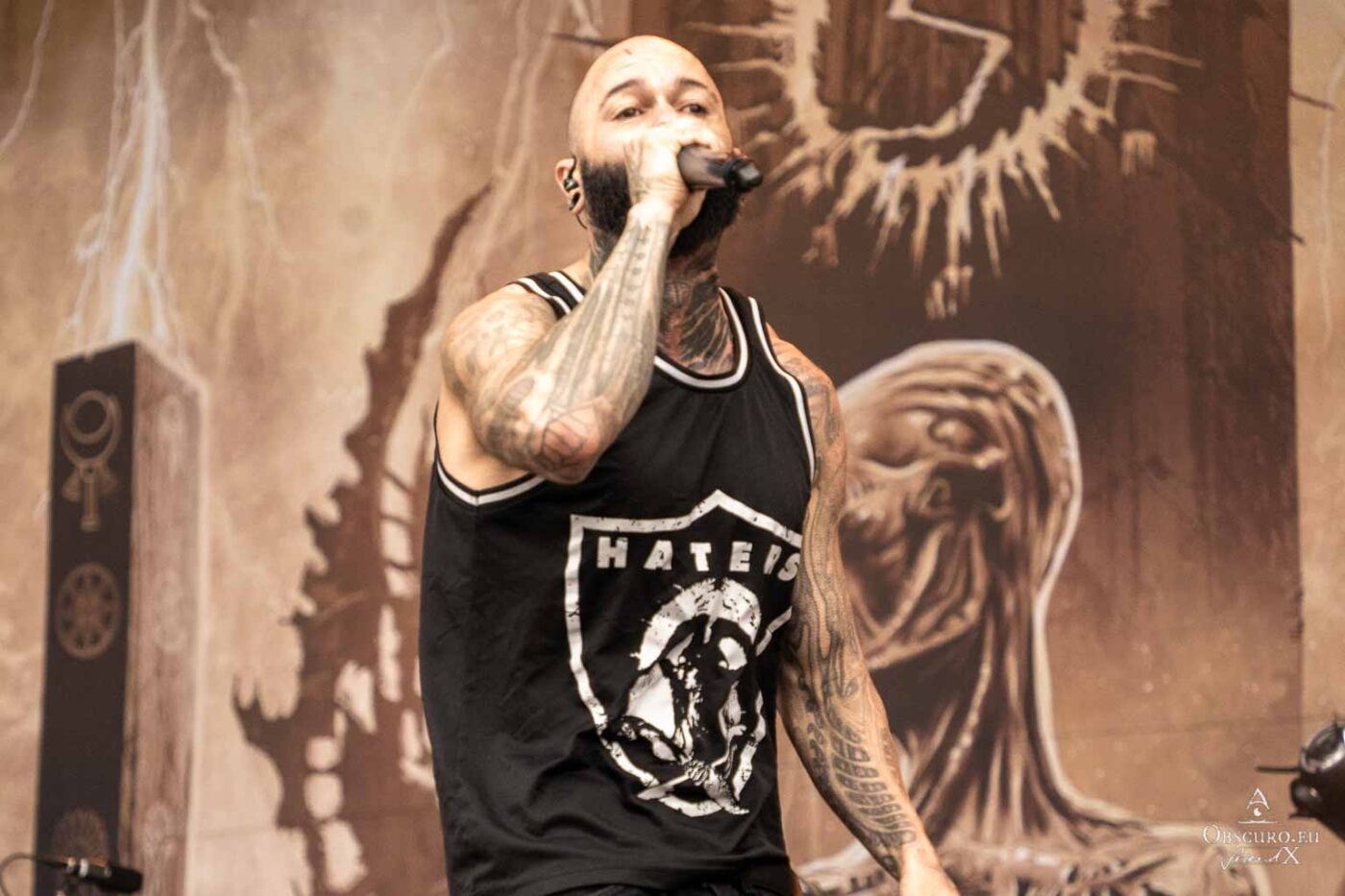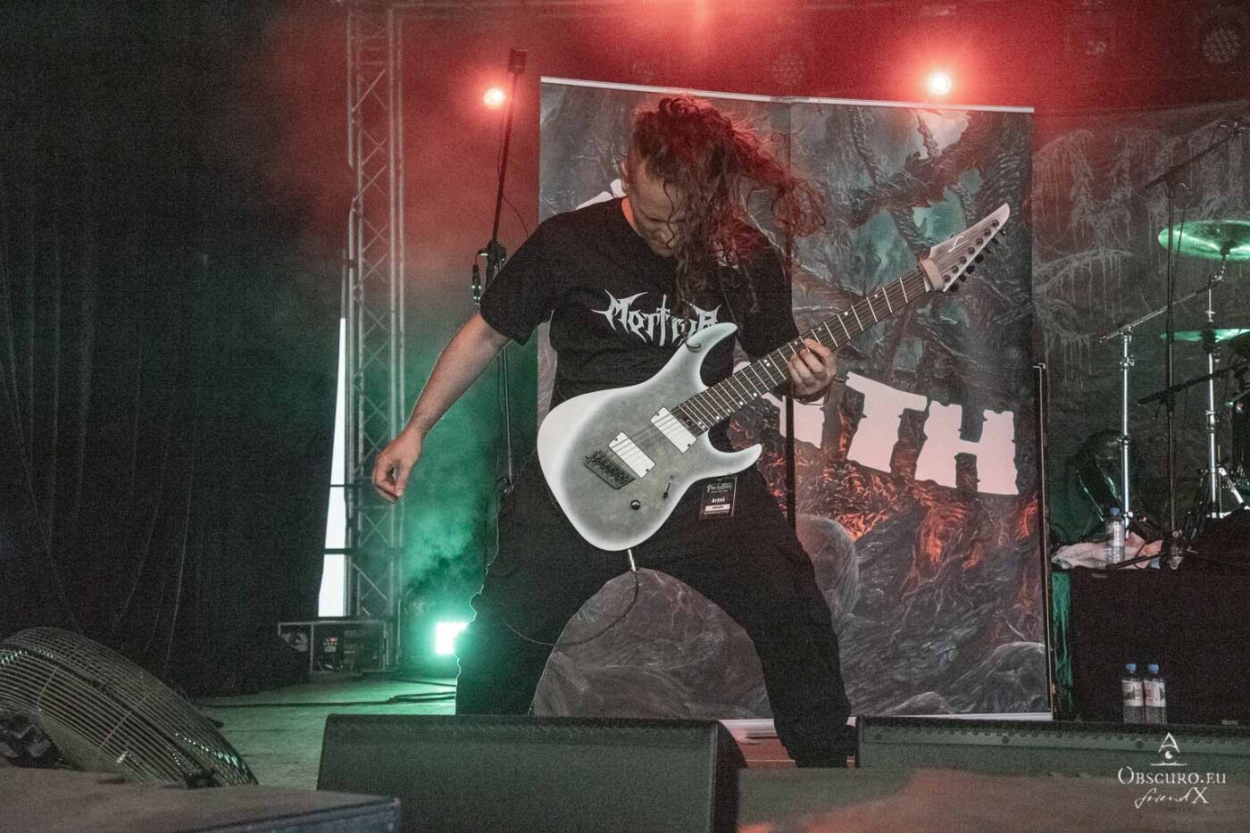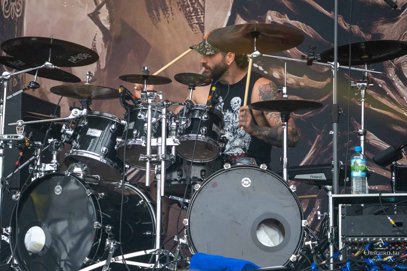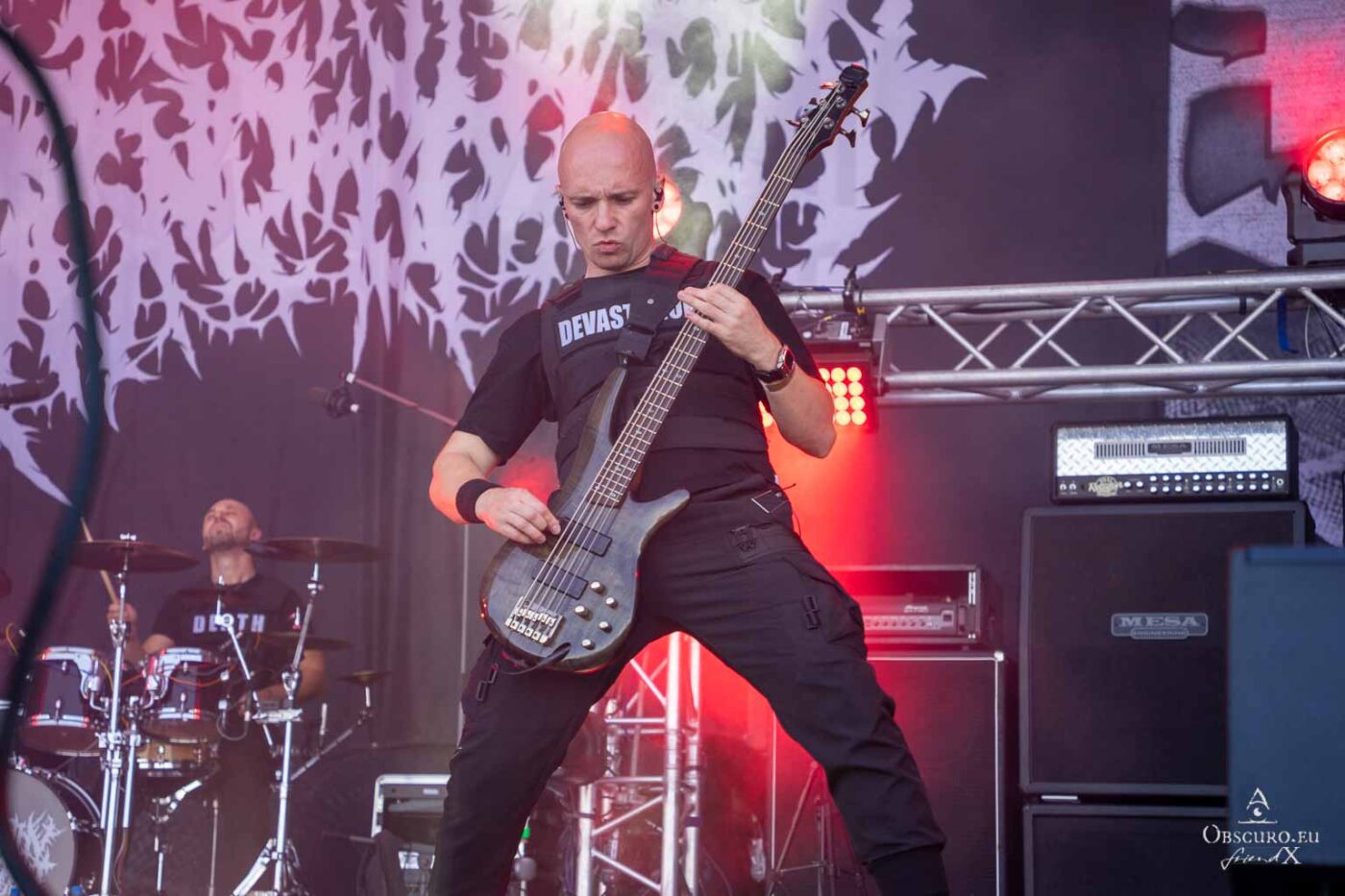And then German-Swedish ROTPIT got the party(san) started with their old school Swedish Death Metal. It didn’t take them long to get the audience banging their heads to songs whose texts all somehow amazingly included the word “rot”. They passed on the stage to Belarusian EXTERMINATION DISMEMBERMENT with their brutal Slam Death who got the first Wall of Death of the festival while SERVANT opened the tent stage for the day with corpse-paint and a melodic alternative for the Black Metal fans around, being the first of seven AOP Records label bands. …AND OCEANS were the next gig on the main stage playing a mixture of high-quality Symphonic and Black Metal. You could hear their long year experience. This Black Metal block was continued by Brasilian OUTLAW on the tent stage.