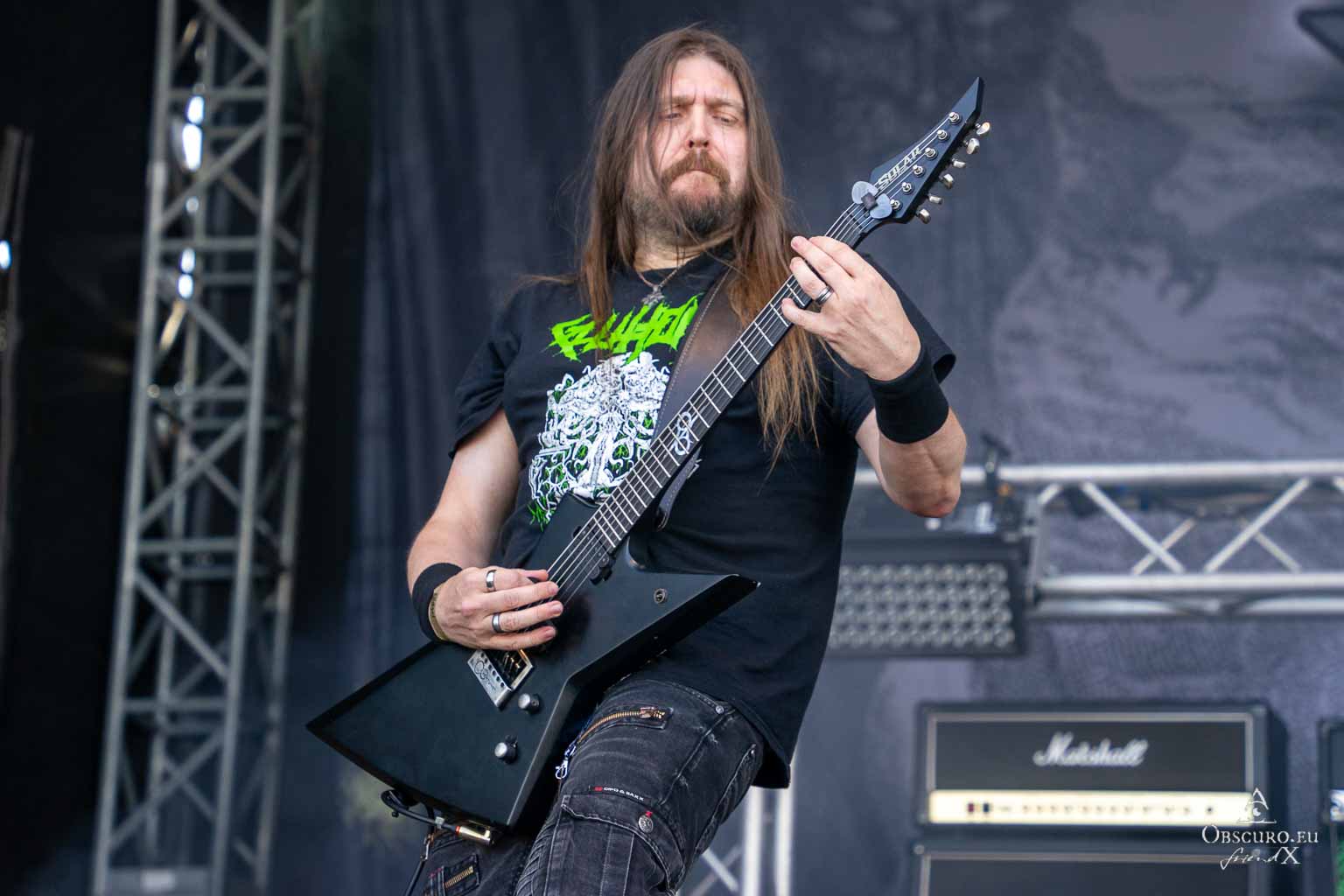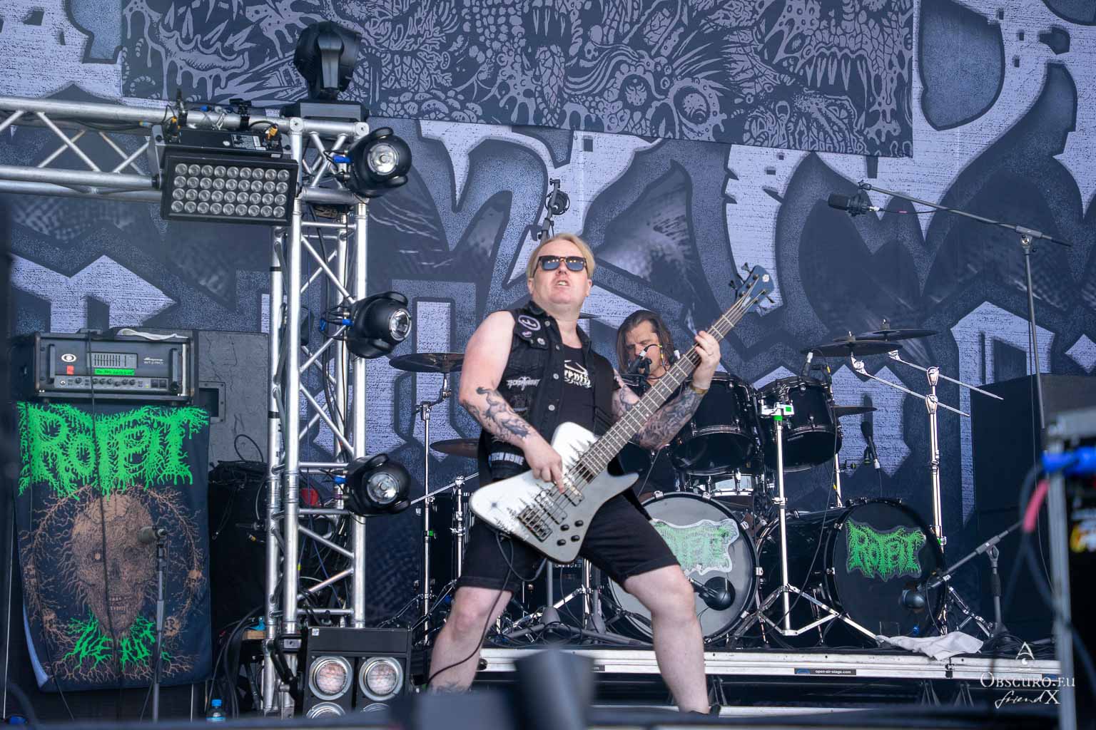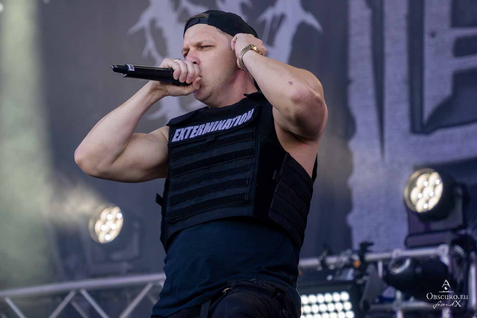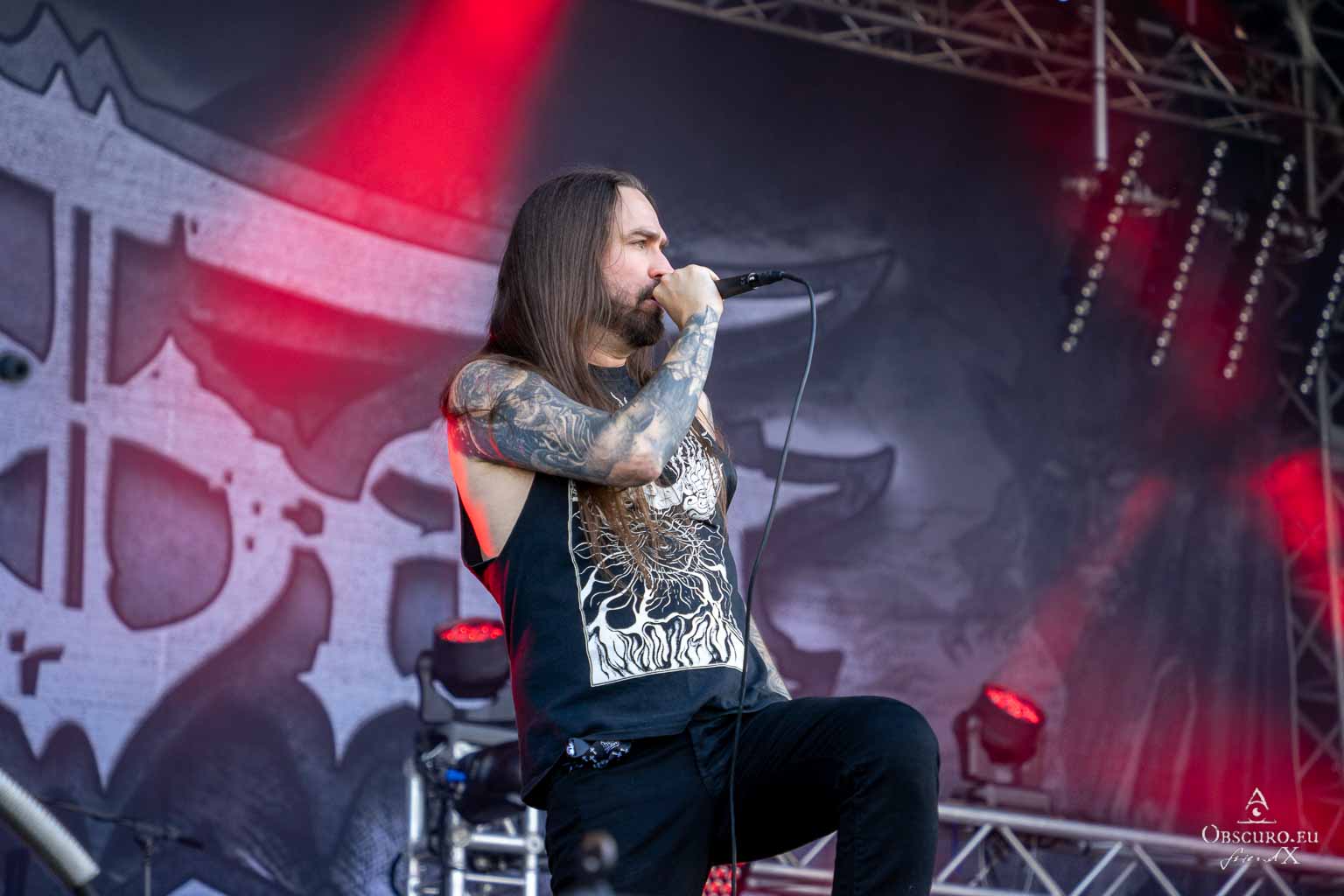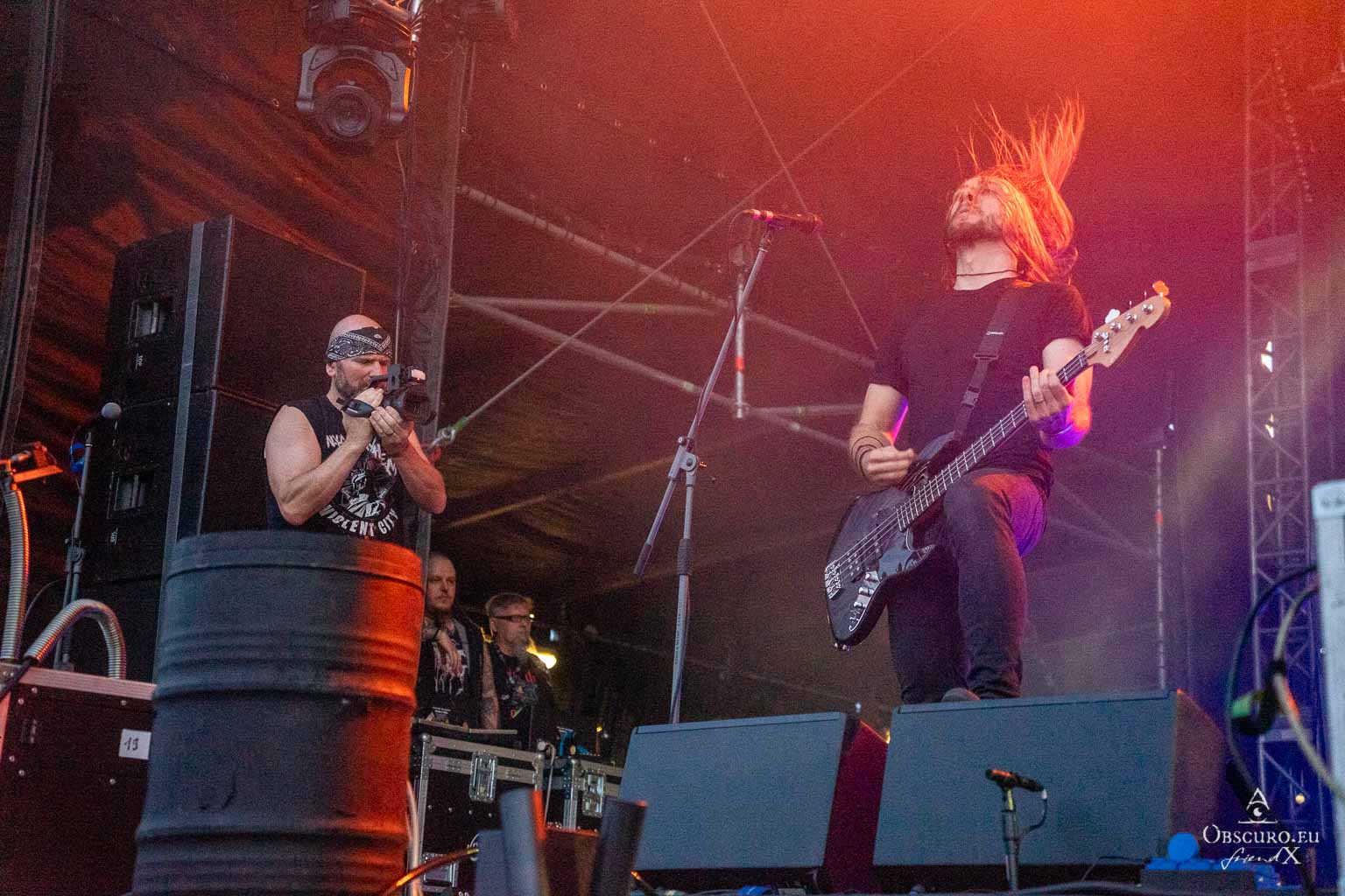 And then German-Swedish ROTPIT got the party(san) started with their old school Swedish Death Metal. It didn’t take them long to get the audience banging their heads to songs whose texts all somehow amazingly included the word “rot”. They passed on the stage to Belarusian EXTERMINATION DISMEMBERMENT with their brutal Slam Death who got the first Wall of Death of the festival while SERVANT opened the tent stage for the day with corpse-paint and a melodic alternative for the Black Metal fans around, being the first of seven AOP Records label bands. …AND OCEANS were the next gig on the main stage playing a mixture of high-quality Symphonic and Black Metal. You could hear their long year experience. This Black Metal block was continued by Brasilian OUTLAW on the tent stage.