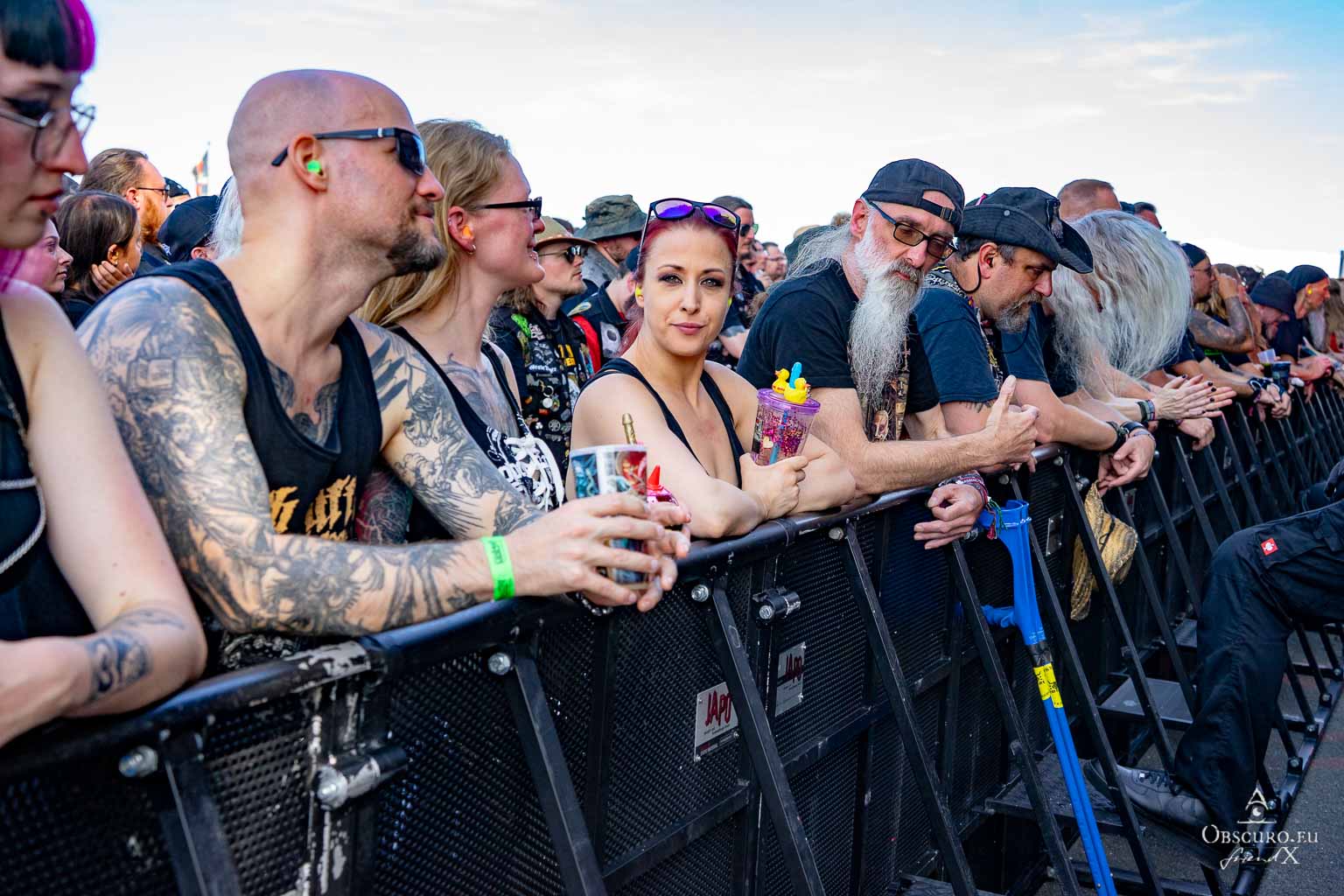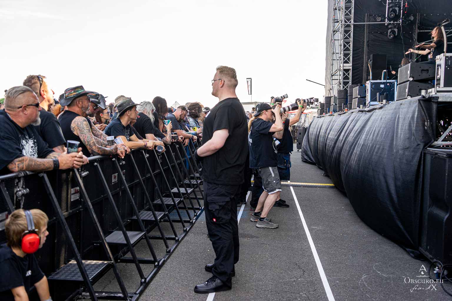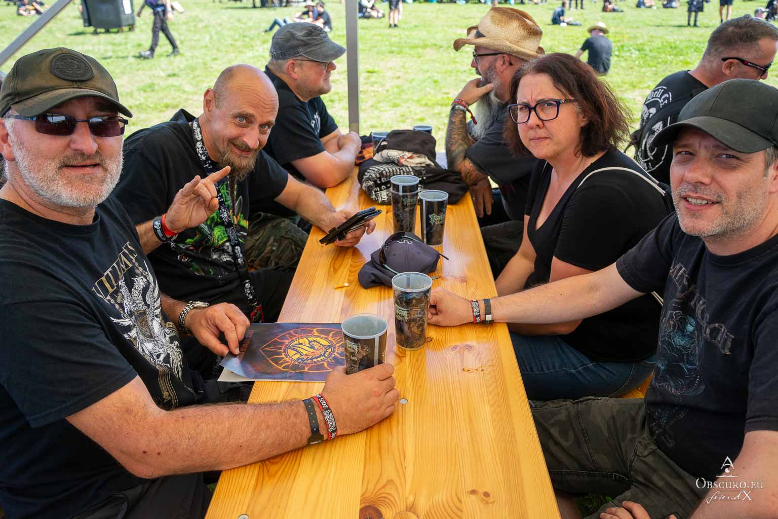 We used the time to ask some fans about their reasons for coming to P.S.O.A and their expectations for the upcoming days. People who had come here for a couple of years highly appreciate the size, the choice of bands and the local and family-like character of the festival. The short ways from the tent ground to the infield and especially that there are no unnecessary gimmicks like ferris wheels, make it special compared to some other bigger festivals. P.S.O.A is just about metal. Later we found some really nice, a bit older, first-timers who came here from France to enjoy metal, finding new bands and because they had been tipped off by friends. Another reason for them to come here was to find out if the festival was also fit for people with handicaps. We met them again a few days later and they told us that their expectations had been fully met by the management.