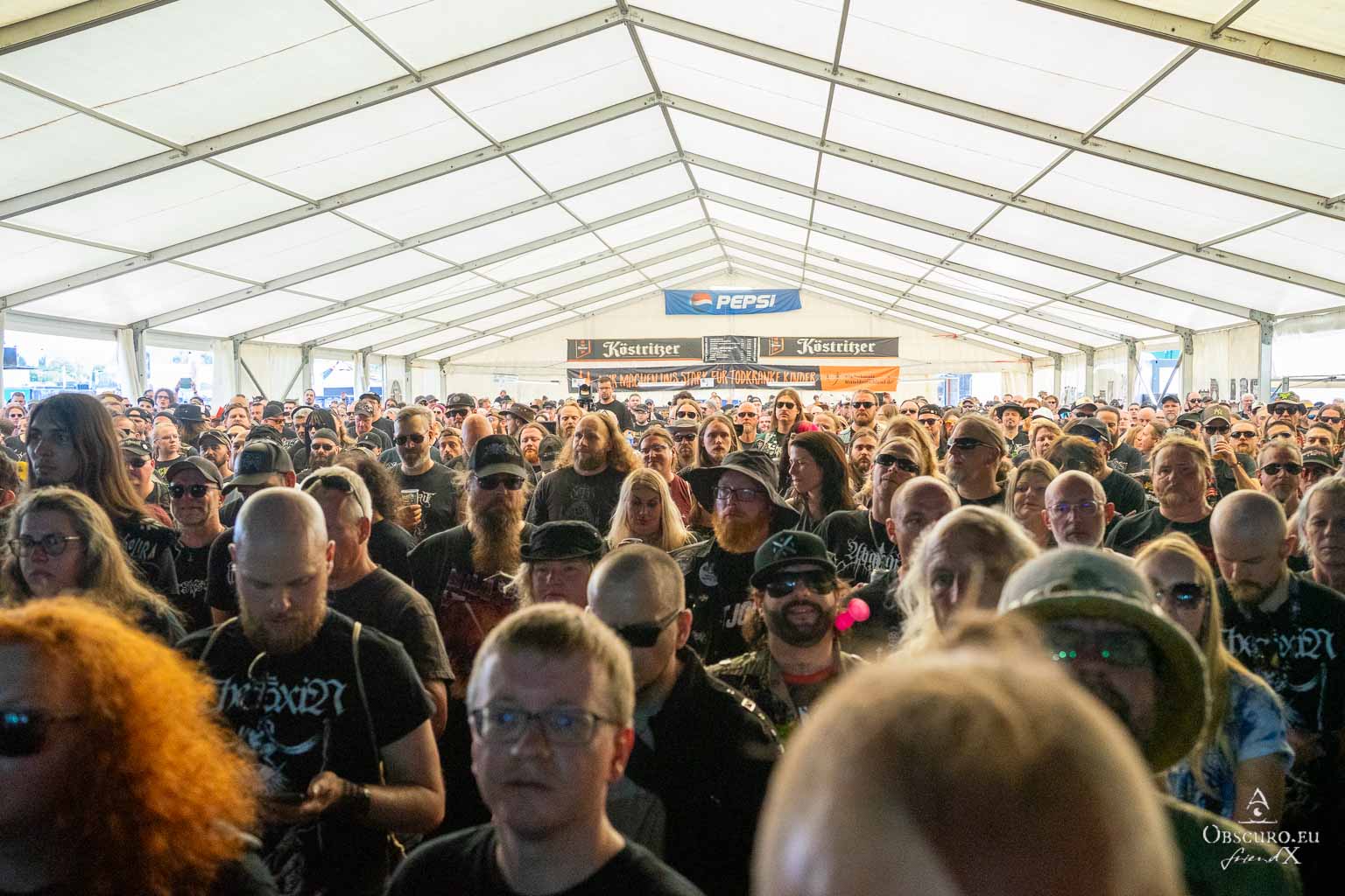 For the 29th time nearly 10.000 fans of the more extreme metal genres gathered at the airport Obermehler near Schlotheim in Thuringia to enjoy – with only a handful of exceptions – mostly variants of Death, Black and Thrash Metal peacefully together while having fun and in-depth discussions about the bands. As you can find a more detailed description of the area in the articles from the last two years, this year’s focus will be more on the tight programme and the most important thing, the bands.