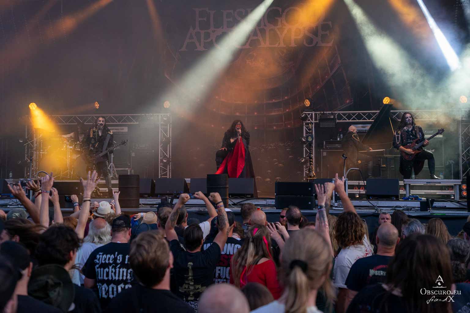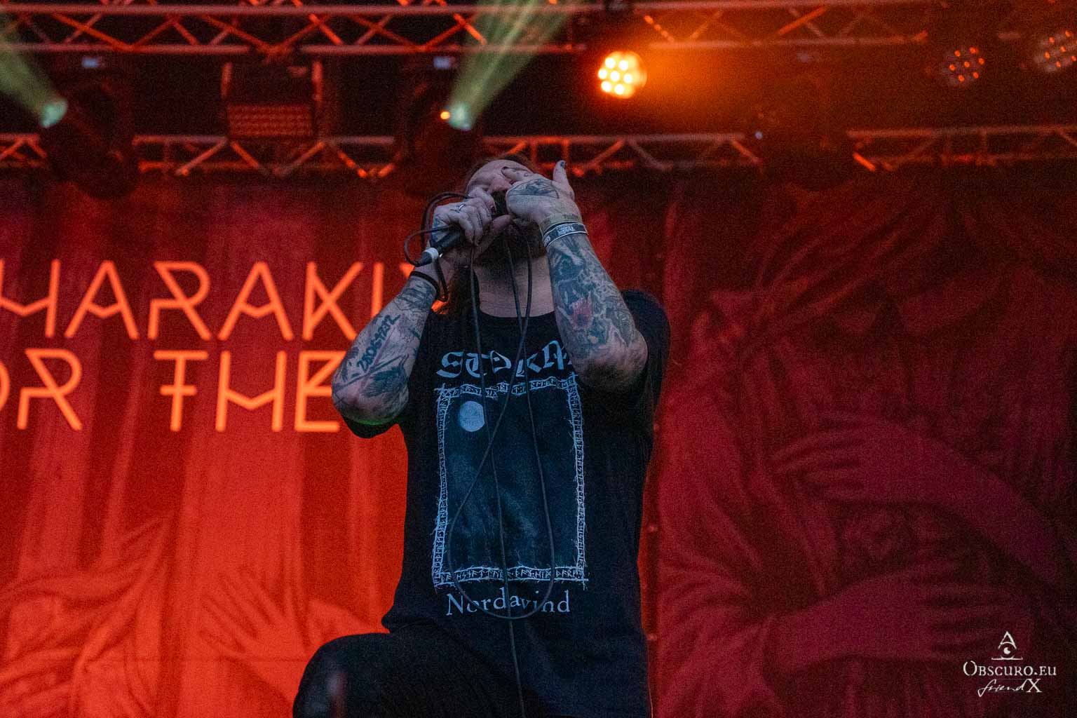 In the tent the Austrian Harakiri for the Sky singer Michael J.J. Kogler had his first appearance with his side project KARG playing Post Black Metal with many different influences from all kinds of subgenres. We would see him again later. The main stage offered another unique experience with the Italian FLESHGOD APOCALYPSE who definitely stood out with their mixture of Death Metal and opera. Back in the tent again CHAOS INVOCATION celebrated old school Black Metal. With HARAKIRI FOR THE SKY we welcomed back J.J. for his second show, but this time on the main stage with beautiful melodic parts pervading their Post Black Metal and great sound. Somewhat similar in style and also including great melodic parts AGRYPNIE conquered the tent stage as the headliner of the label night.