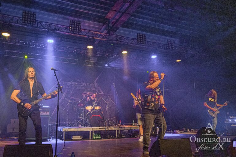 What is better than a concert of legends on a Friday night? Exactly, another concert with three more outstanding bands on the very next day. So after a day of recovering from the night before and some sight-seeing in Regensburg together with friends, we make our way to Obertraubling, more exactly Eventhall Airport. for the next show. In the audience we meet some familiar faces, seems, they have moved there together with us…