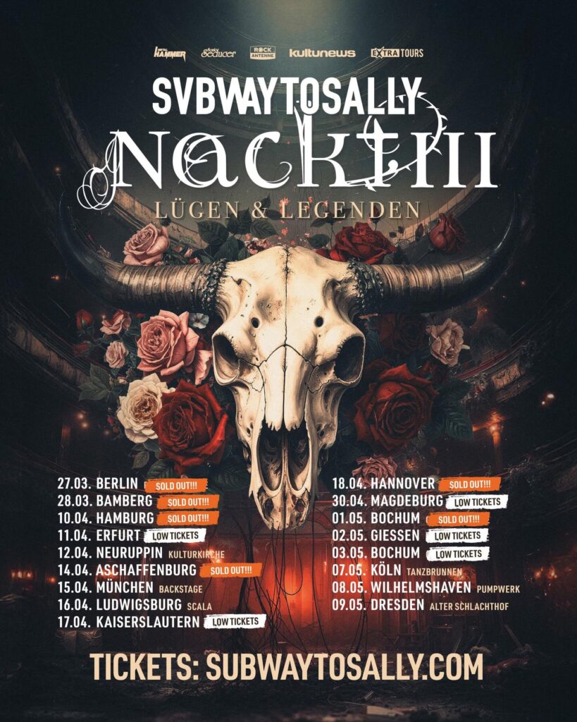 Join us on a naked journey through lies and legends. At least, that’s what the title of Subway to Sally‘s current tour suggests!