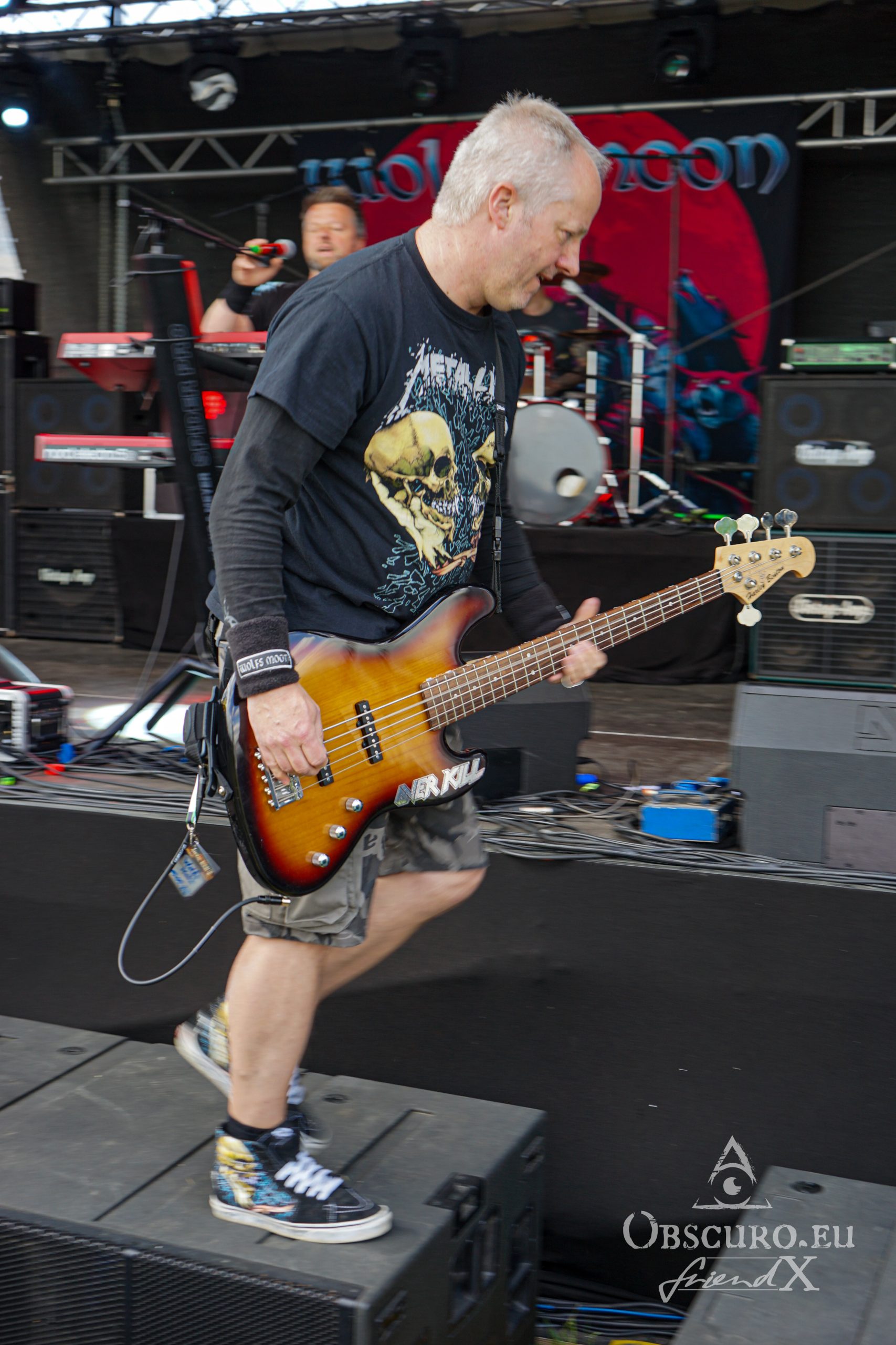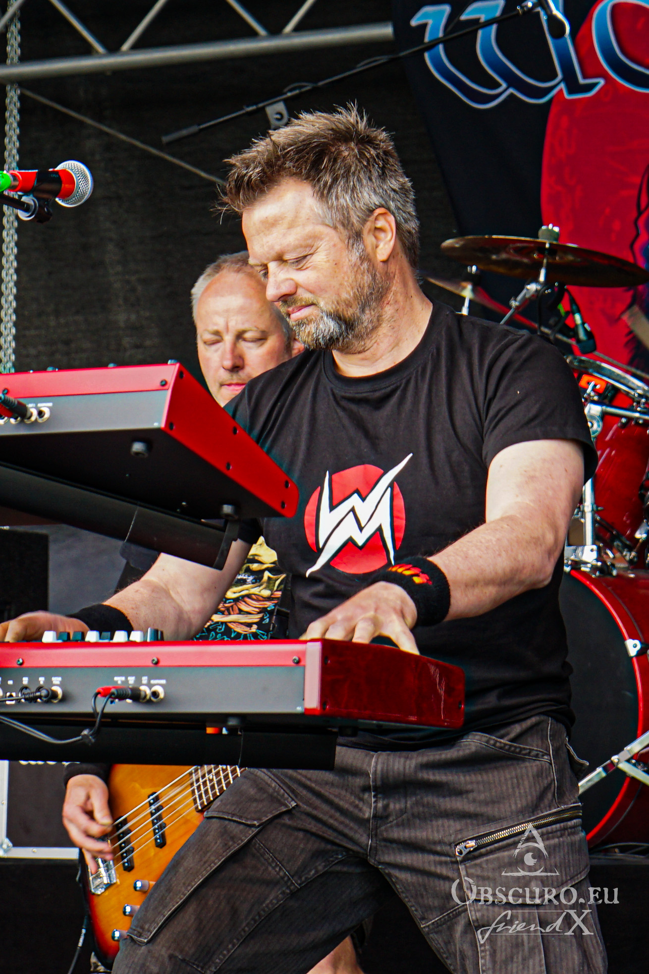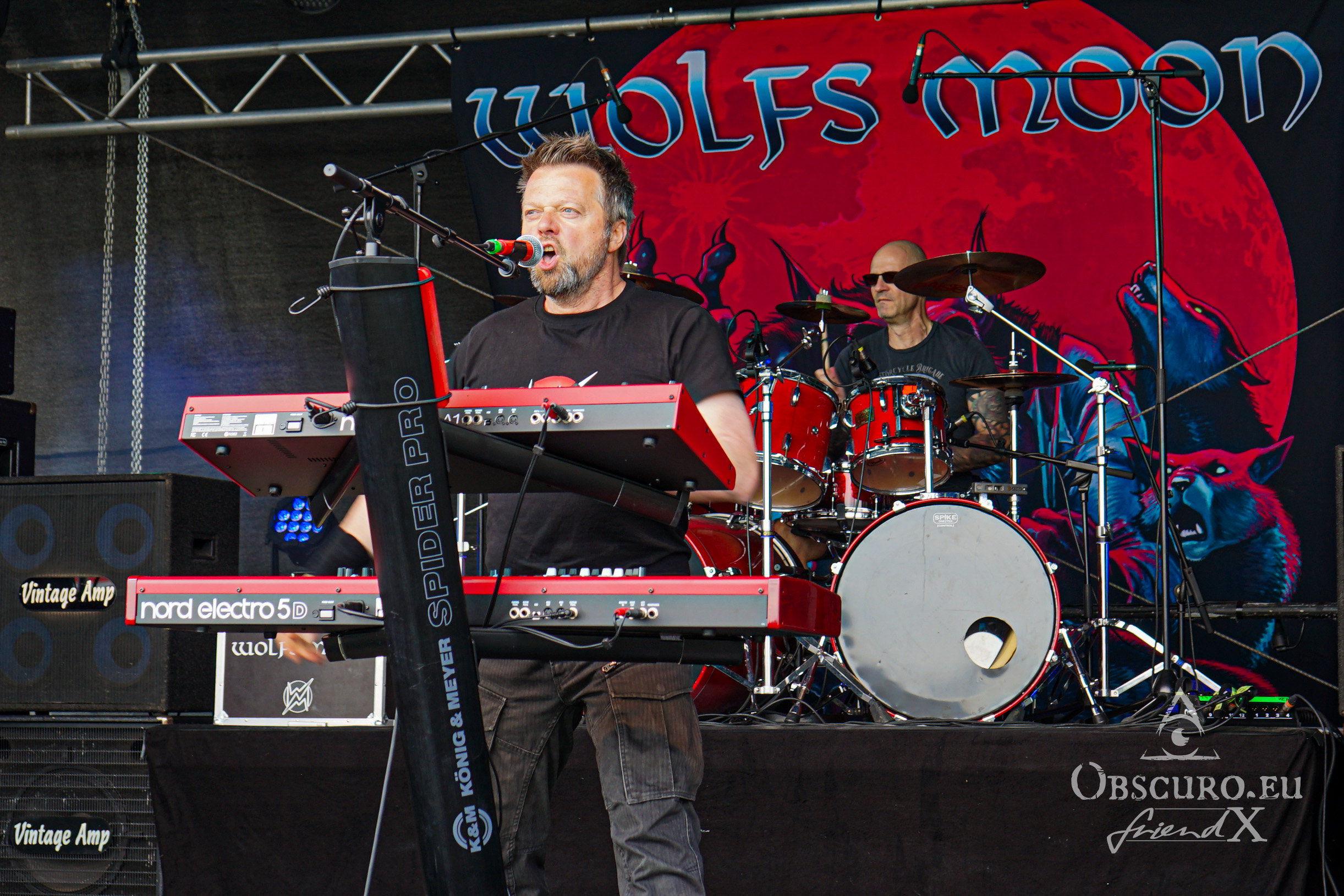 Melodic-Power-Heavy-Rock from Helmstedt. Wolfs Moon keyboarder also is their vocalist so we were surprised with keyboards fronting the stage. Interesting, how much you can do with a stationary keyboard though! A cool band with an interesting approach. They were the perfect opener to wake up the late risers.