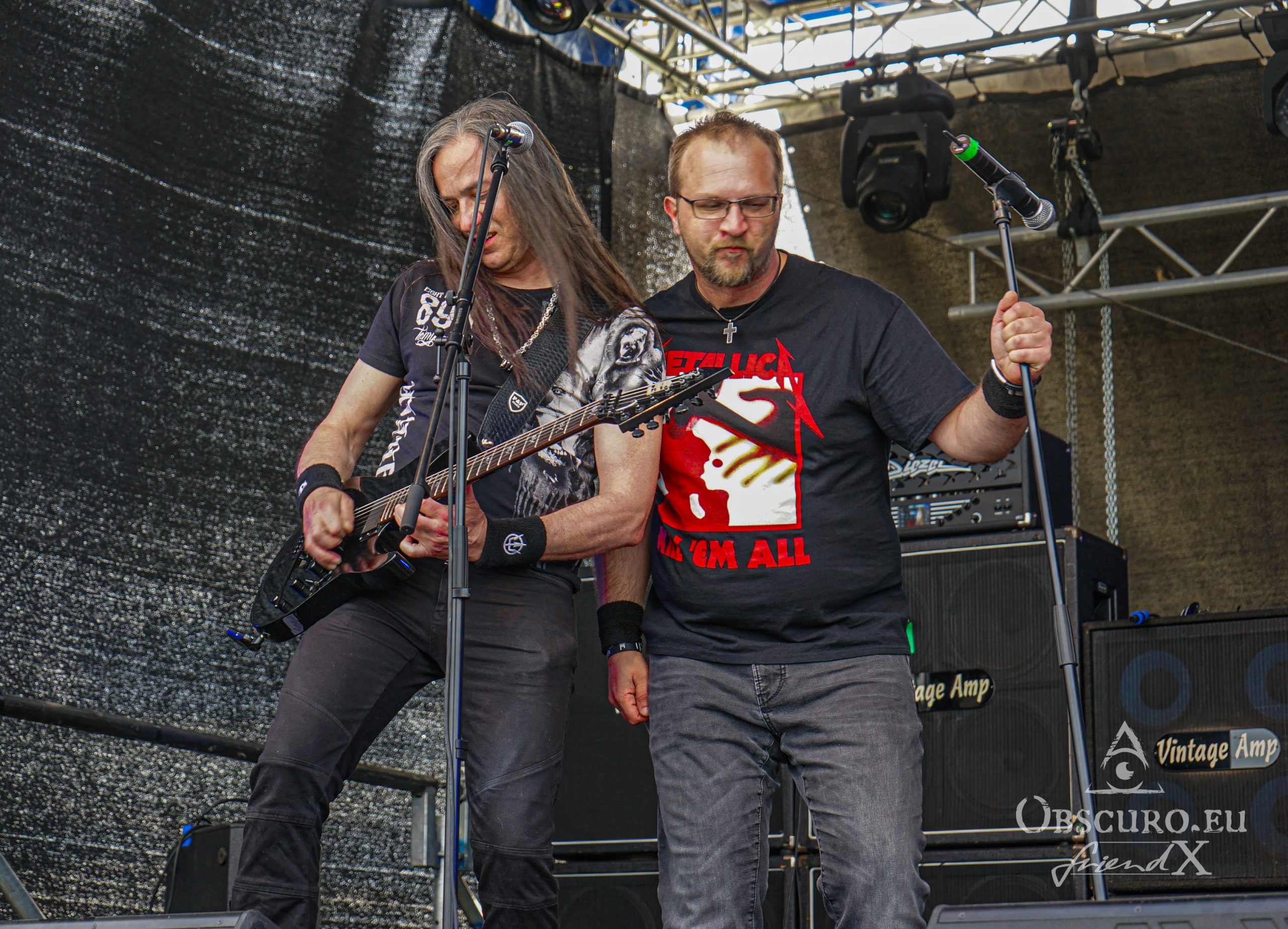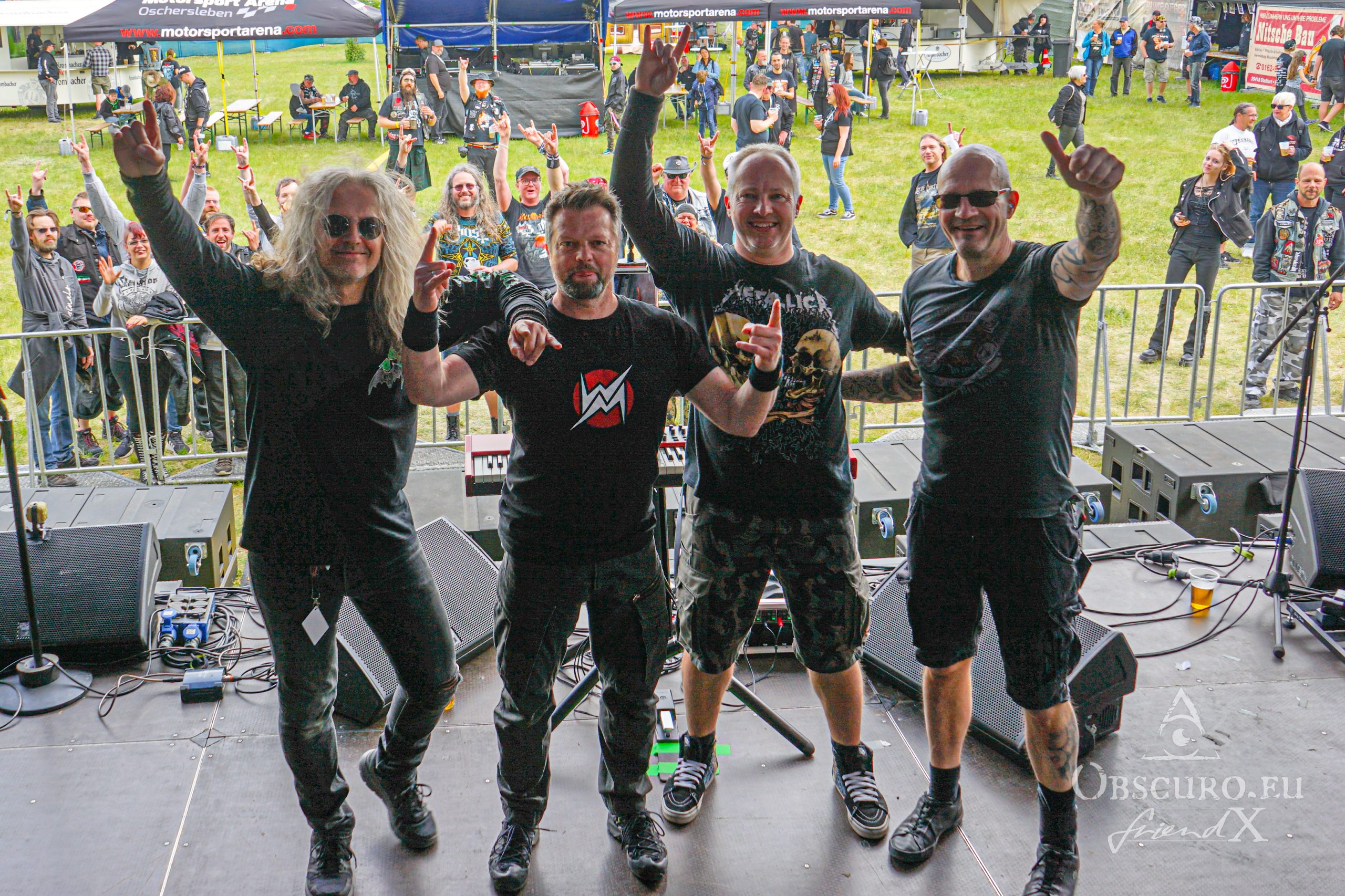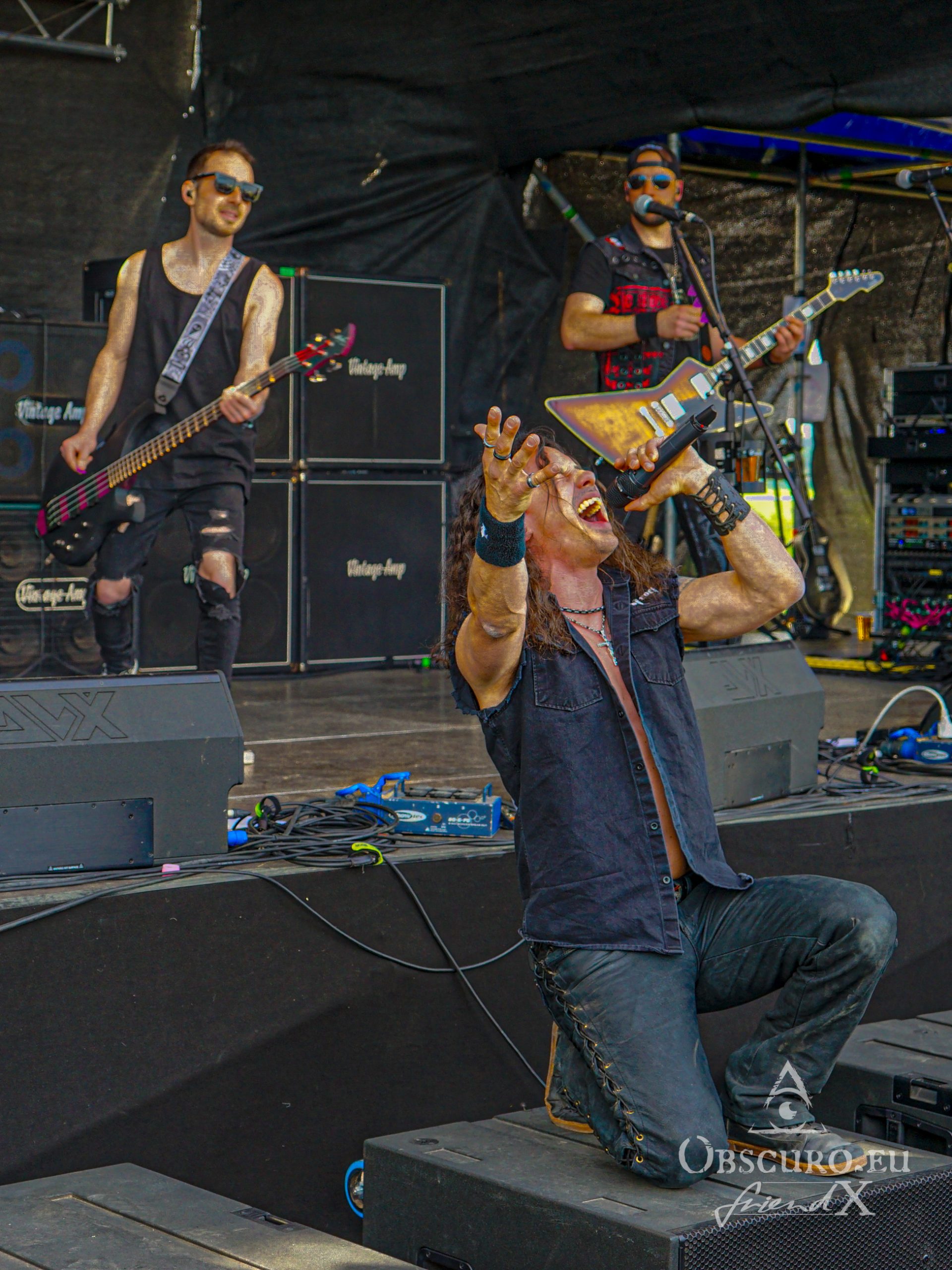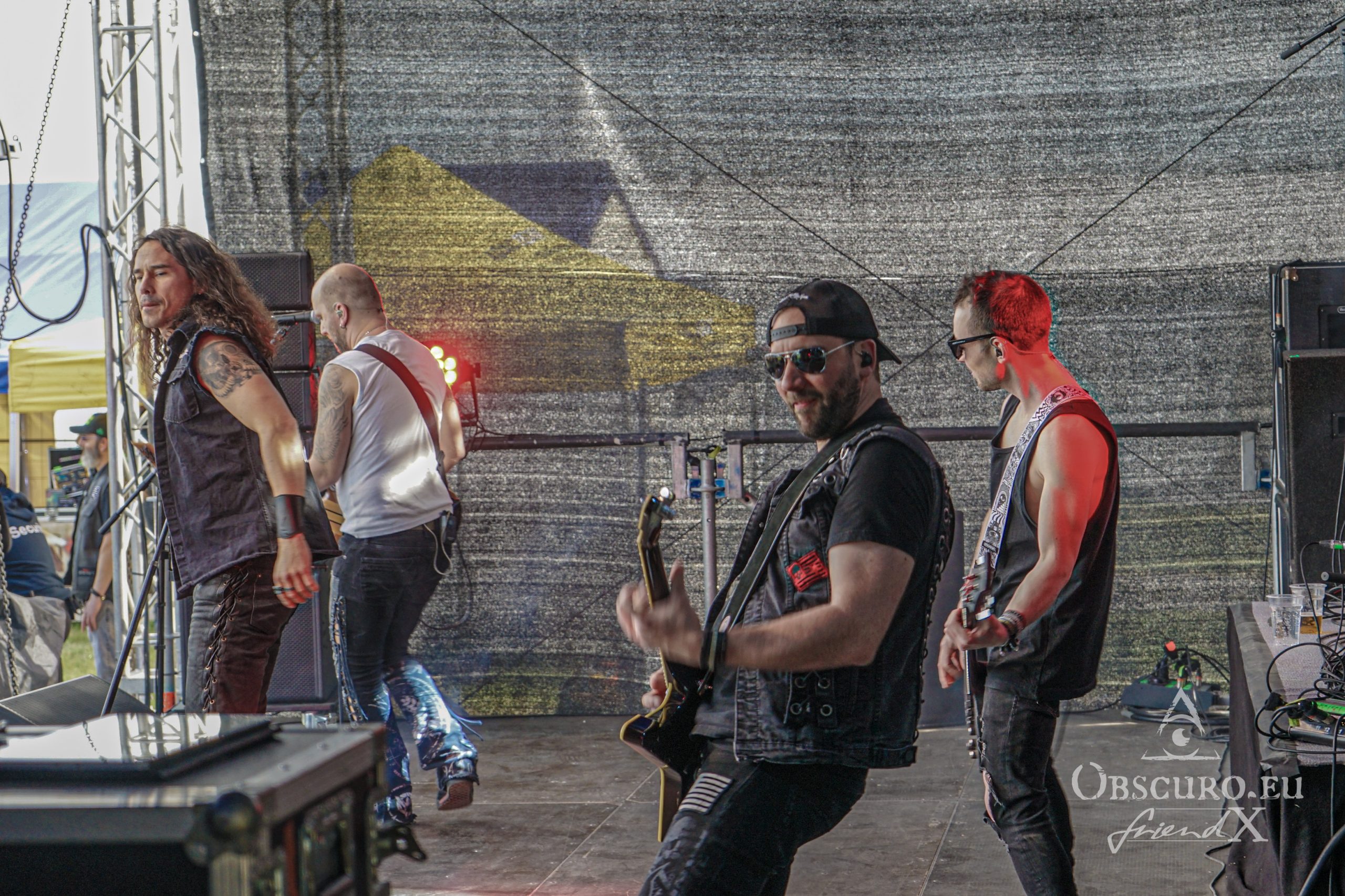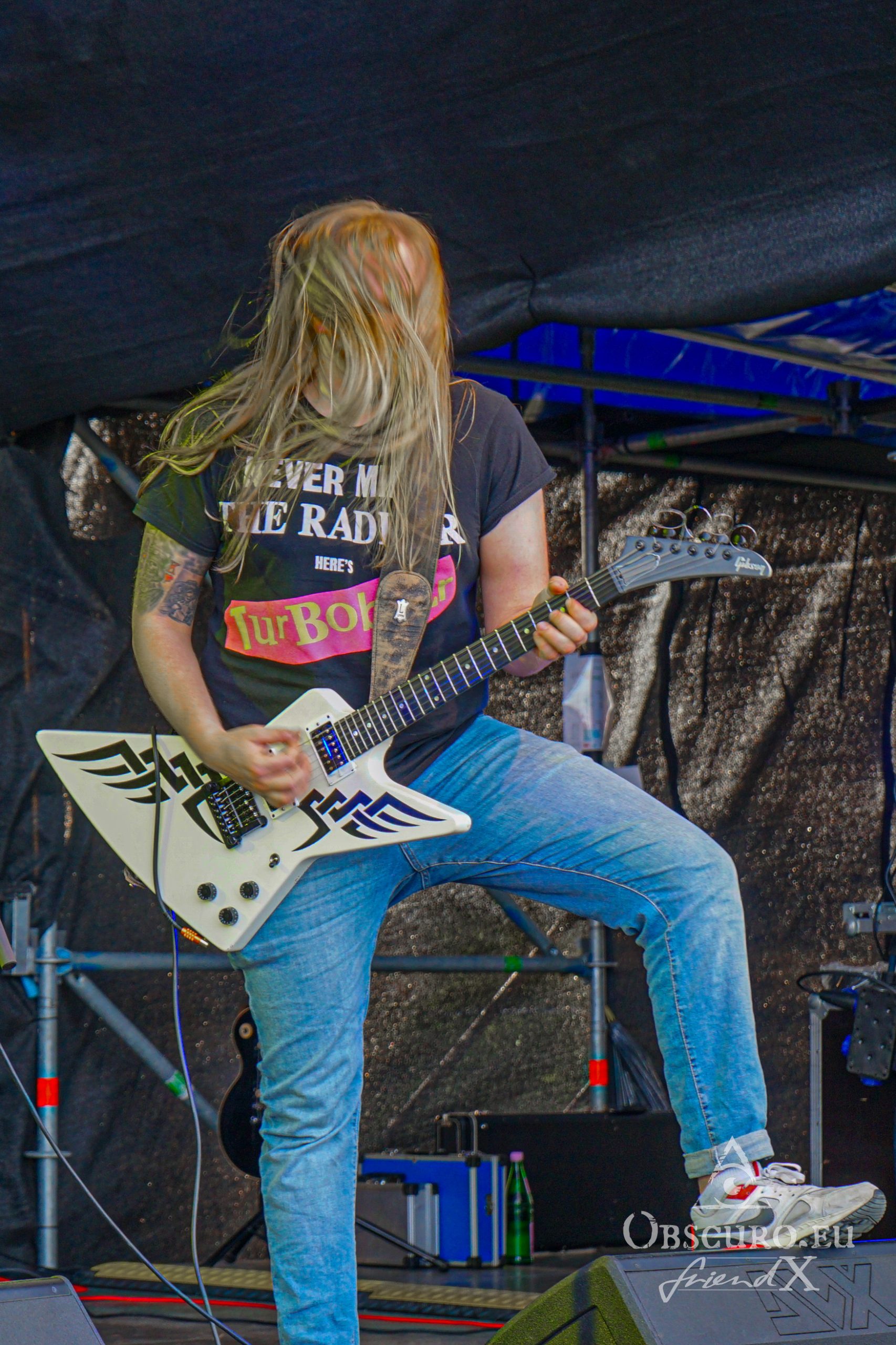 The Headliner on Friday faced a problem at arrival. Their drummer went ill while travelling and needed to go to the hospital immediately. Sh*t happens in the truest sense of the word. There was no time and no chance to find a substitute so shortly before the show. So Motorjesus had to make the decision, to cancel the show, or use a drum computer, even if it meant a loss of quality. They decided for the latter for the good of it. It would somehow have made no sense to drive all the way from Mönchengladbach to Oschersleben for nothing but a sick drummer. Their personal Jesus jumped in and mimicked as drummer along the drum computer. Motorjesus played a lovely set in best NWOBHM traditions combined with their own unique style.